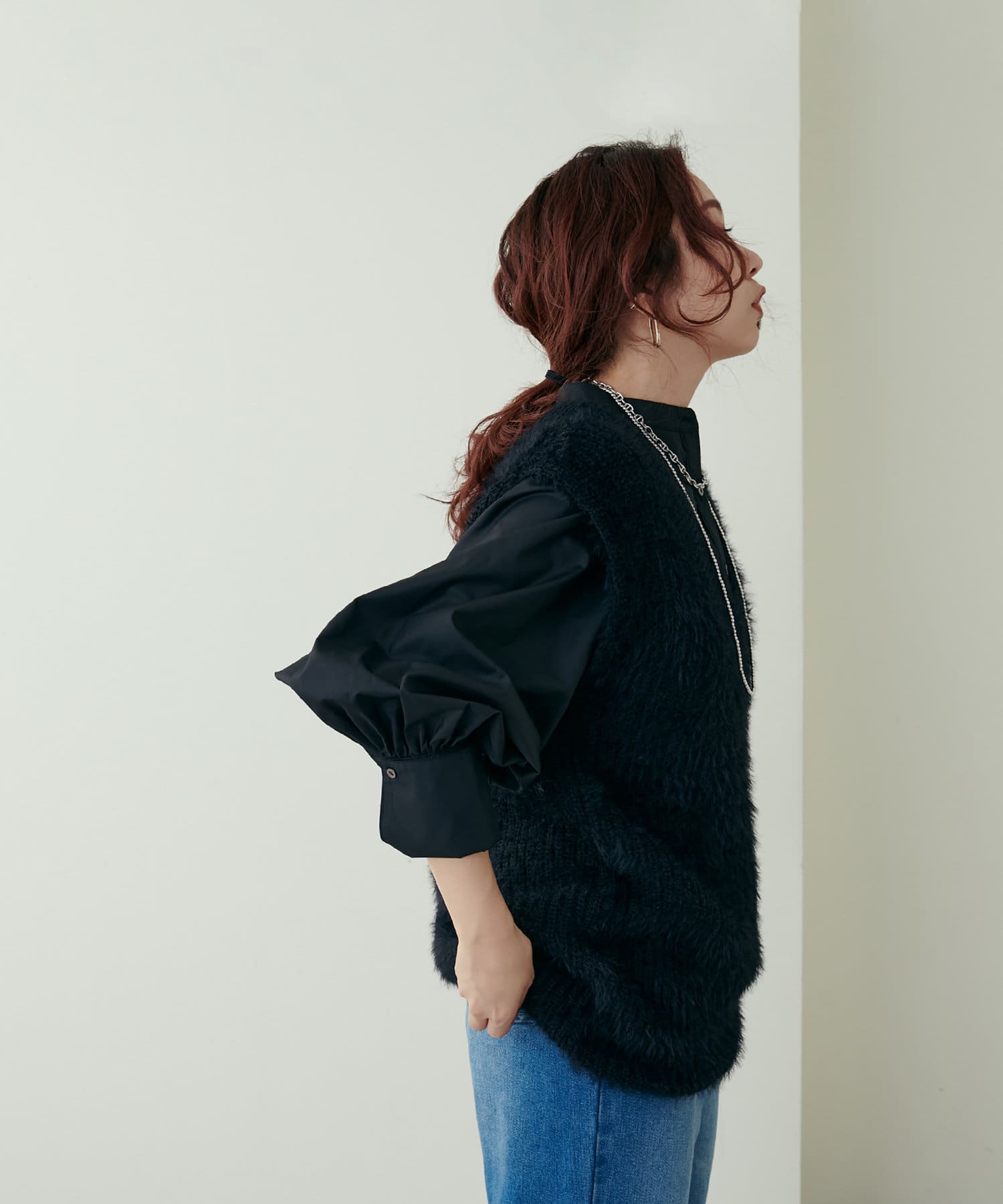 レース衿SH(0322040550)とフェザーベストを重ねたり、
