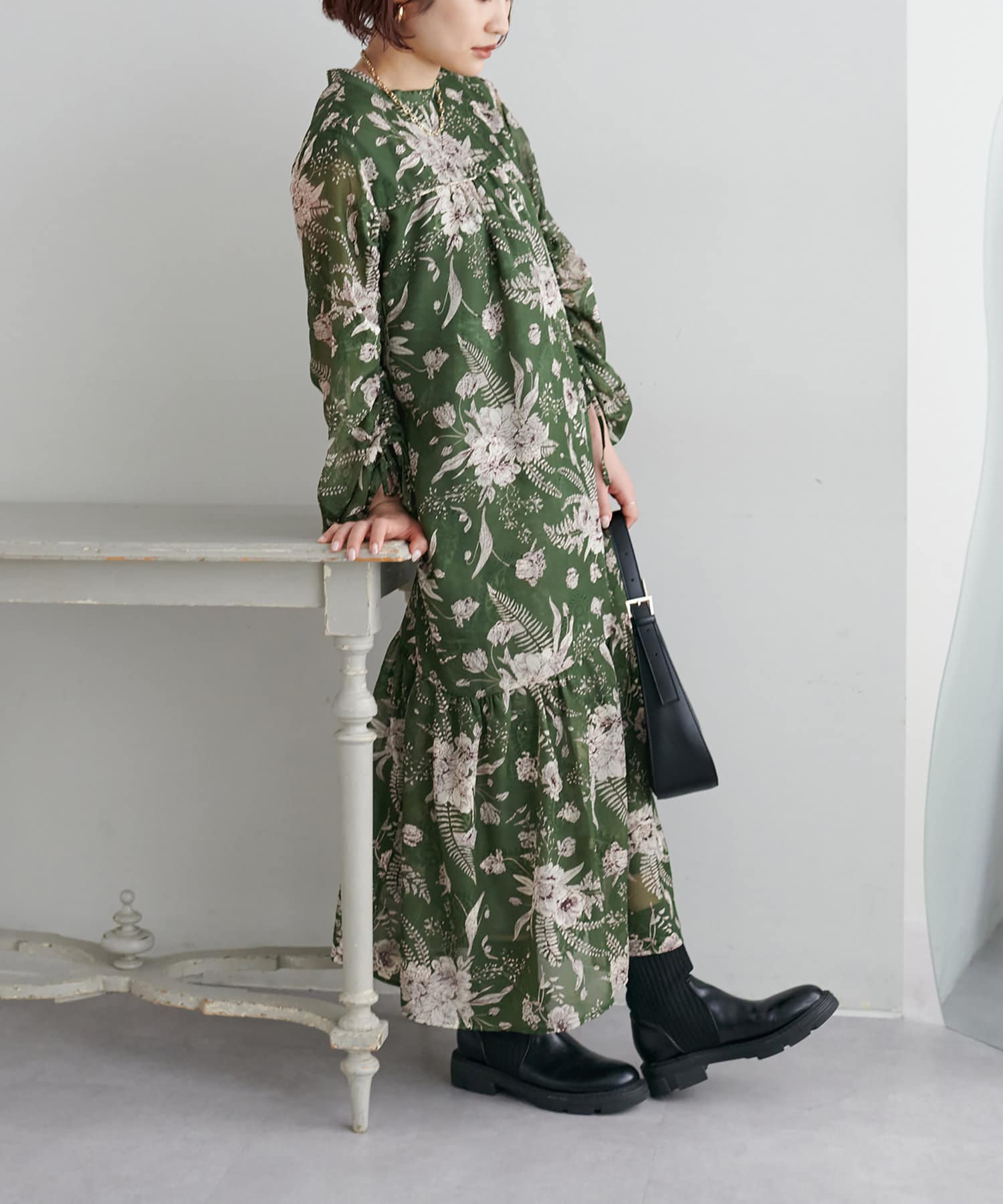 なめらかさのある生地なので歩くたび揺れる裾が美しく、一枚で着て頂いても決まり洗練された印象を与えます。