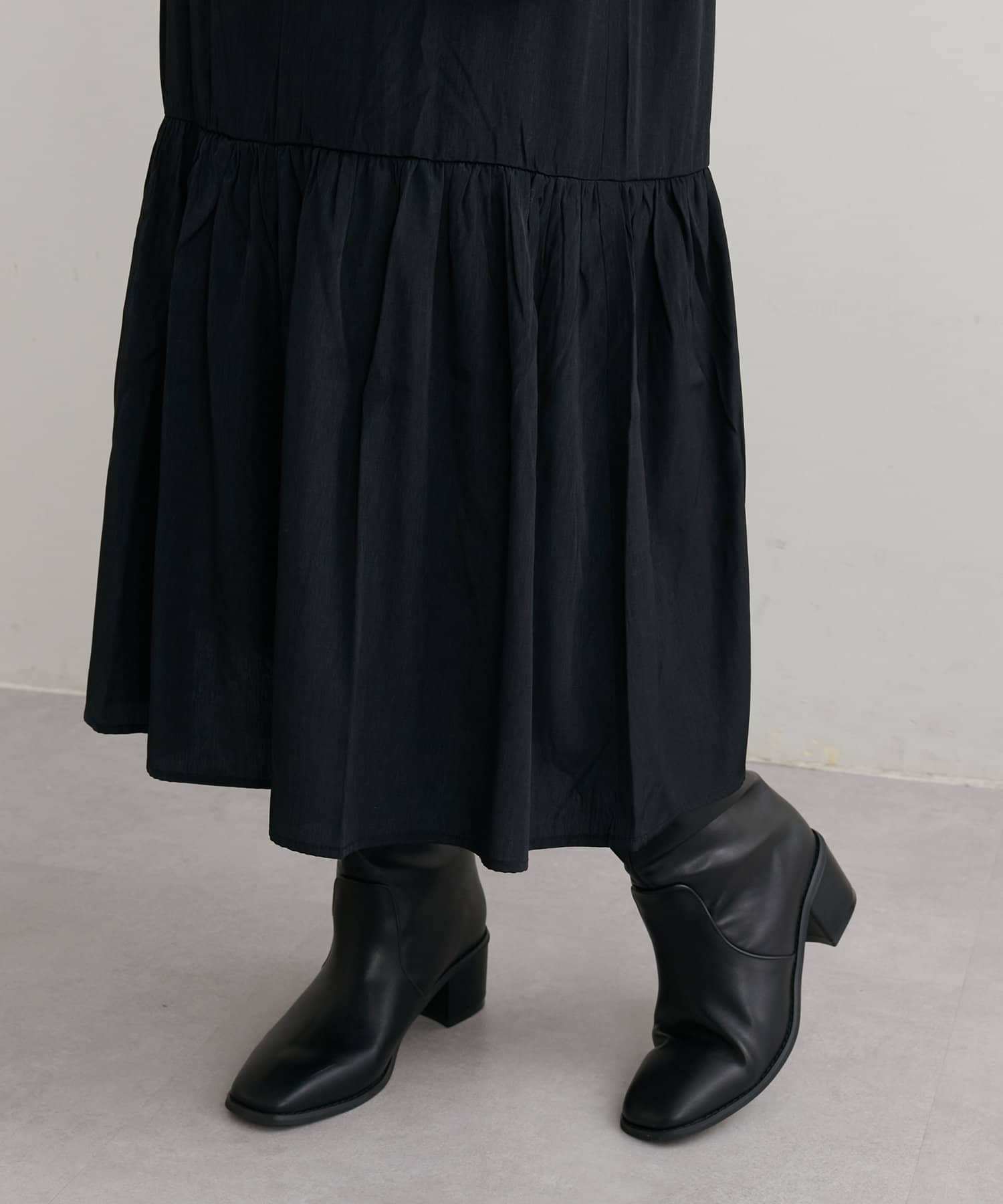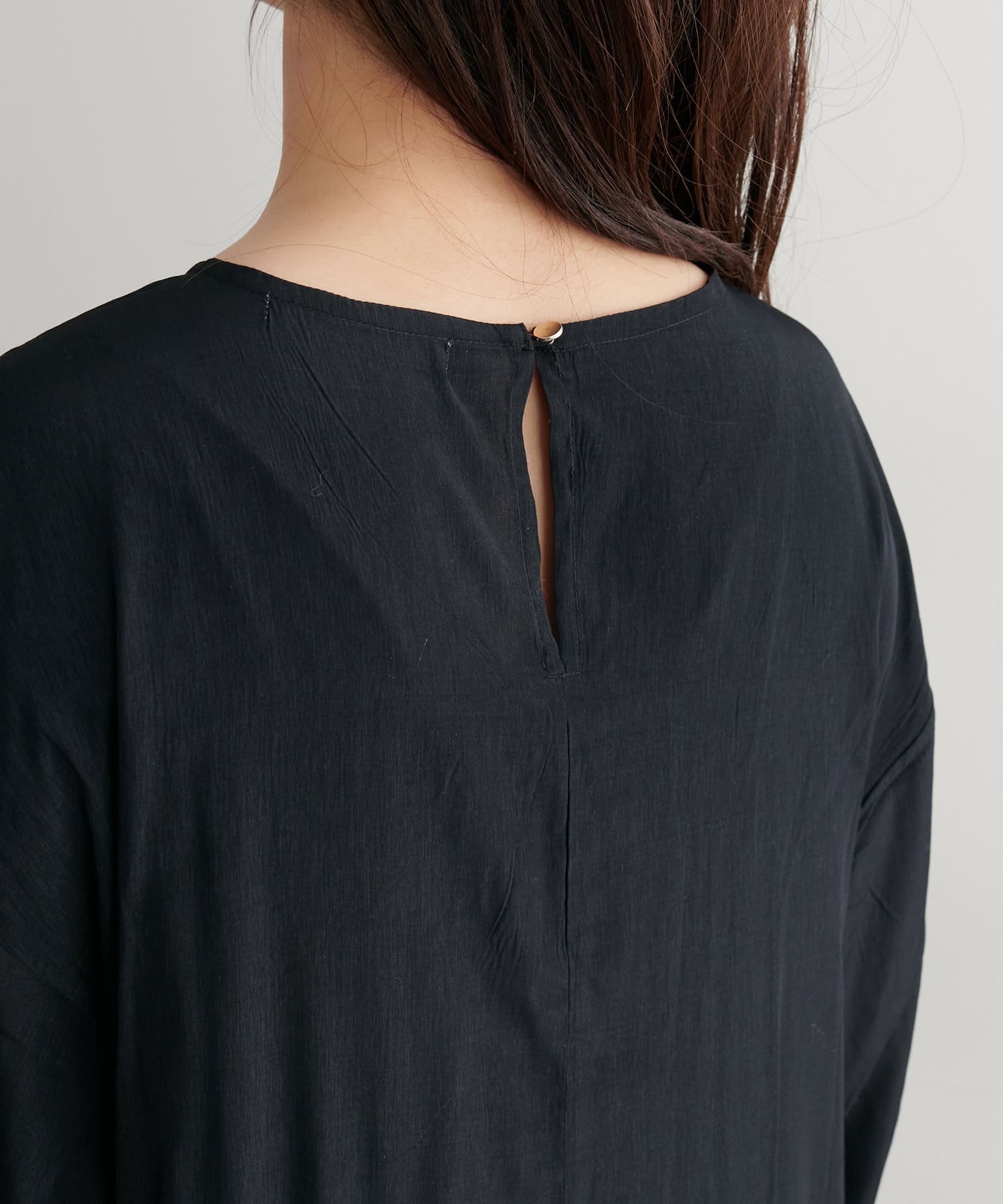 やわらかく優しい印象を与えるシルエットで、軽やかな生地感が風になびいたときに美しい一枚です。