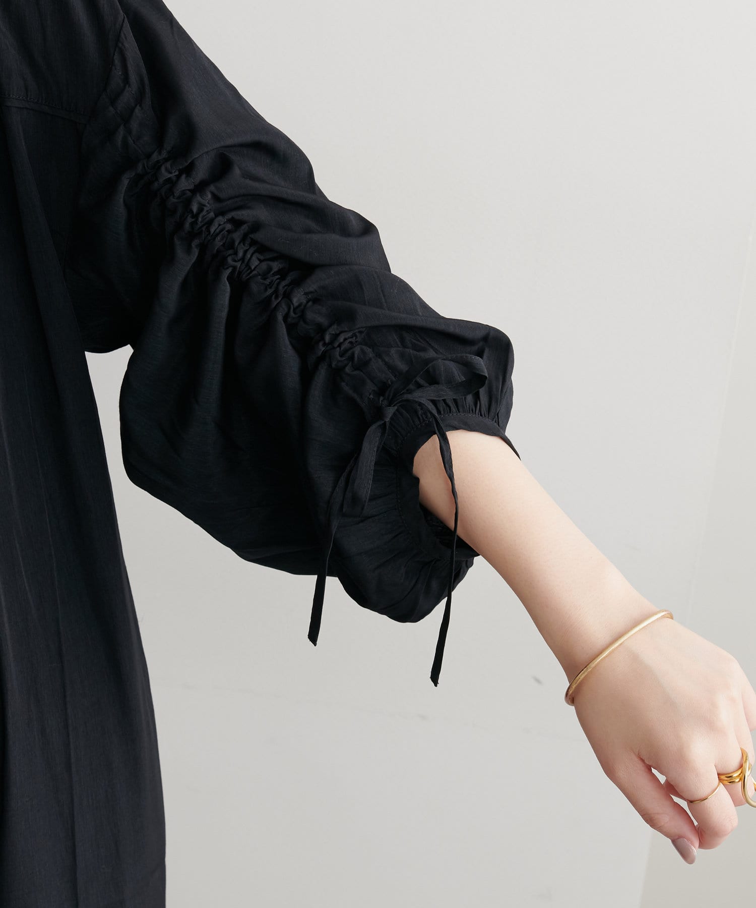 存在感のあるドロストスリーブがポイントになり、一枚着でも決まります。
