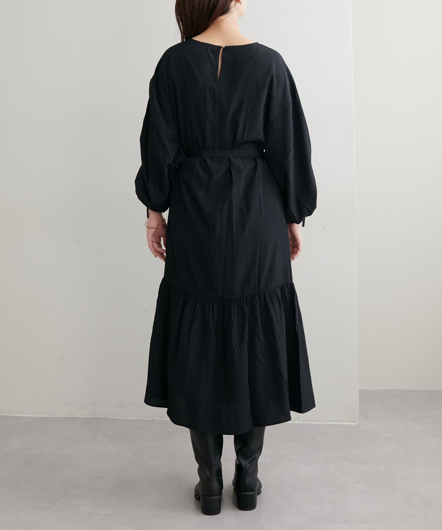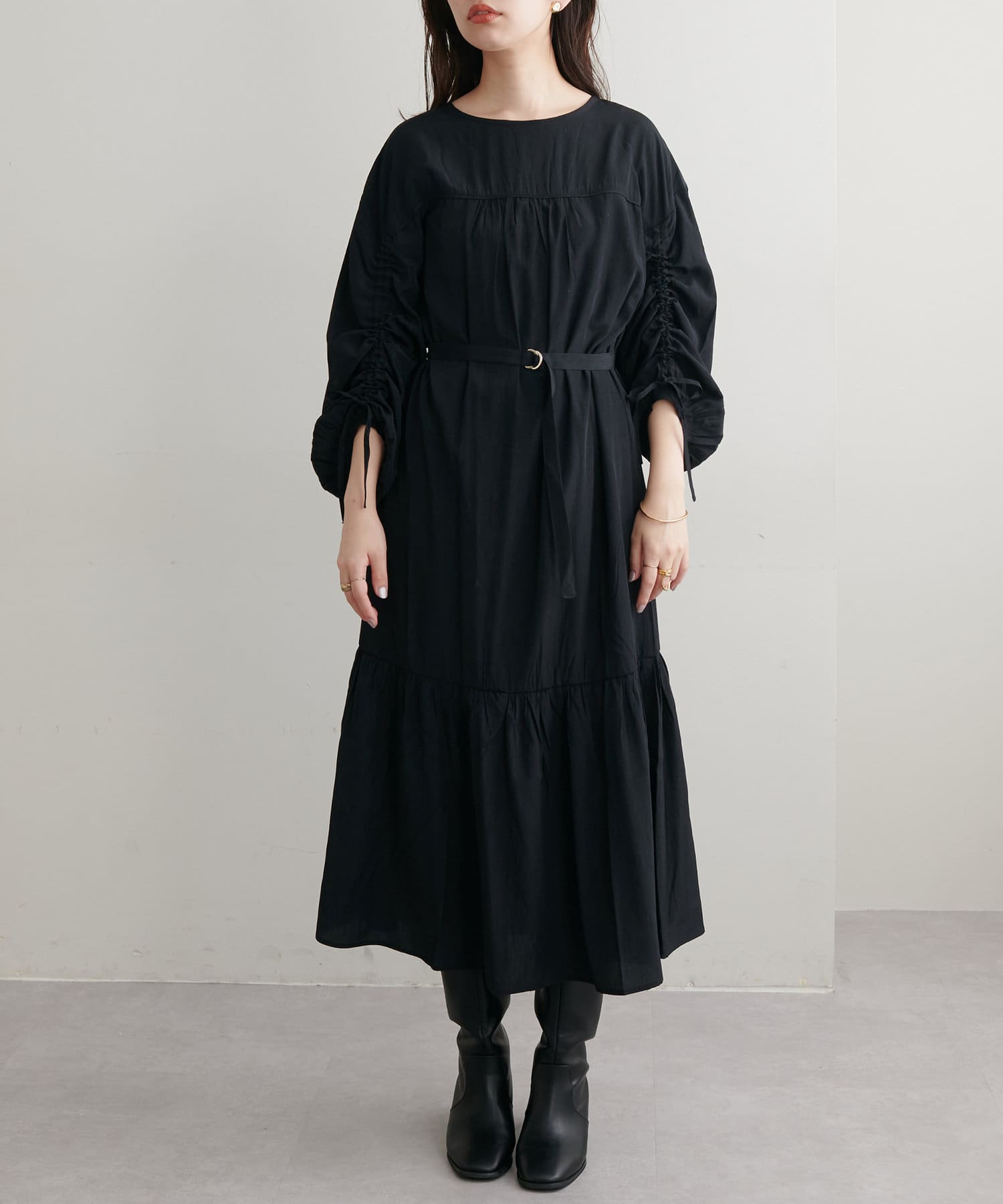 ドロストスリーブ細ベルト付きワンピース