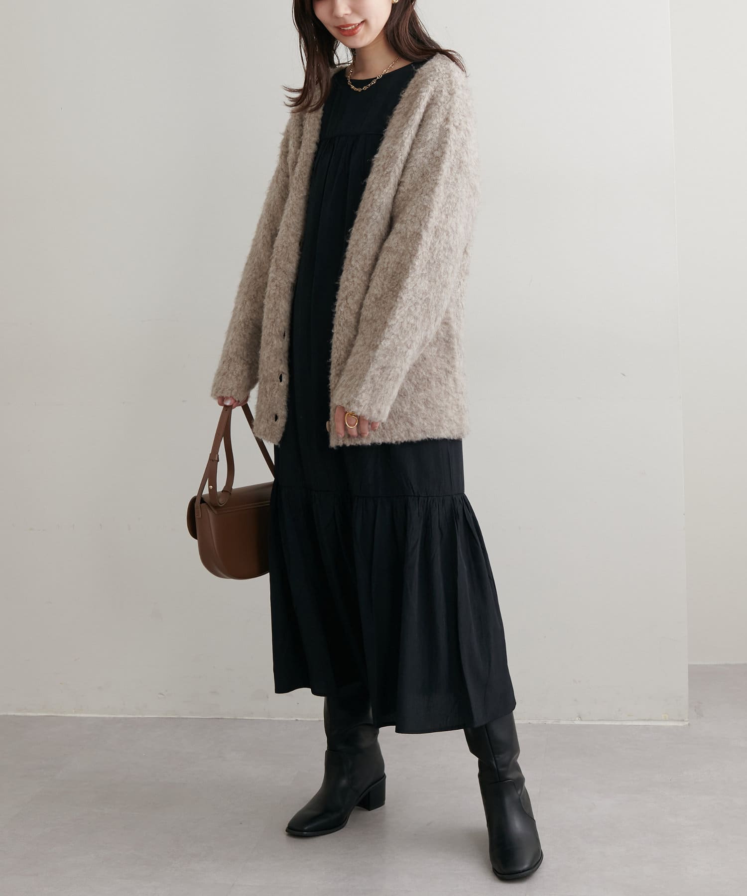 季節によってアウターを変えて頂くと、ロングシーズン着回せるので常にワードローブに入れておきたい優秀アイテム。