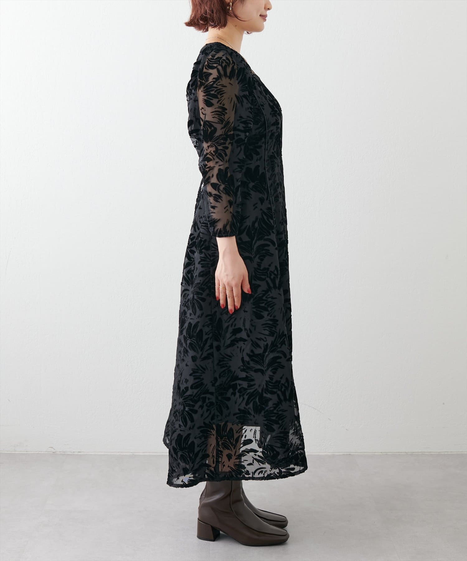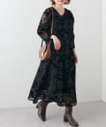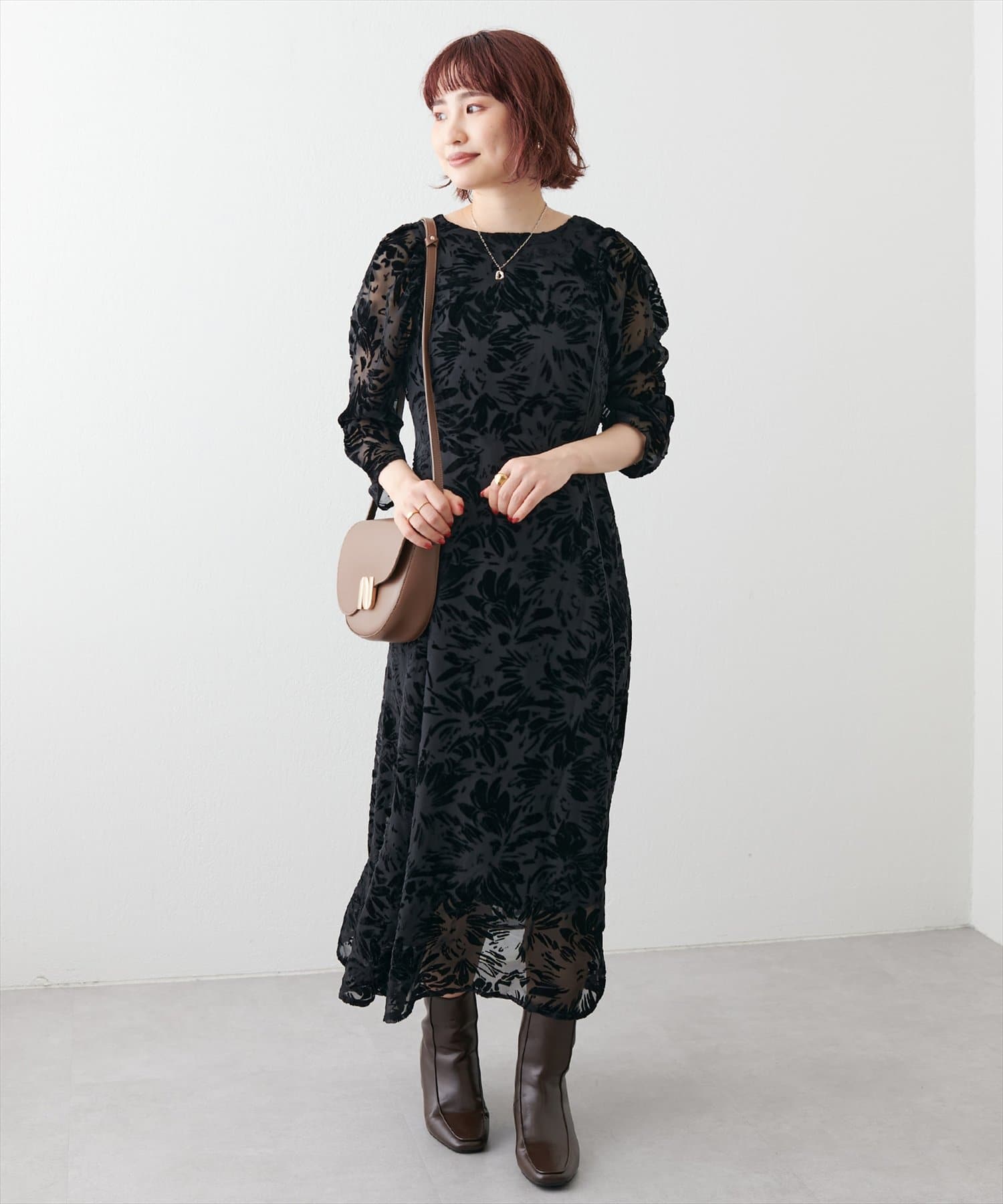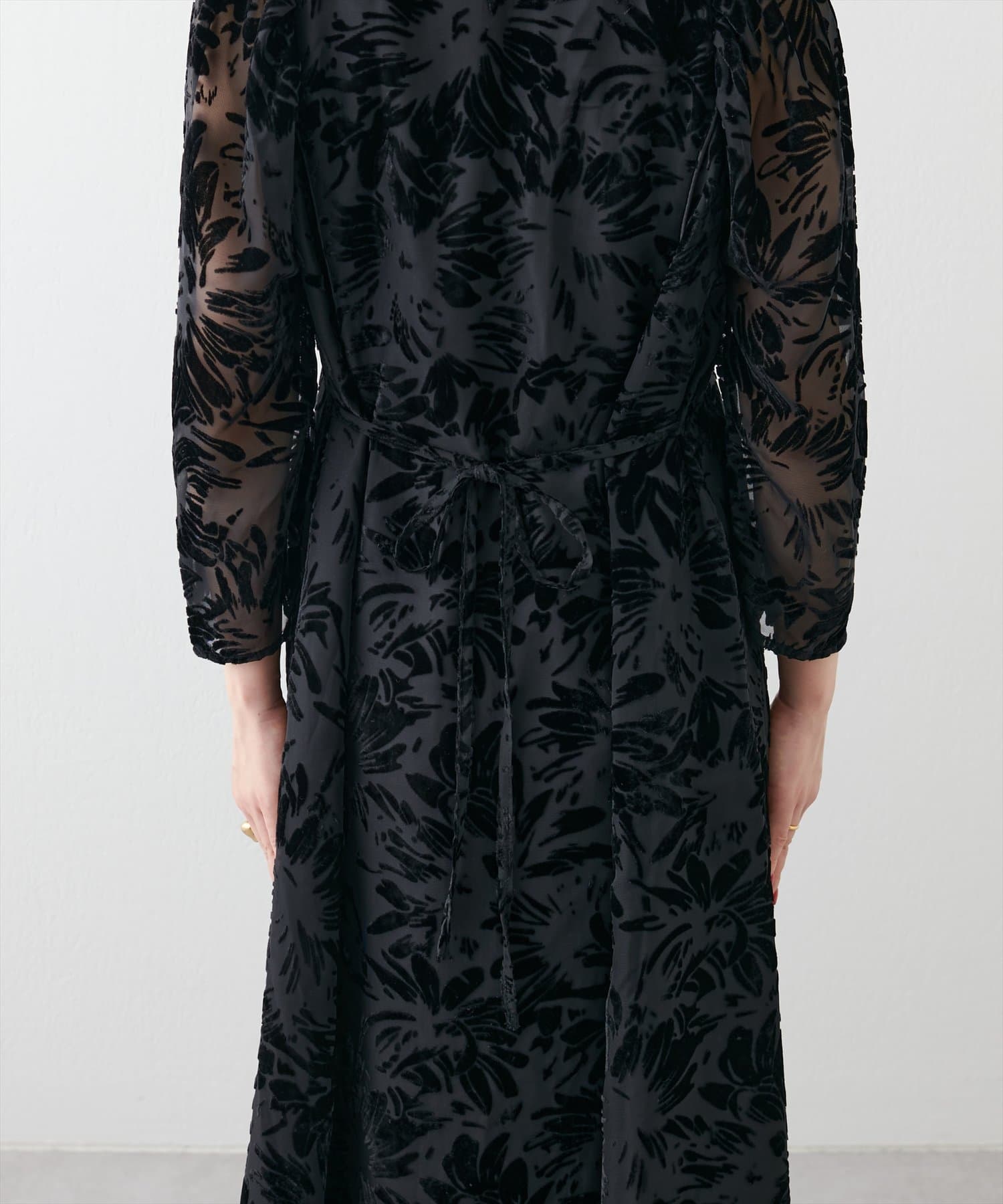 ベロアの花柄が重厚感ありつつも透け感で重くなりすぎない印象に。
