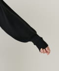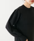 腕のボリューム感は可愛らしく、首元は詰まりすぎないデザイン。