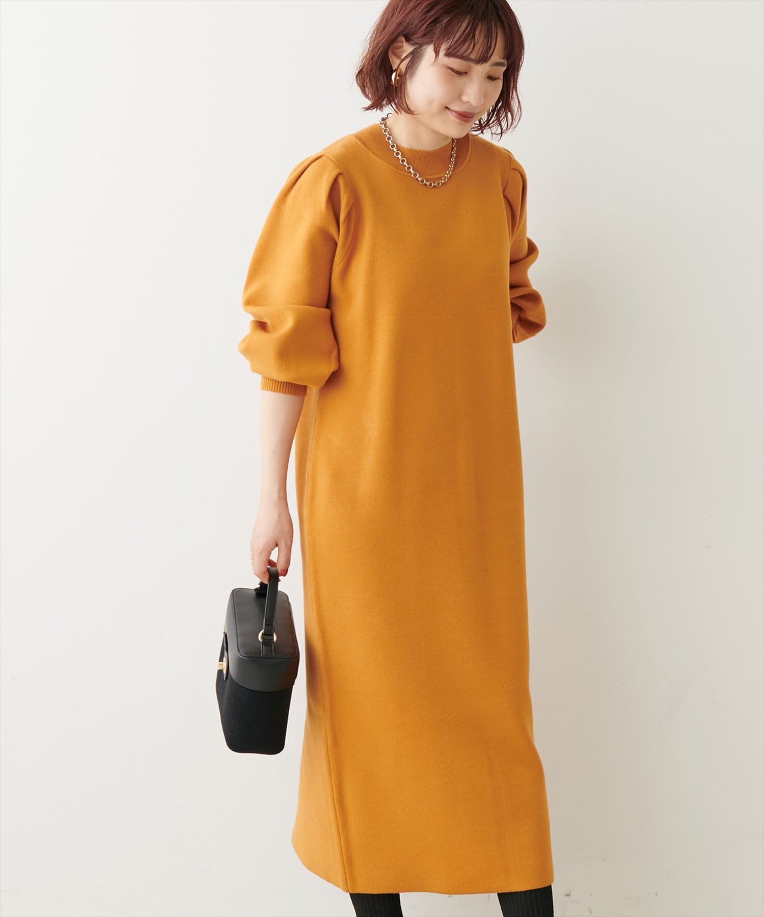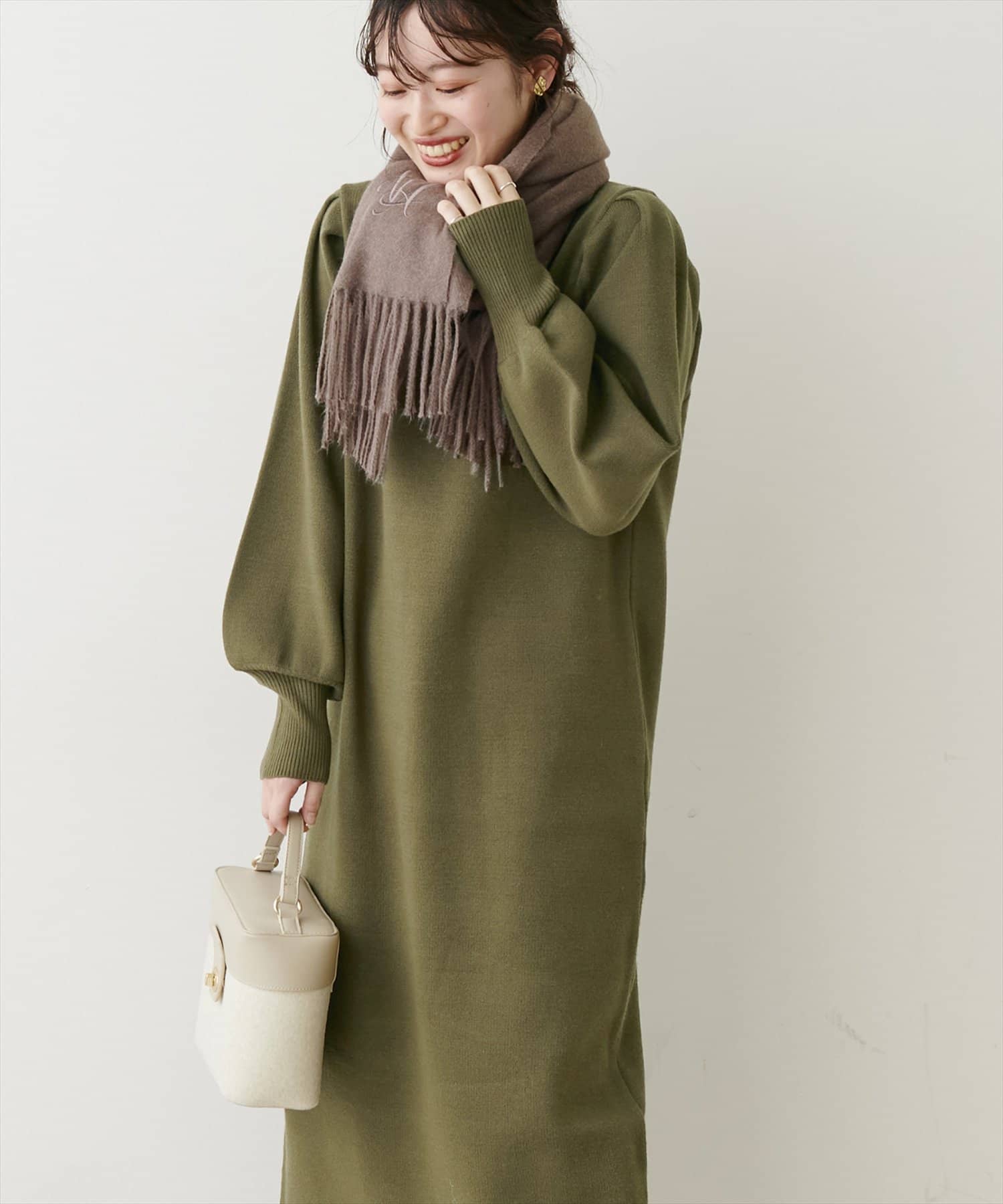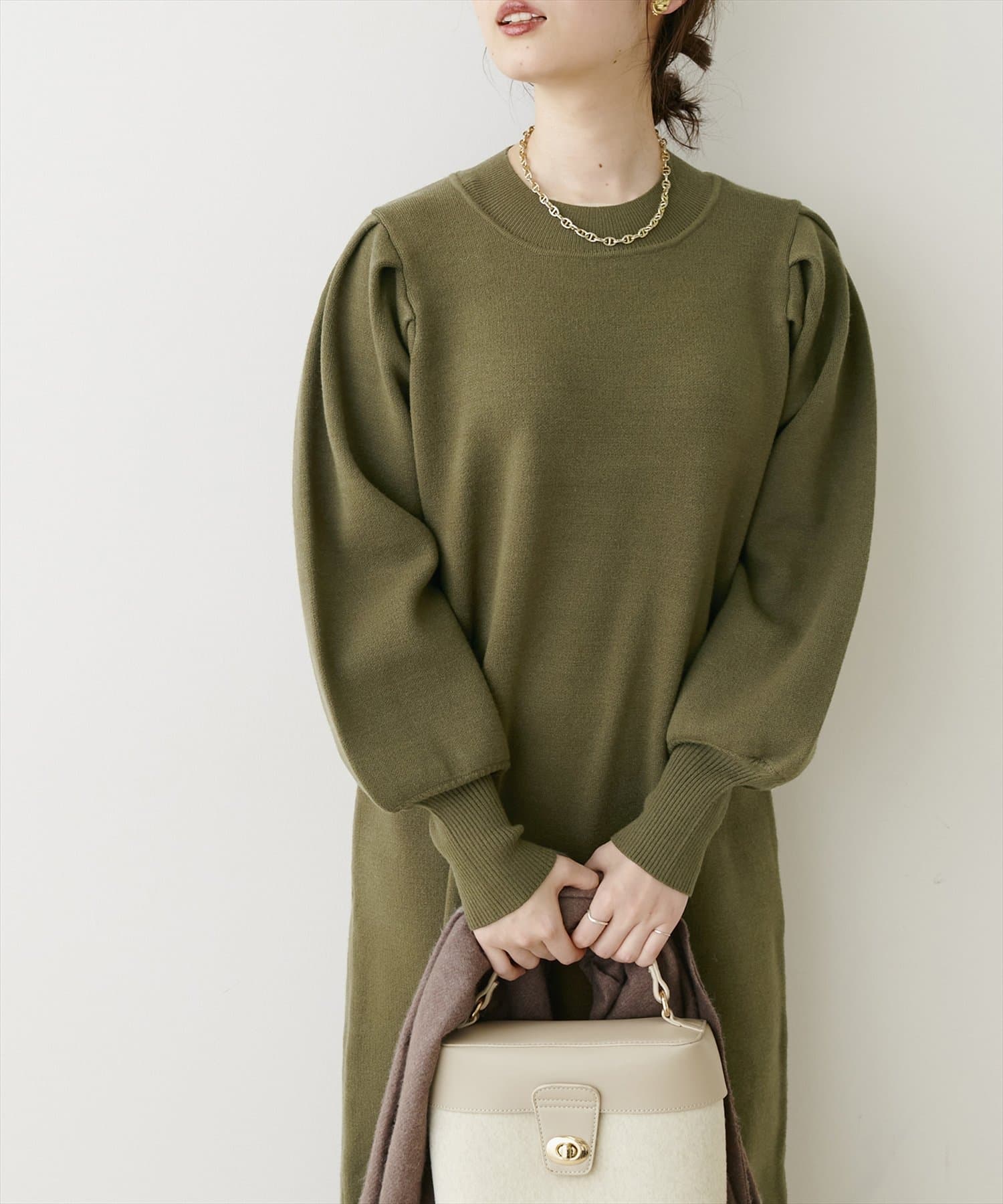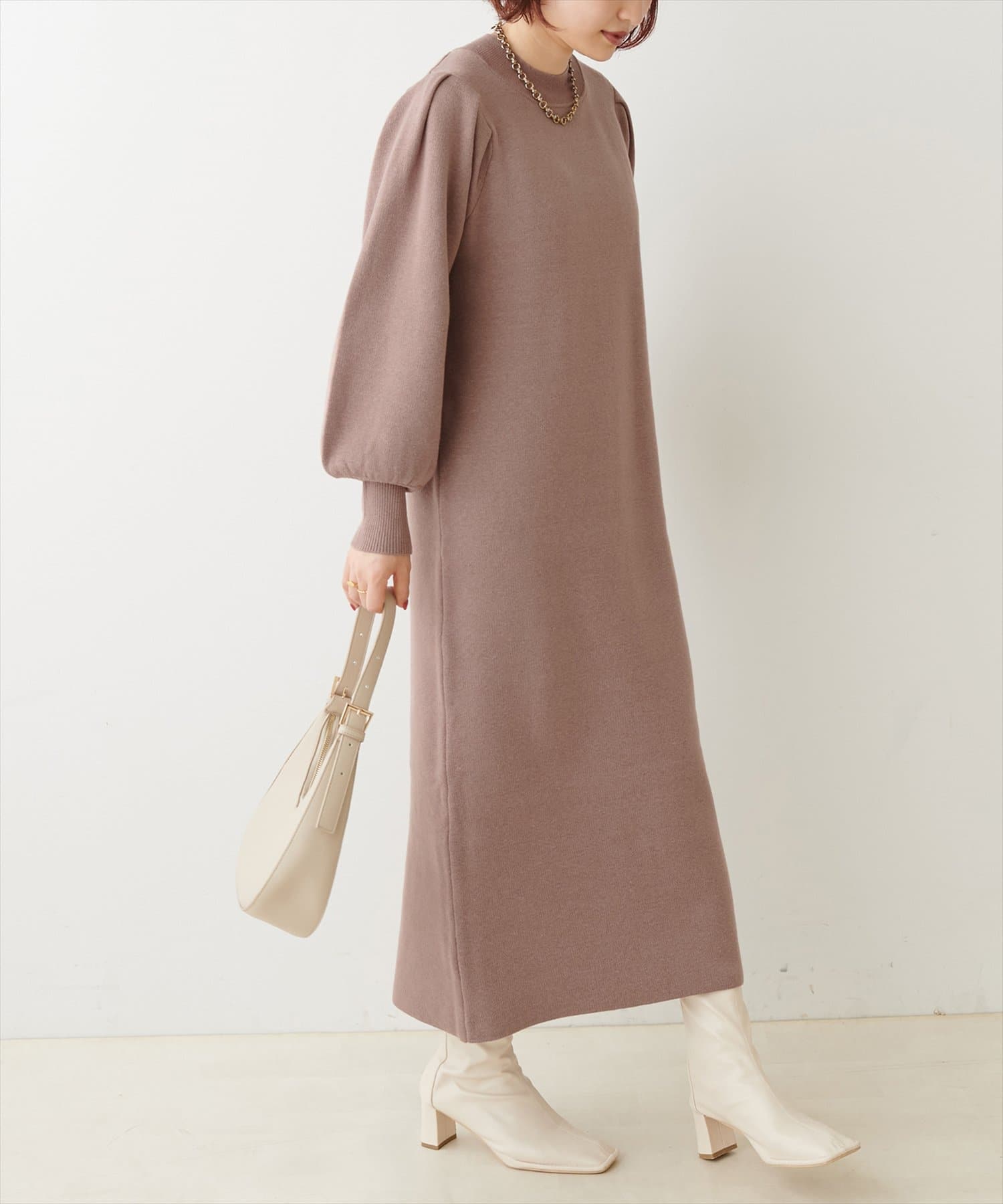 同シリーズで、丈の長さ違いの 0322090770 ボリュームスリーブニットミニワンピース もありますので、
