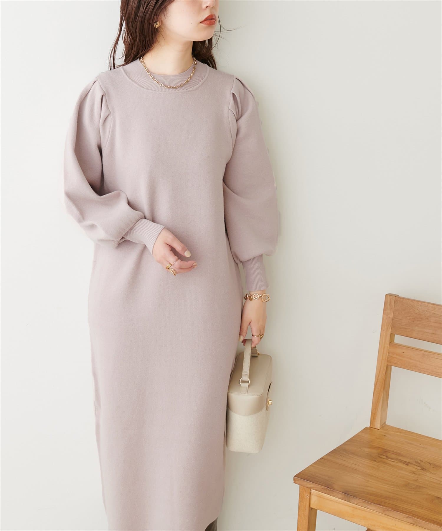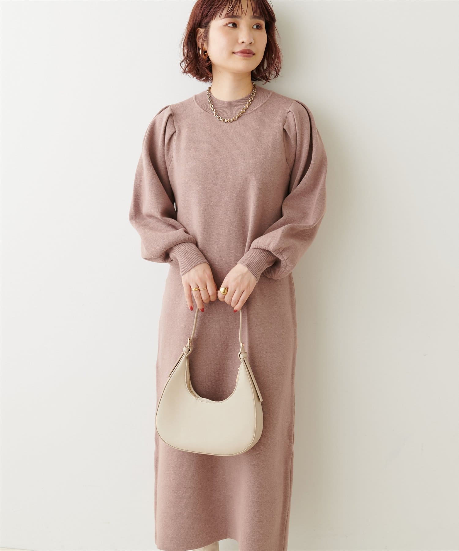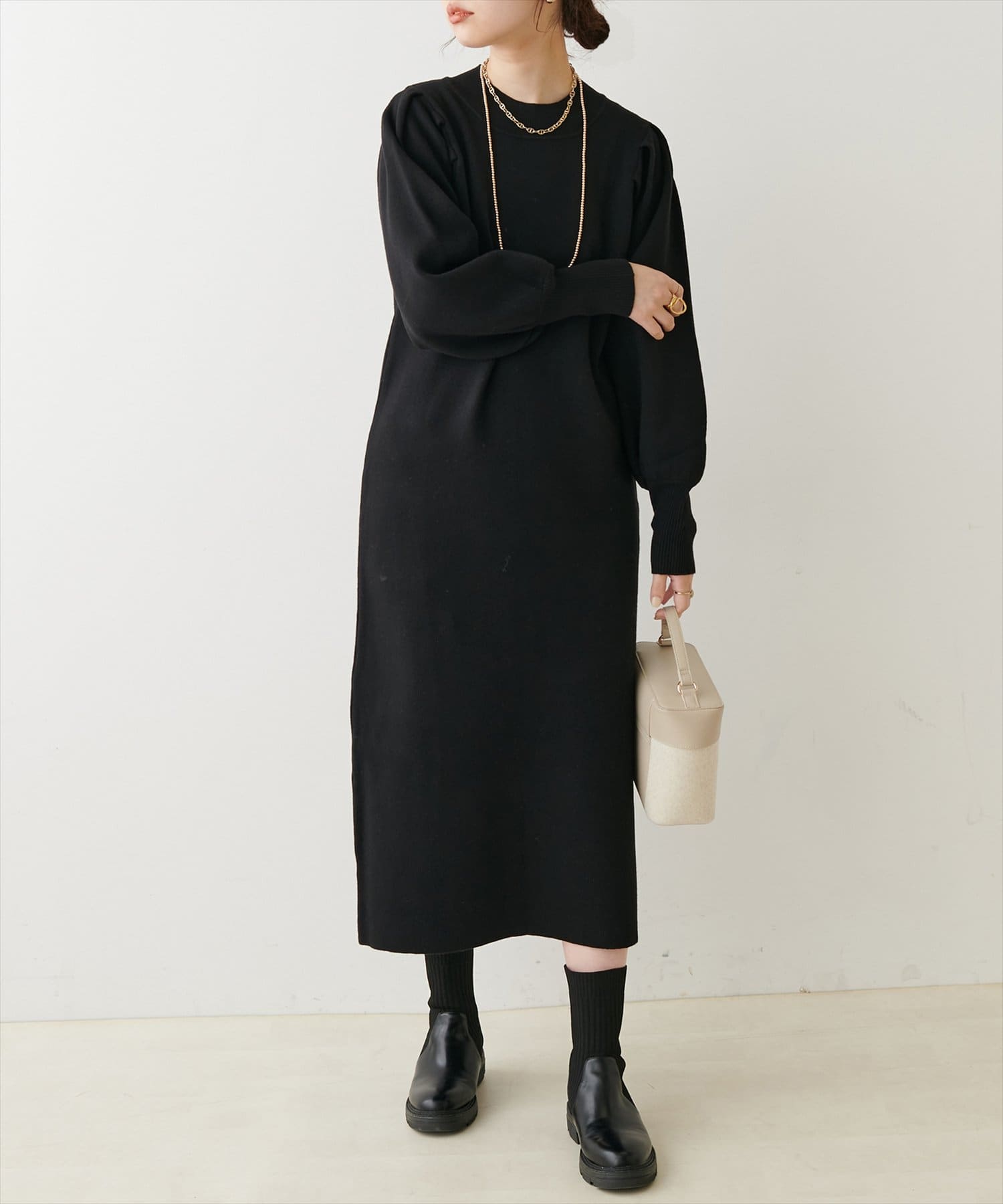 同シリーズで、丈の長さ違いの 0322090770 ボリュームスリーブニットミニワンピース もありますので、