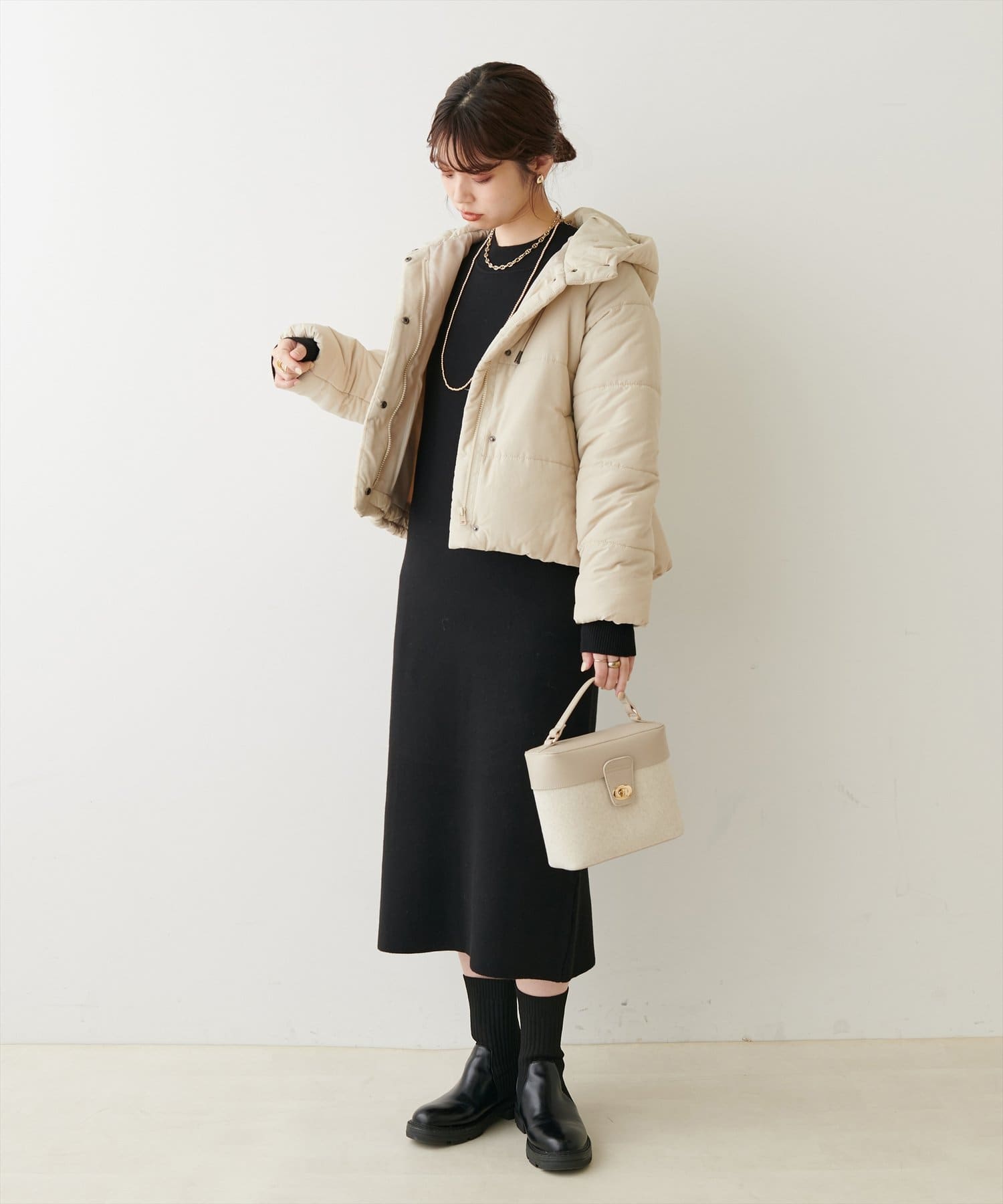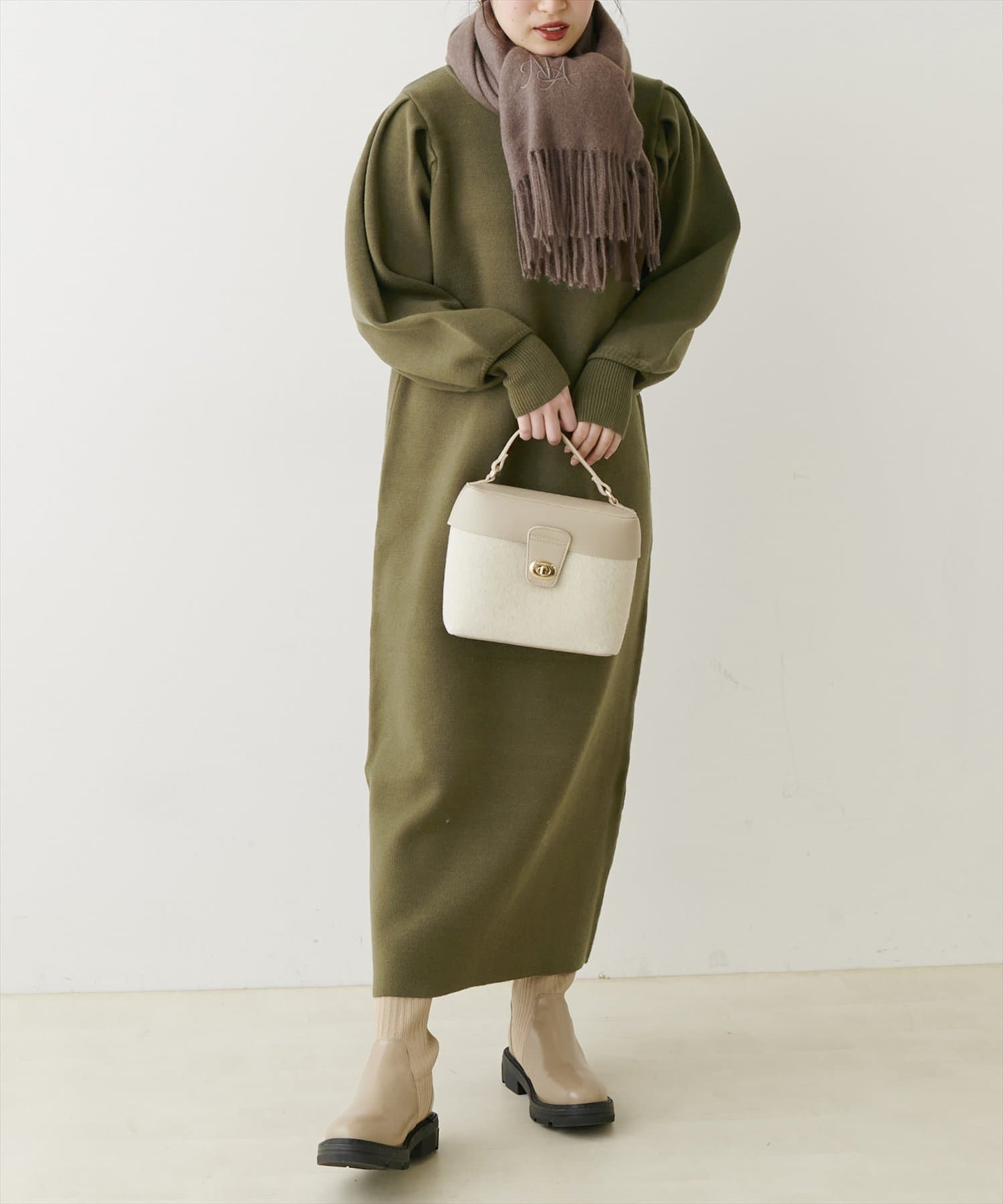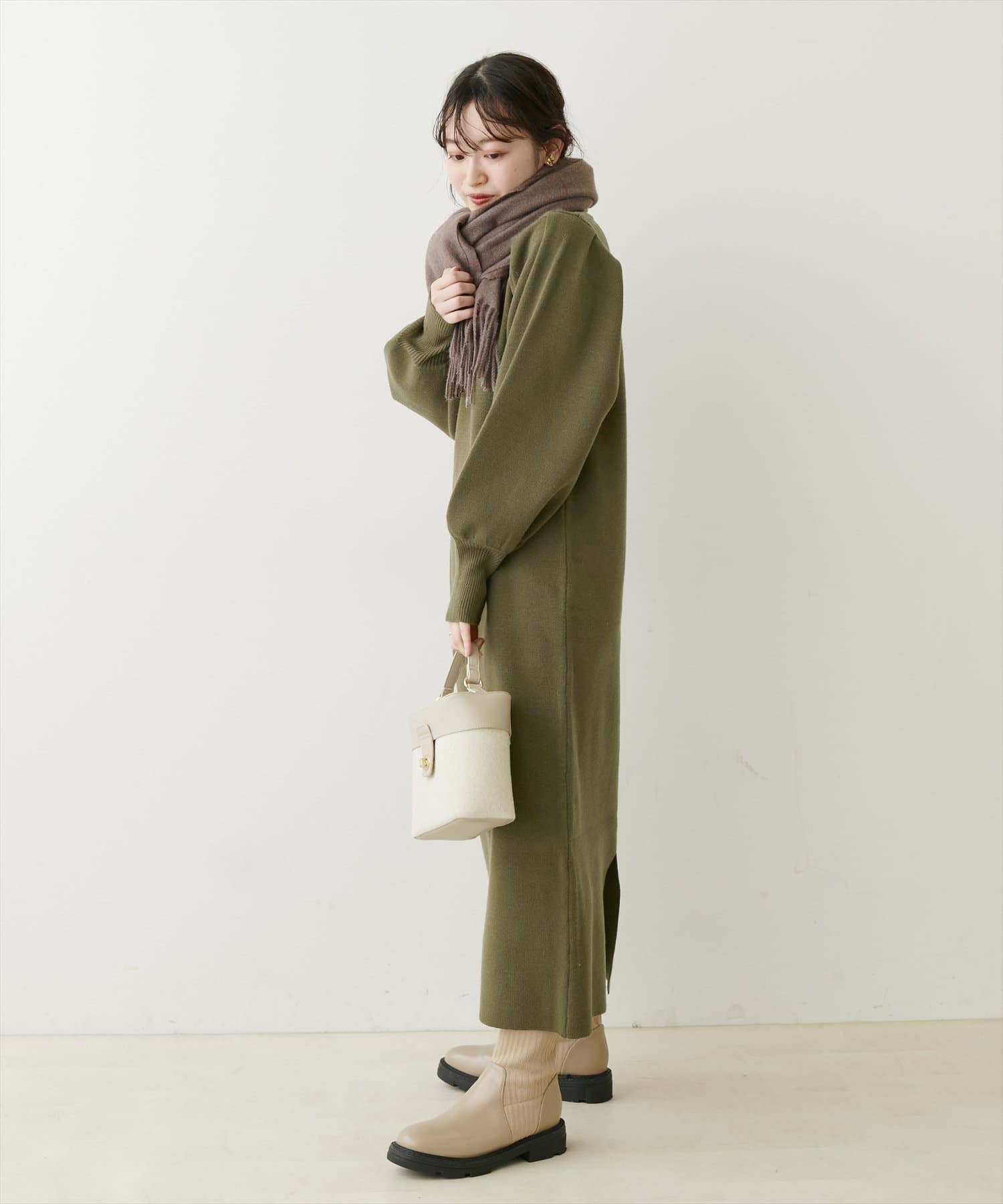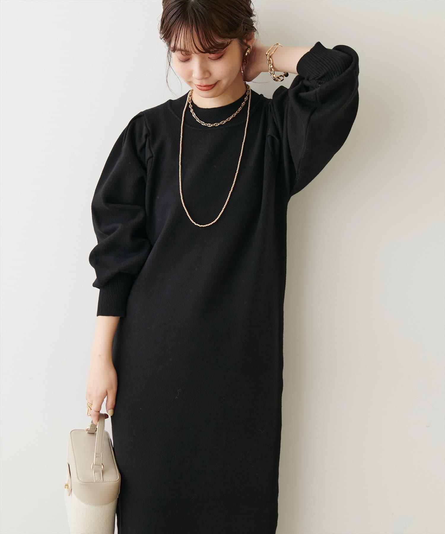 同シリーズで、丈の長さ違いの 0322090770 ボリュームスリーブニットミニワンピース もありますので、