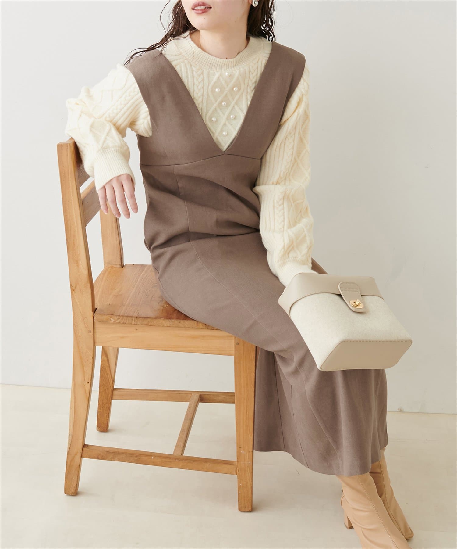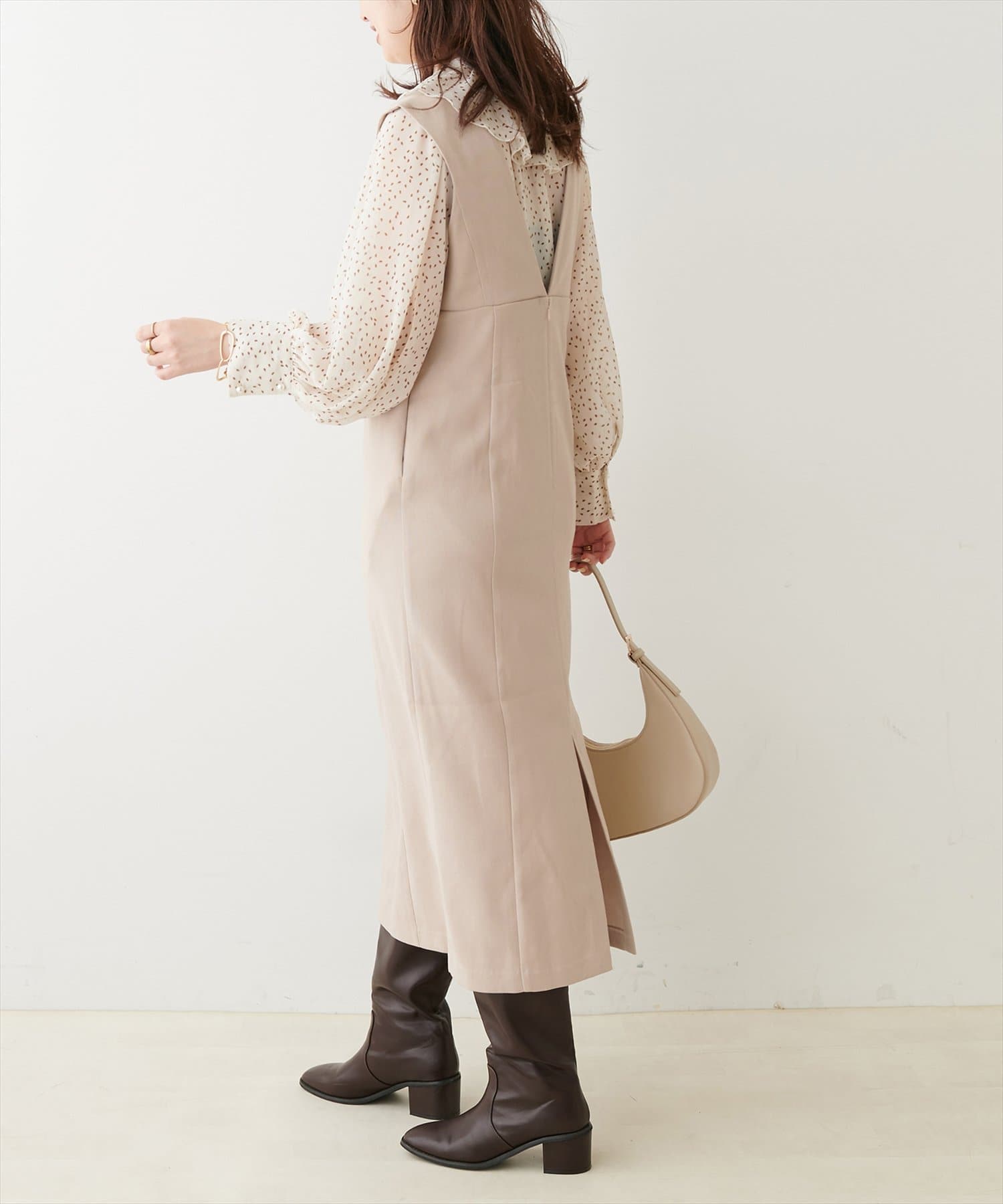 ピーチツイル素材のなめらかなトレンドのジャンスカ。