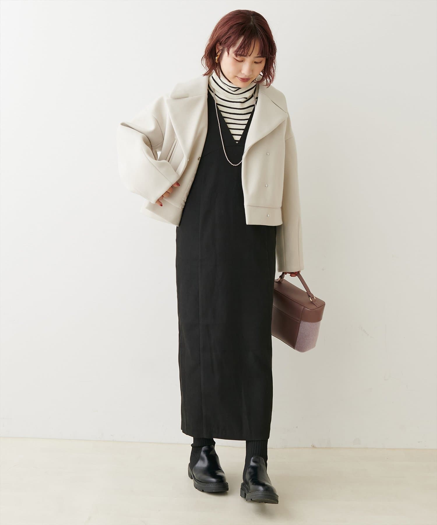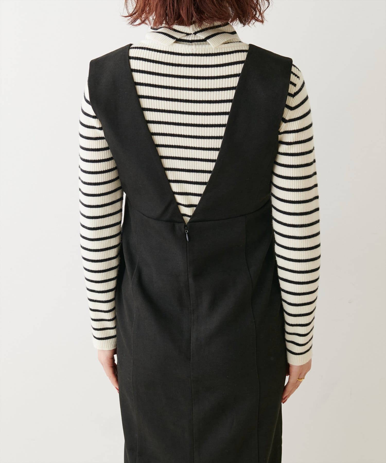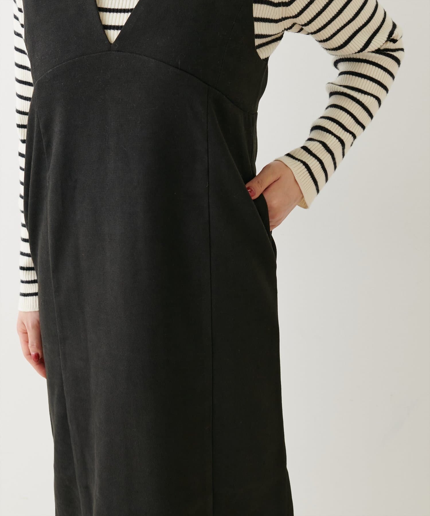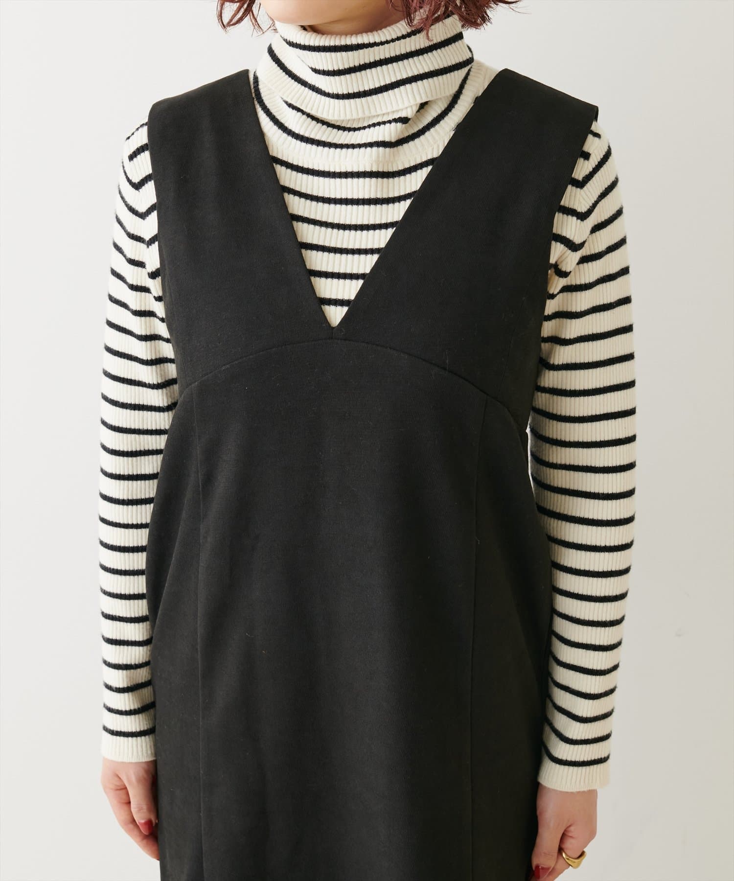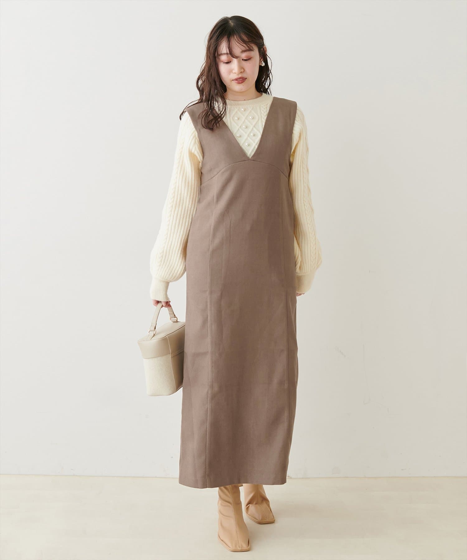 深めなVとすとんとしたスカートなので体型も気にせずお召頂けます。
