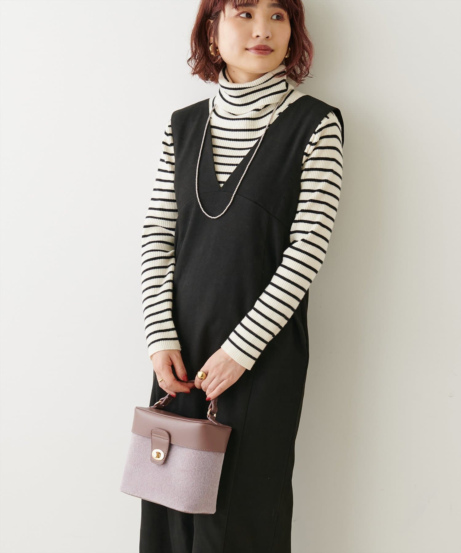ブラウスやタートルニットの合わせは女性らしい印象に。