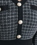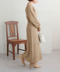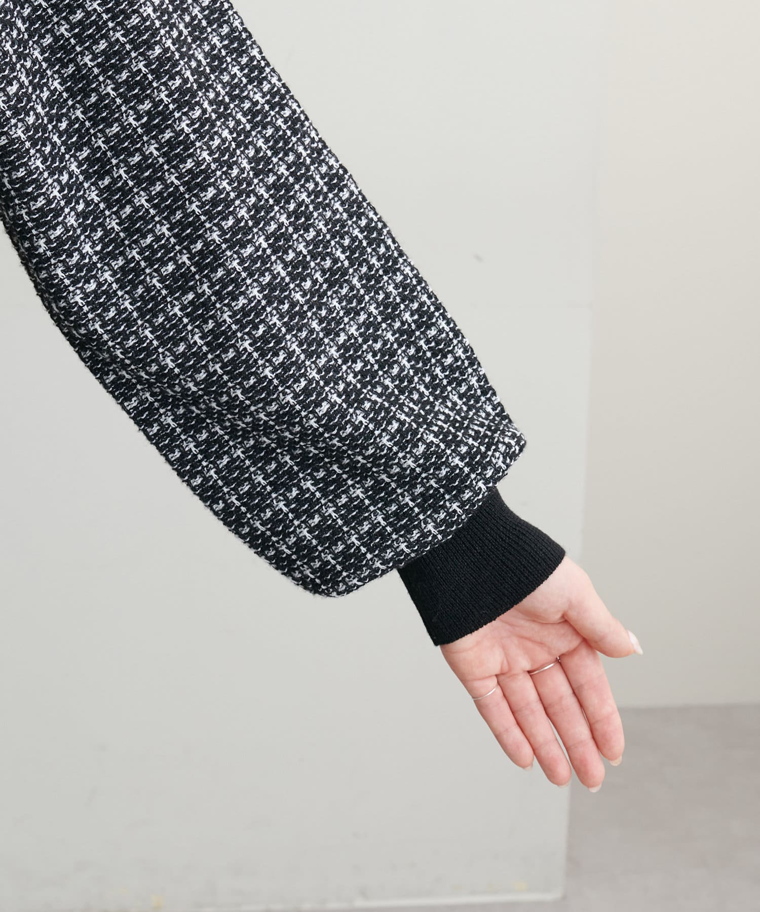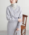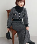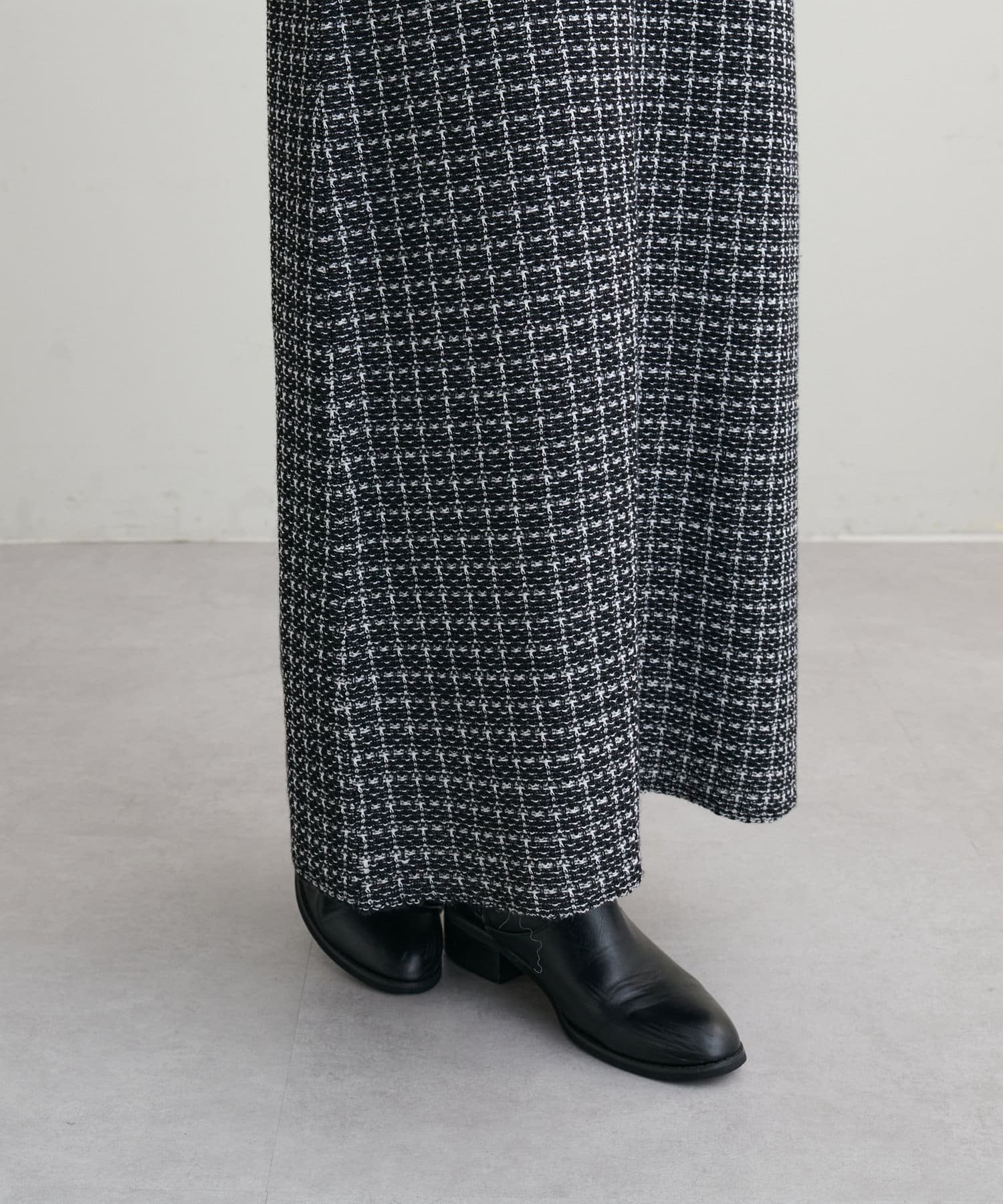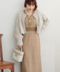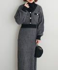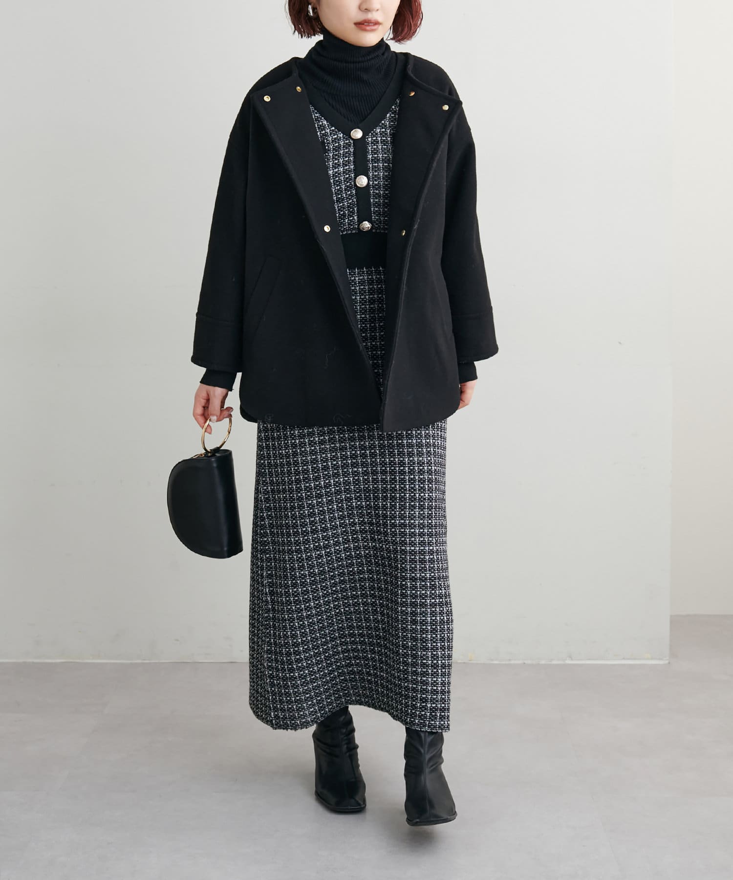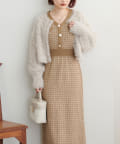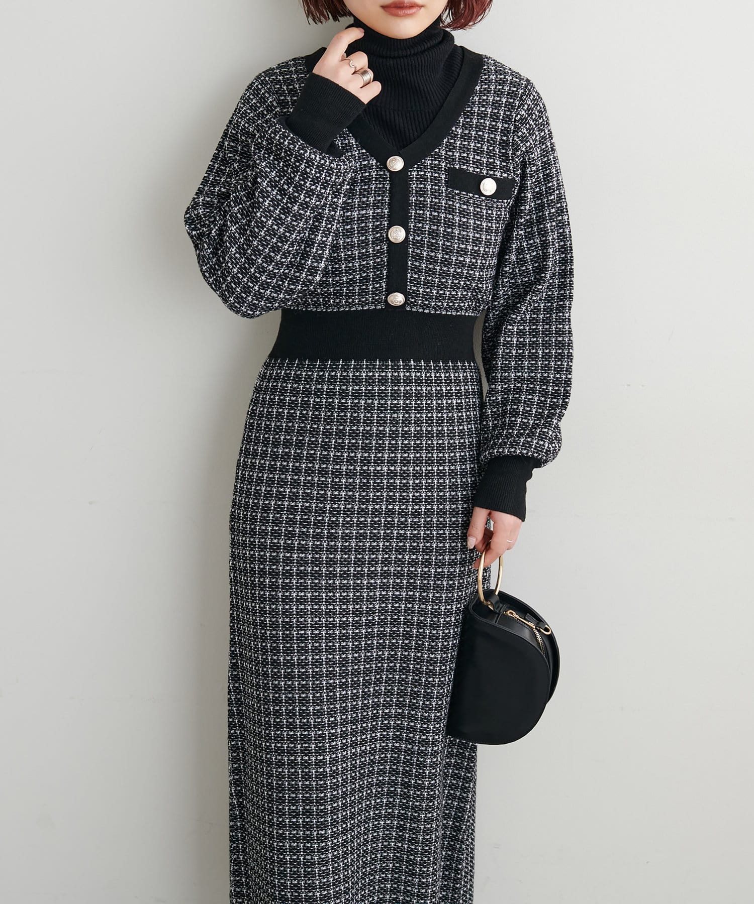 ニットワンピースではあるものの、全体的にツイードデザインとなっている為、ボディラインはやや拾いにくいです。