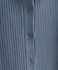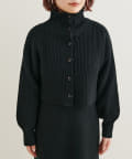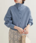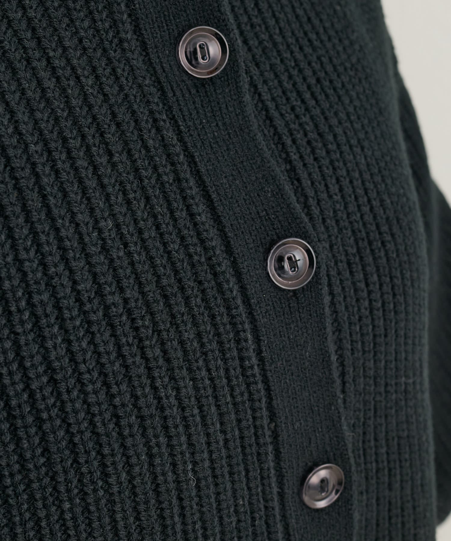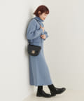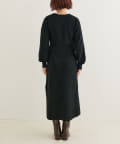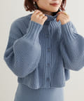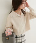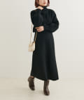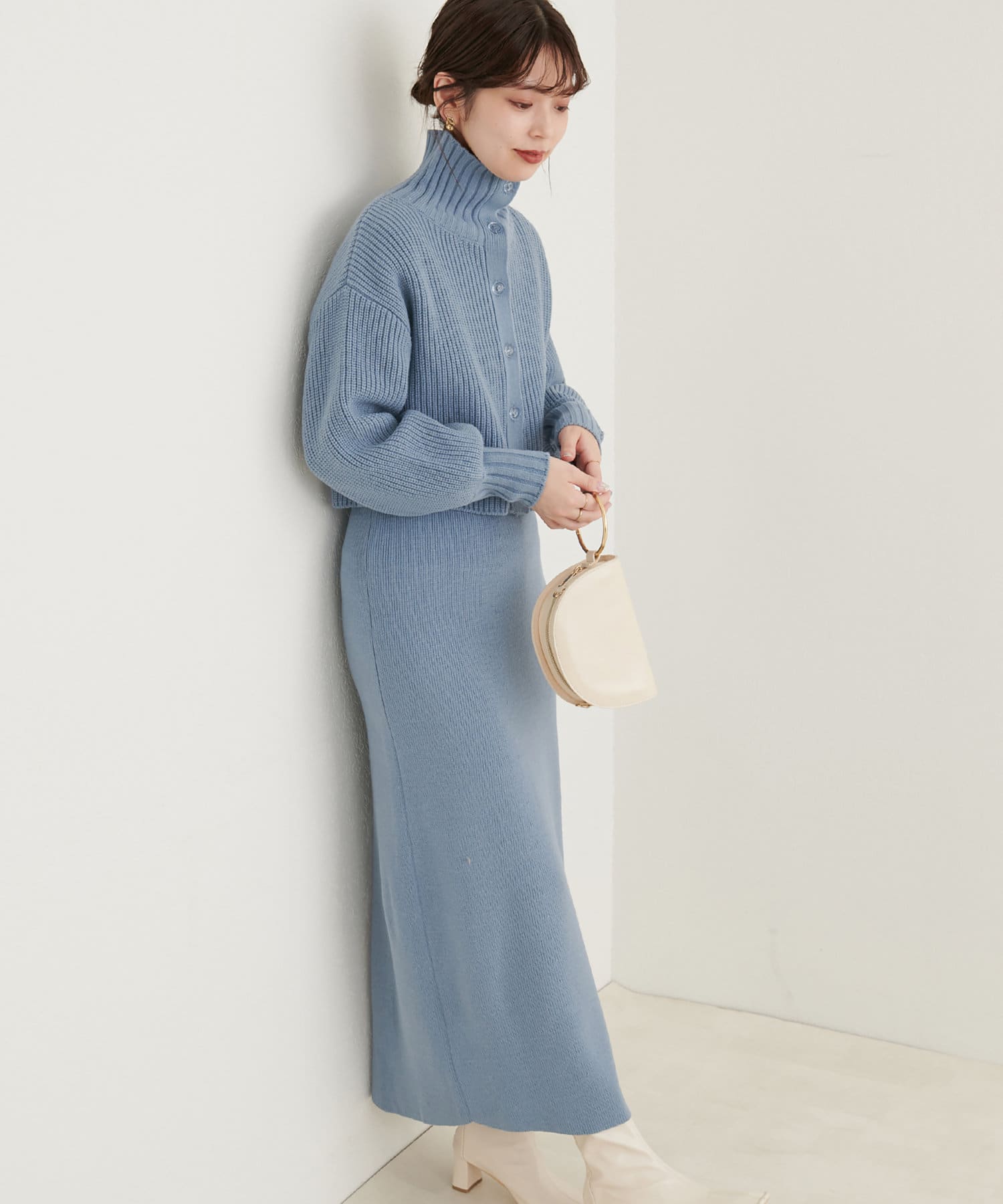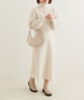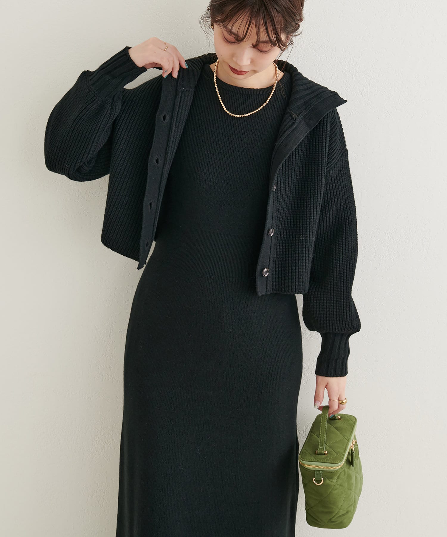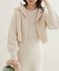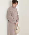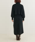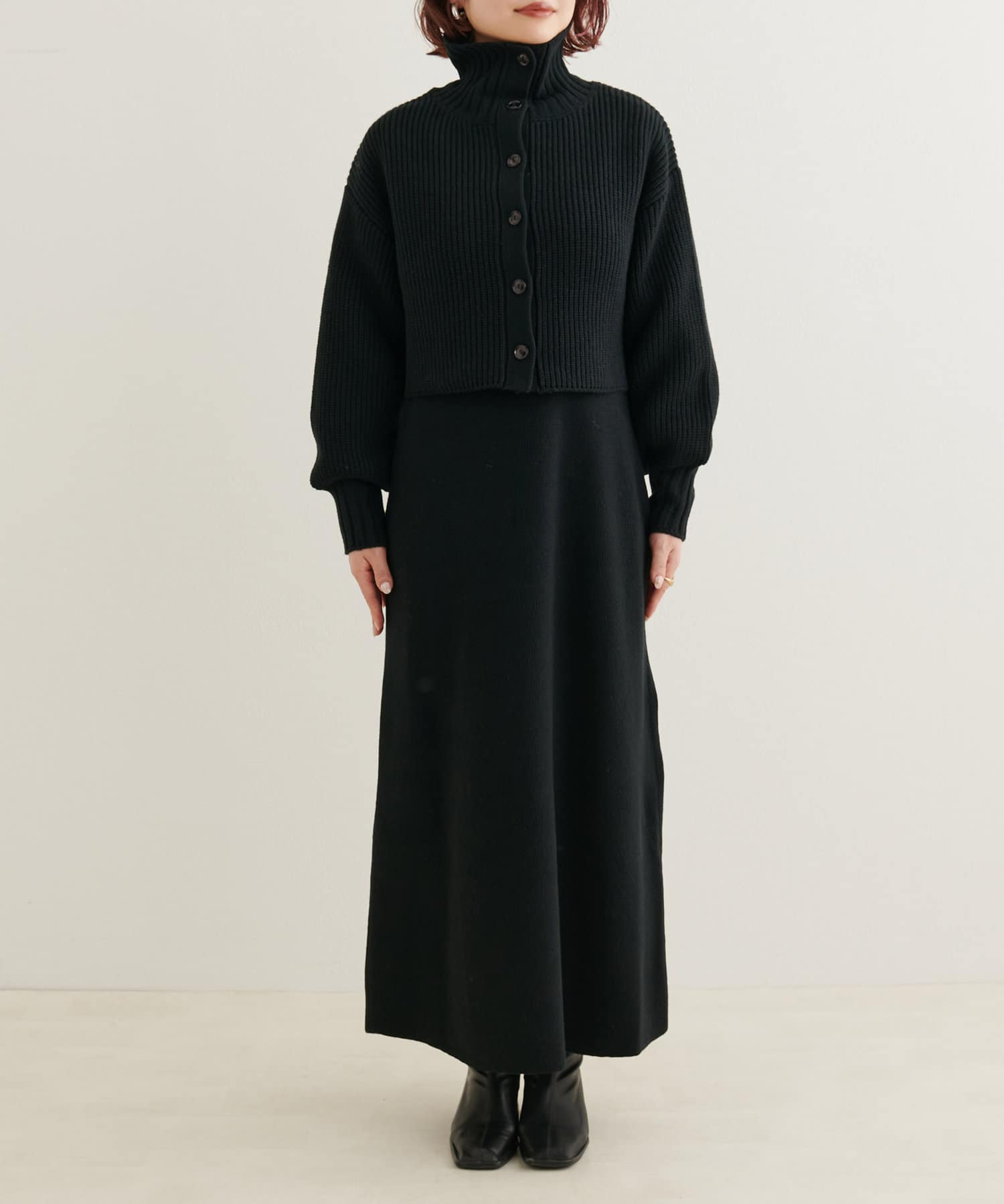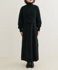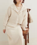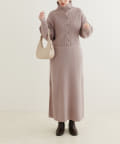 クリアボタンの前後2WAYで着用できるカーディガンとフィット&フレアのニットワンピースのセットアイテム。