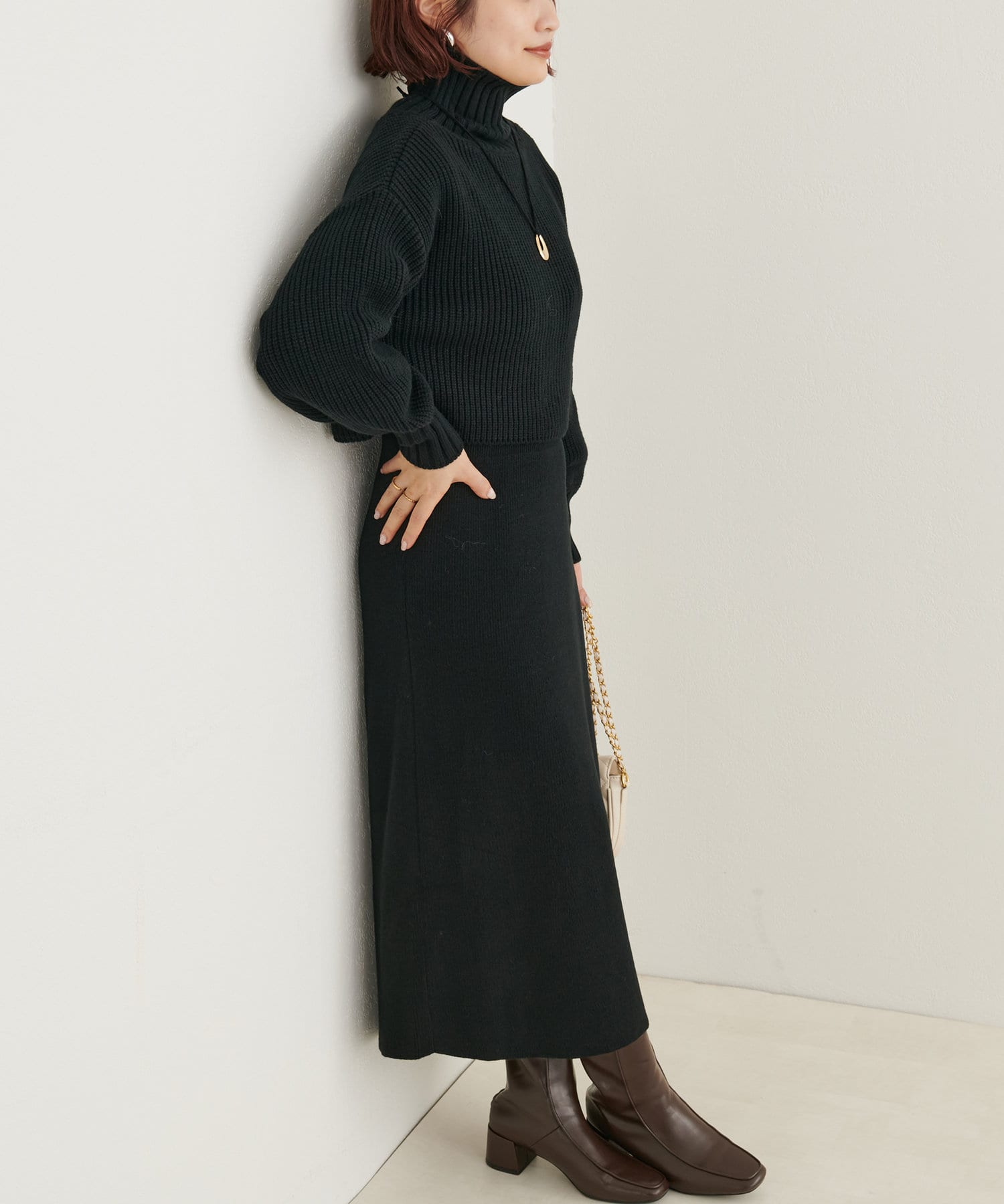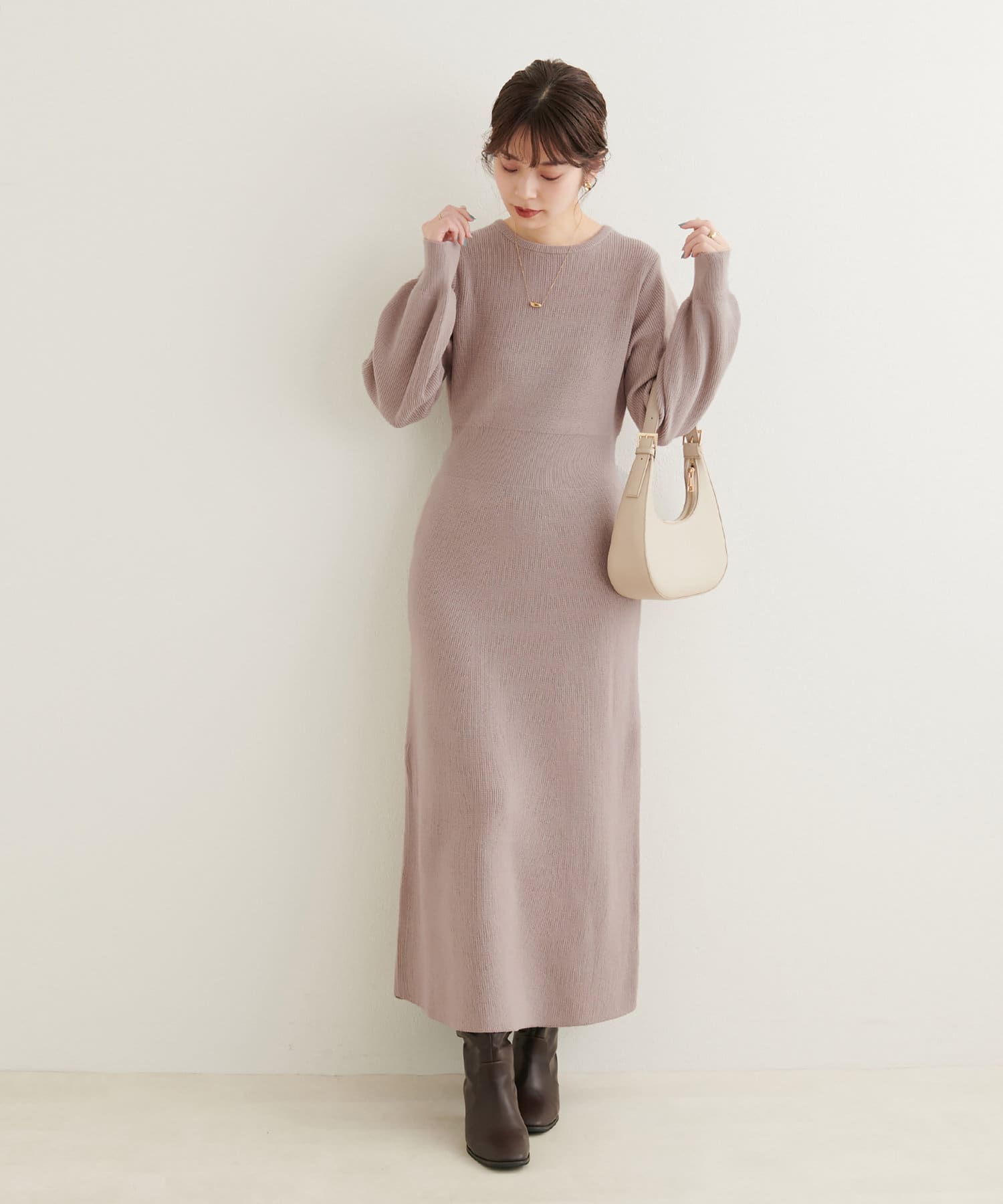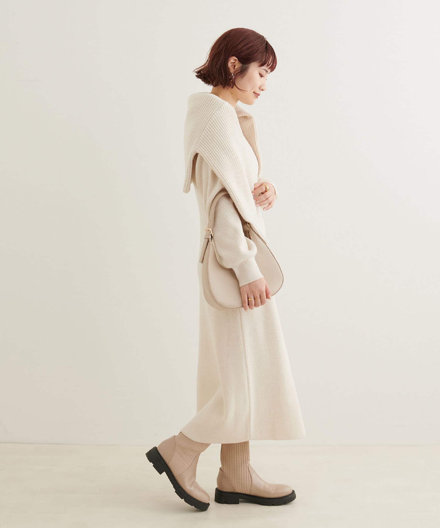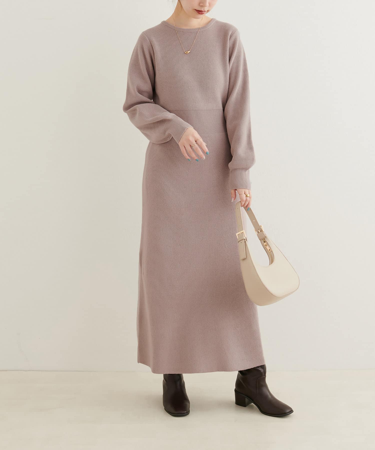 温かく着れる、ニットのセットワンピース