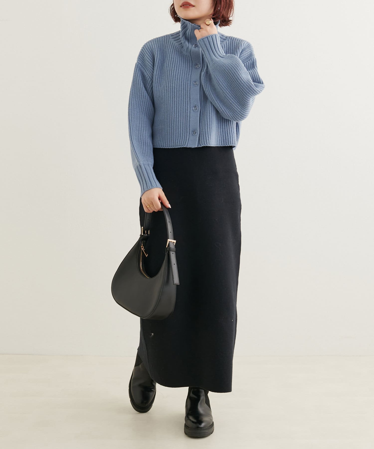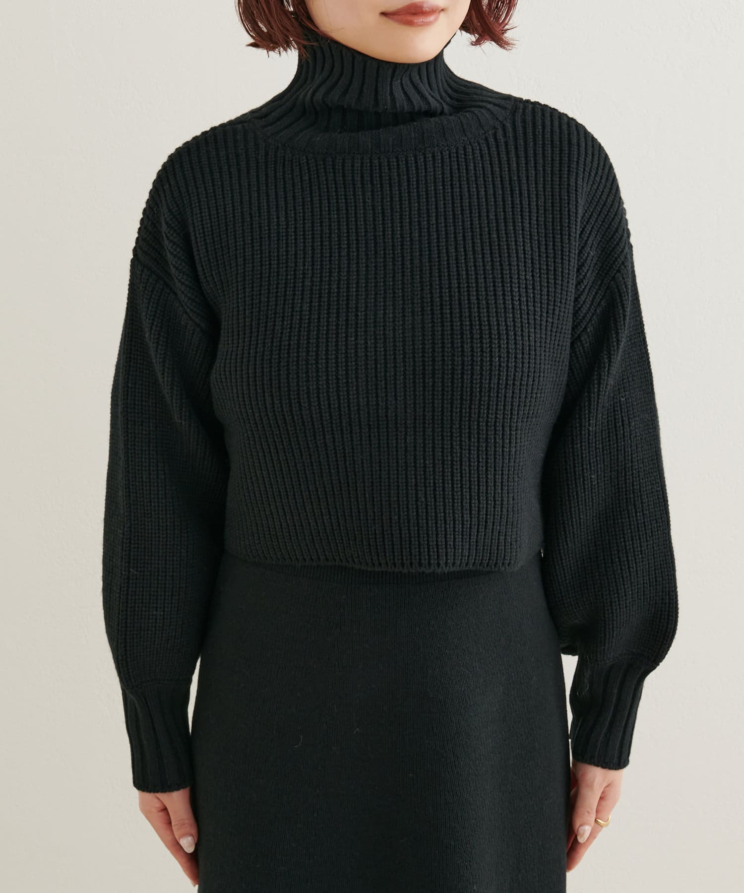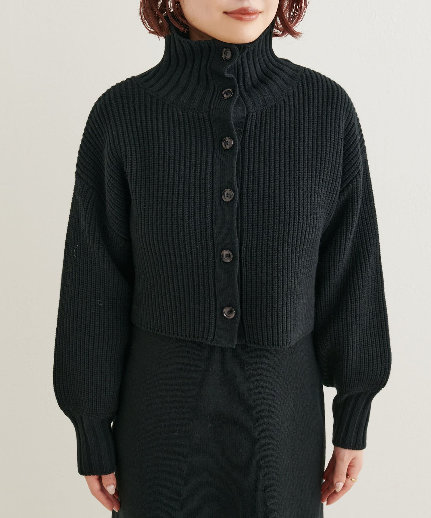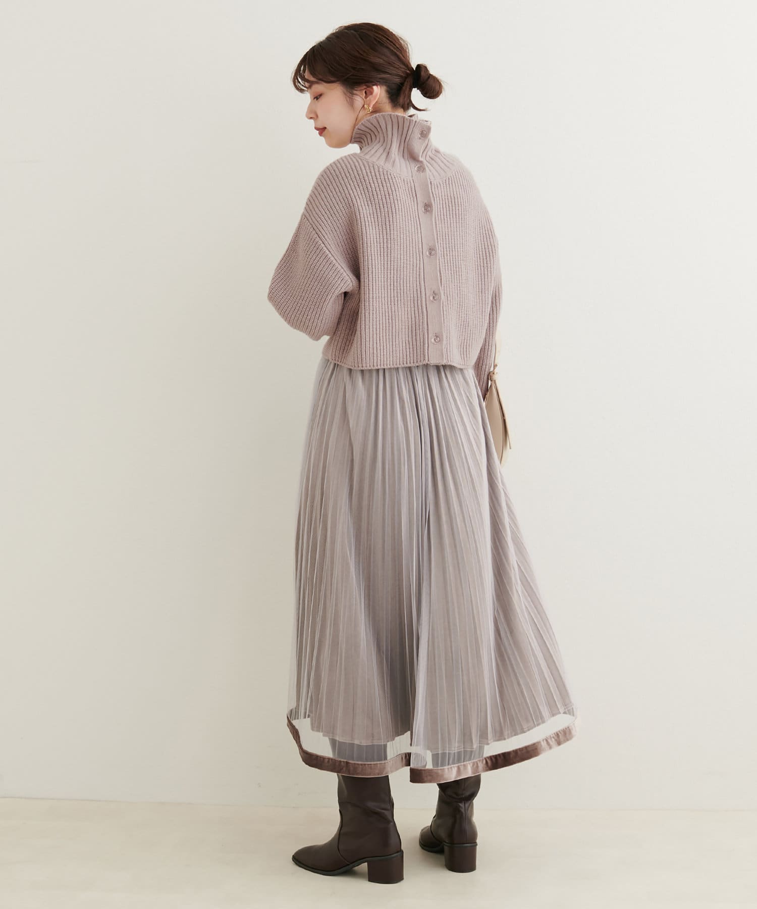 ニットワンピースを1枚で着用していただいても◎またカーデをすべて閉めていただきプチハイのプルオーバーとして着ていただいても◎