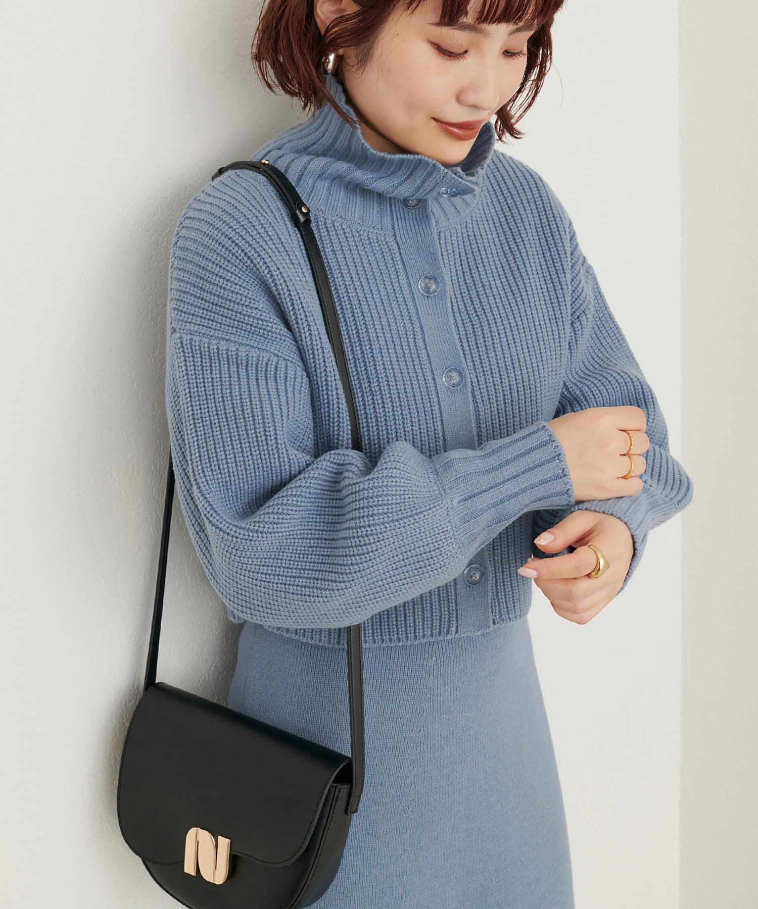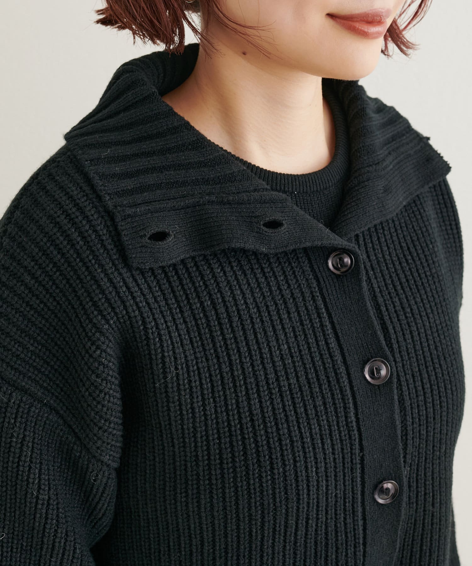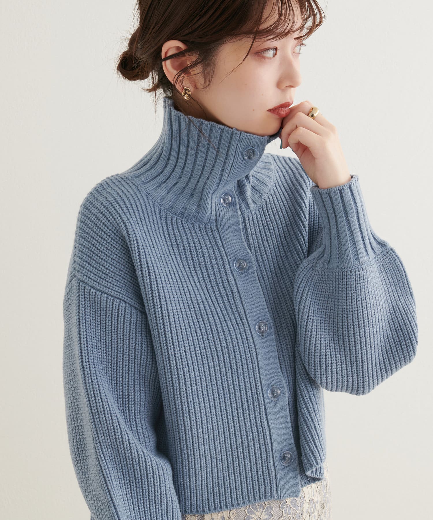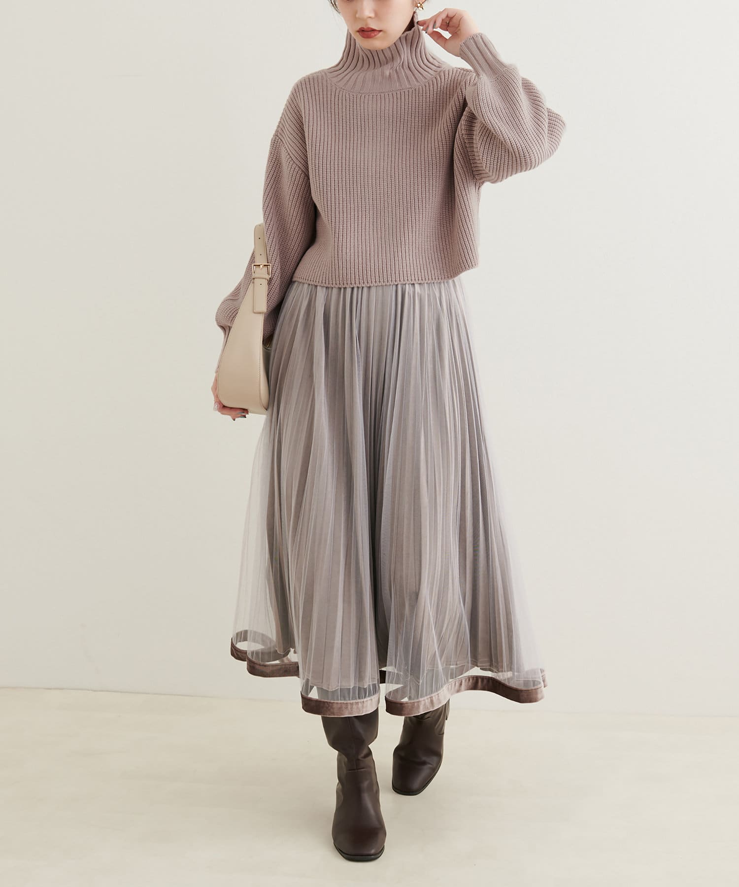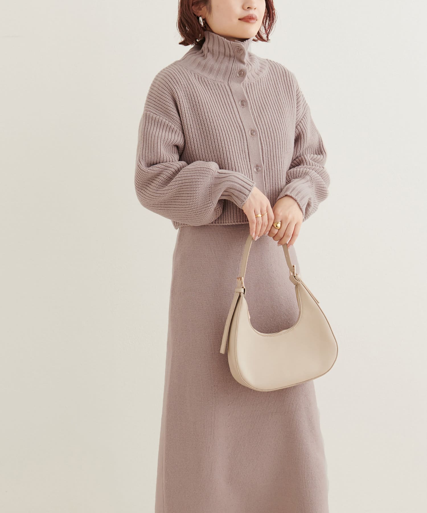 ニットワンピースを1枚で着用していただいても◎またカーデをすべて閉めていただきプチハイのプルオーバーとして着ていただいても◎