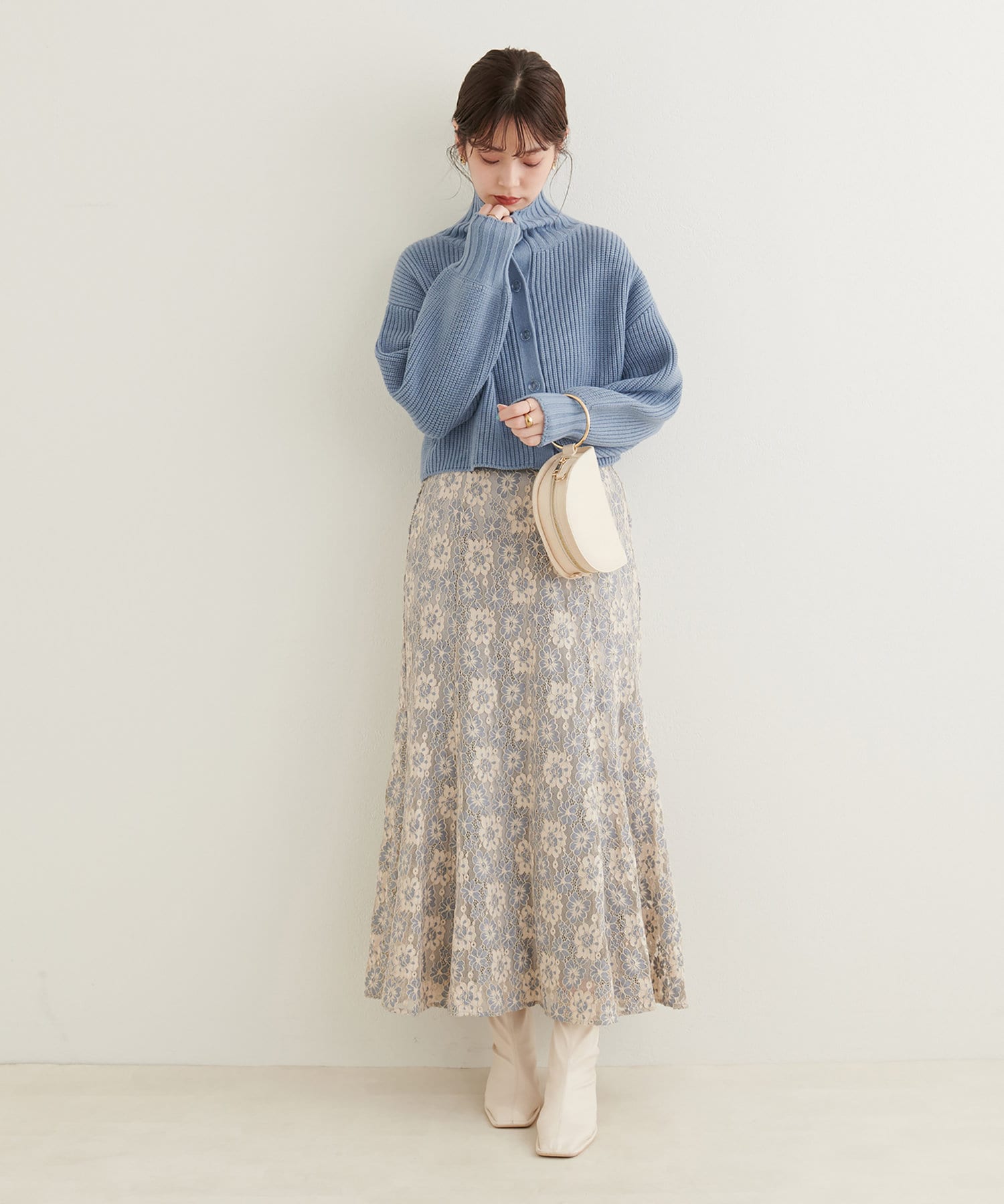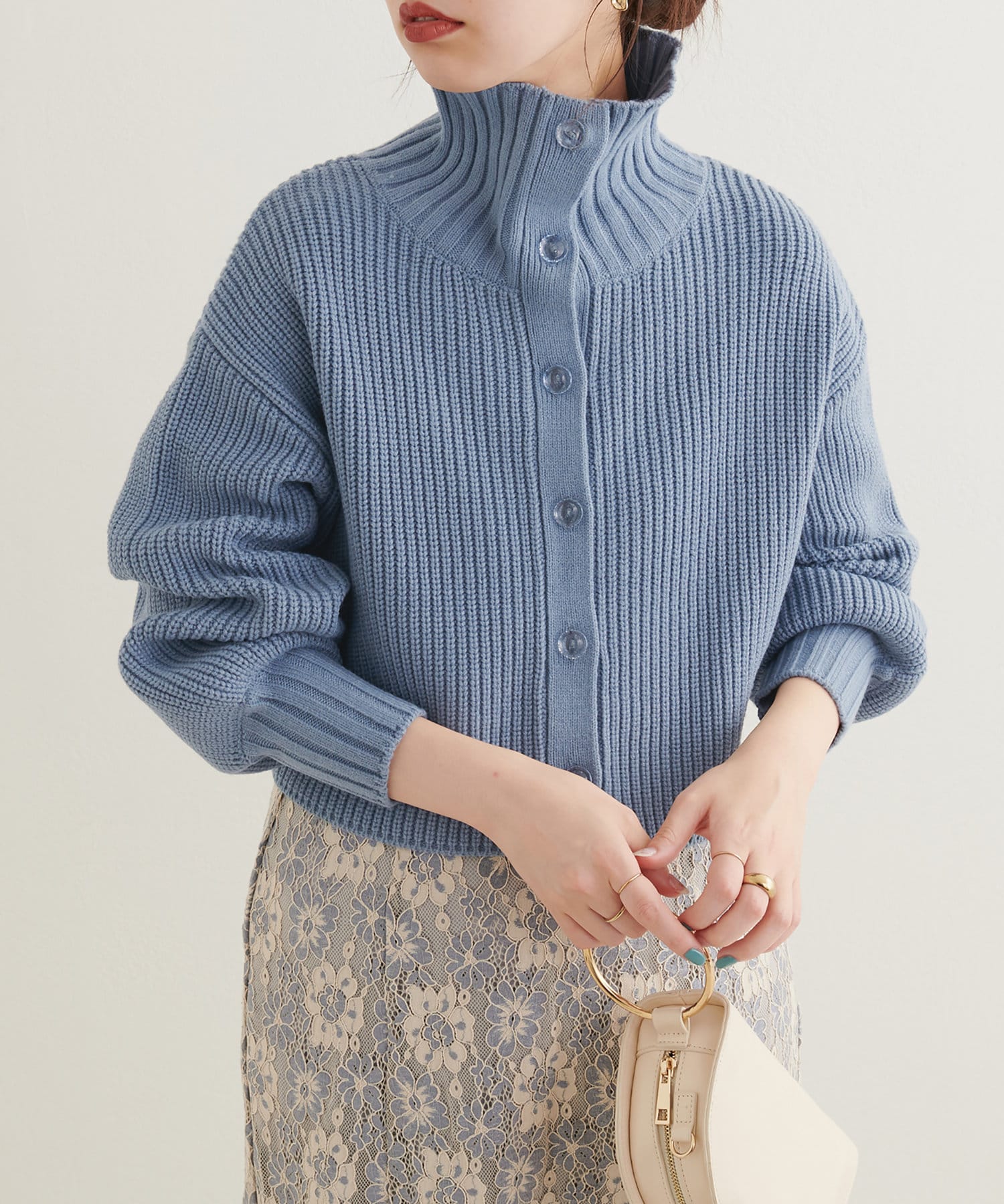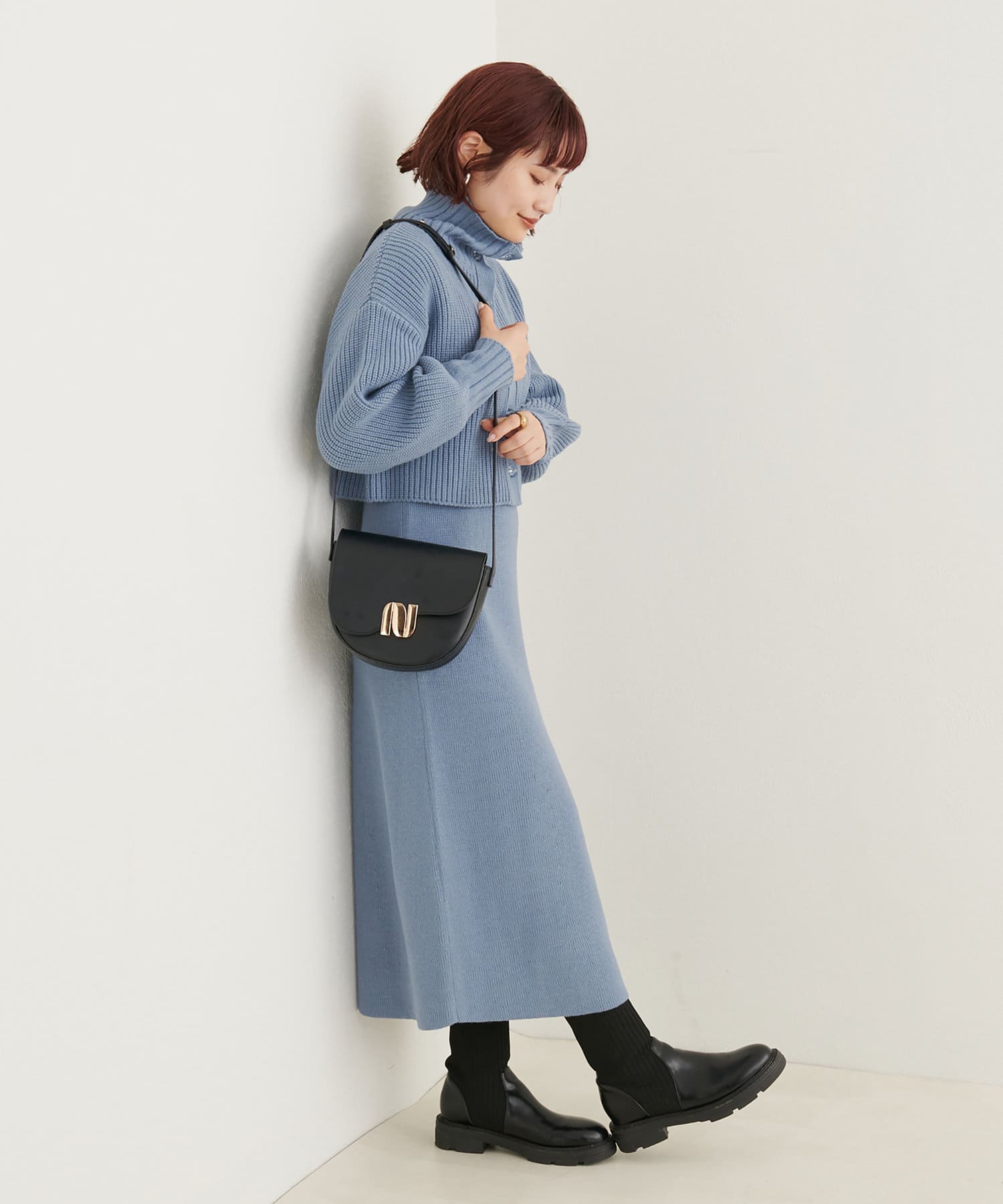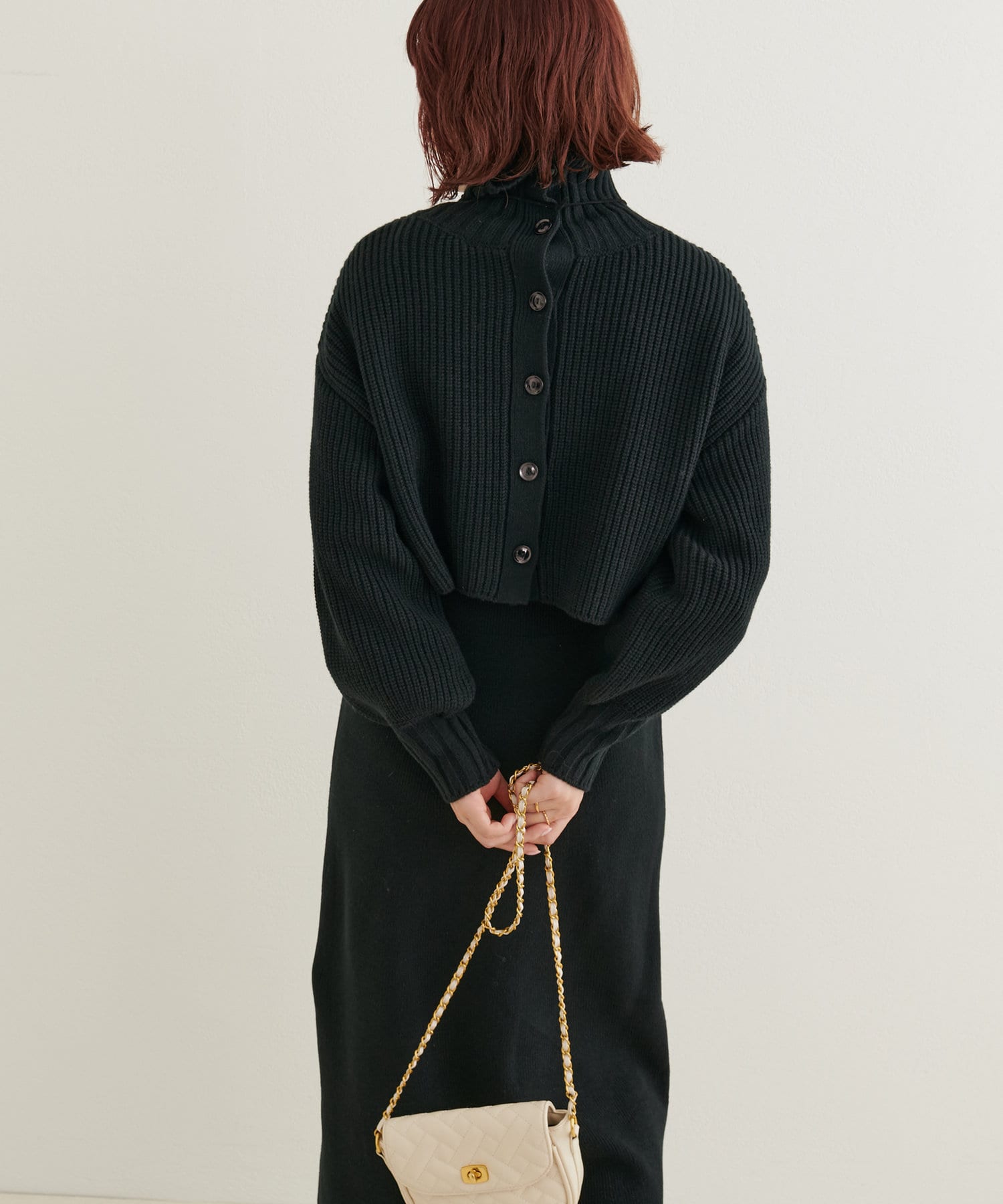 ニットワンピースを1枚で着用していただいても◎またカーデをすべて閉めていただきプチハイのプルオーバーとして着ていただいても◎