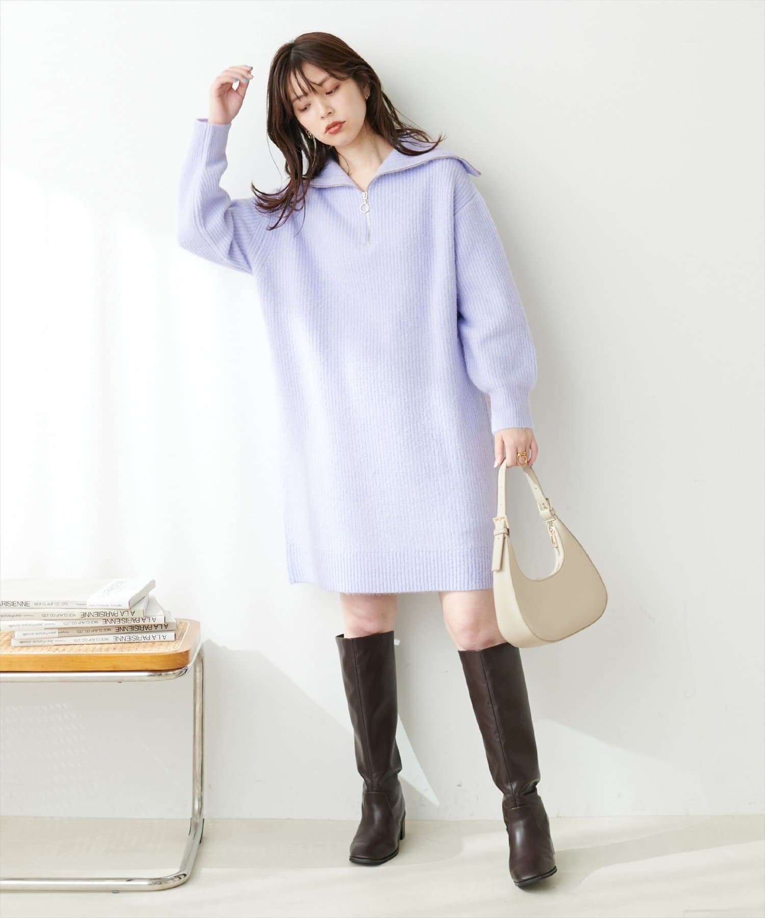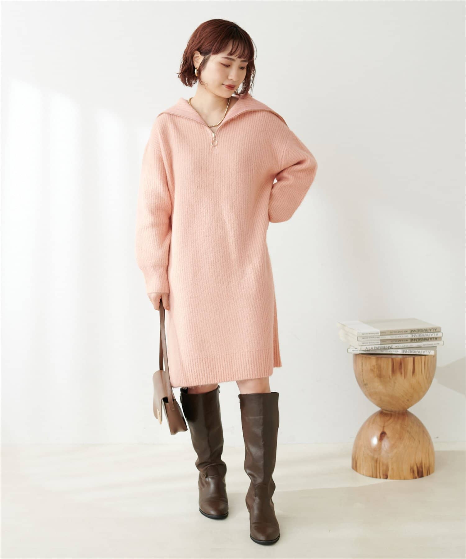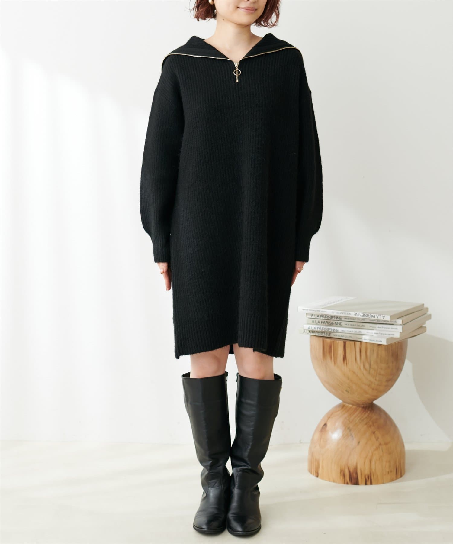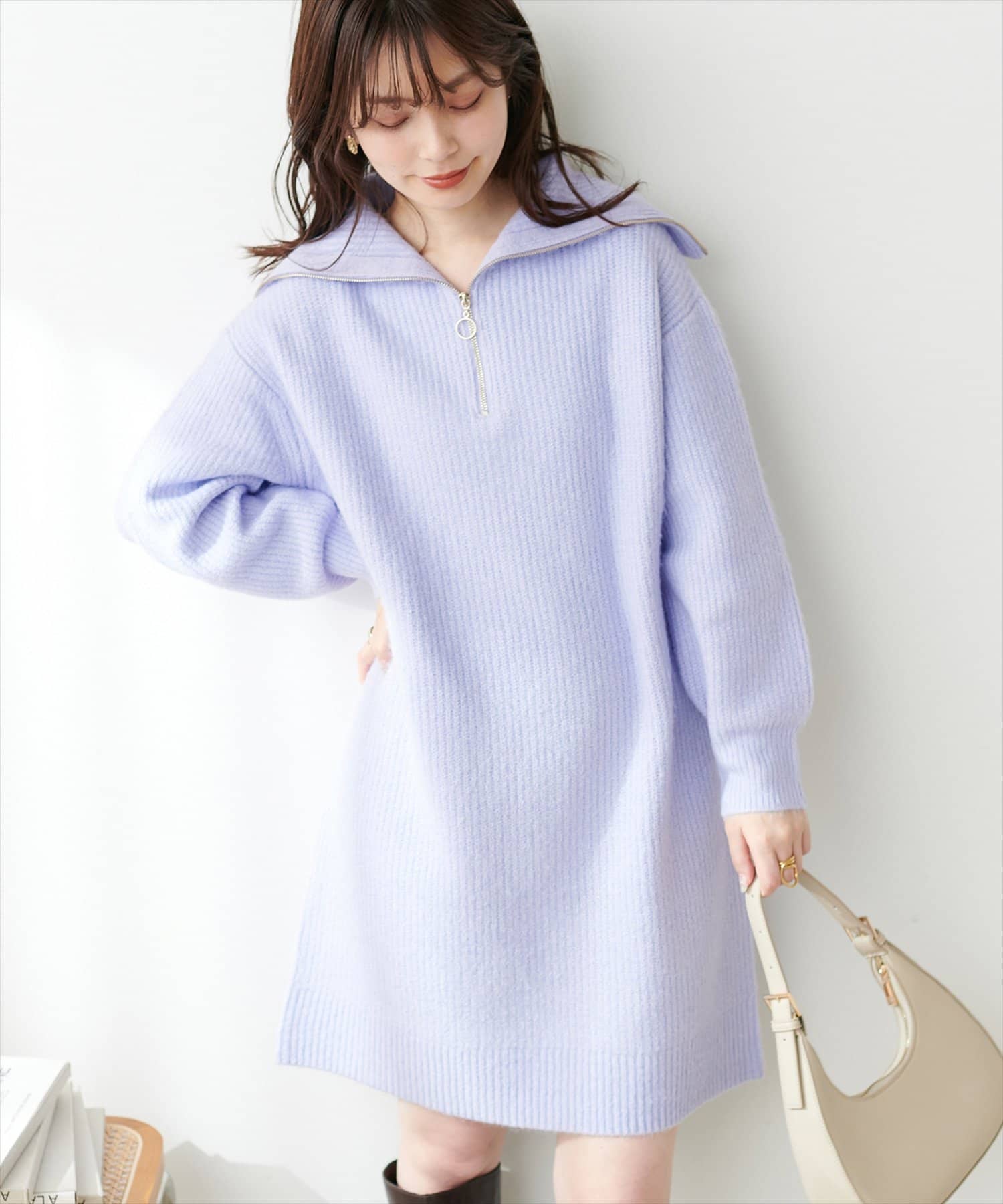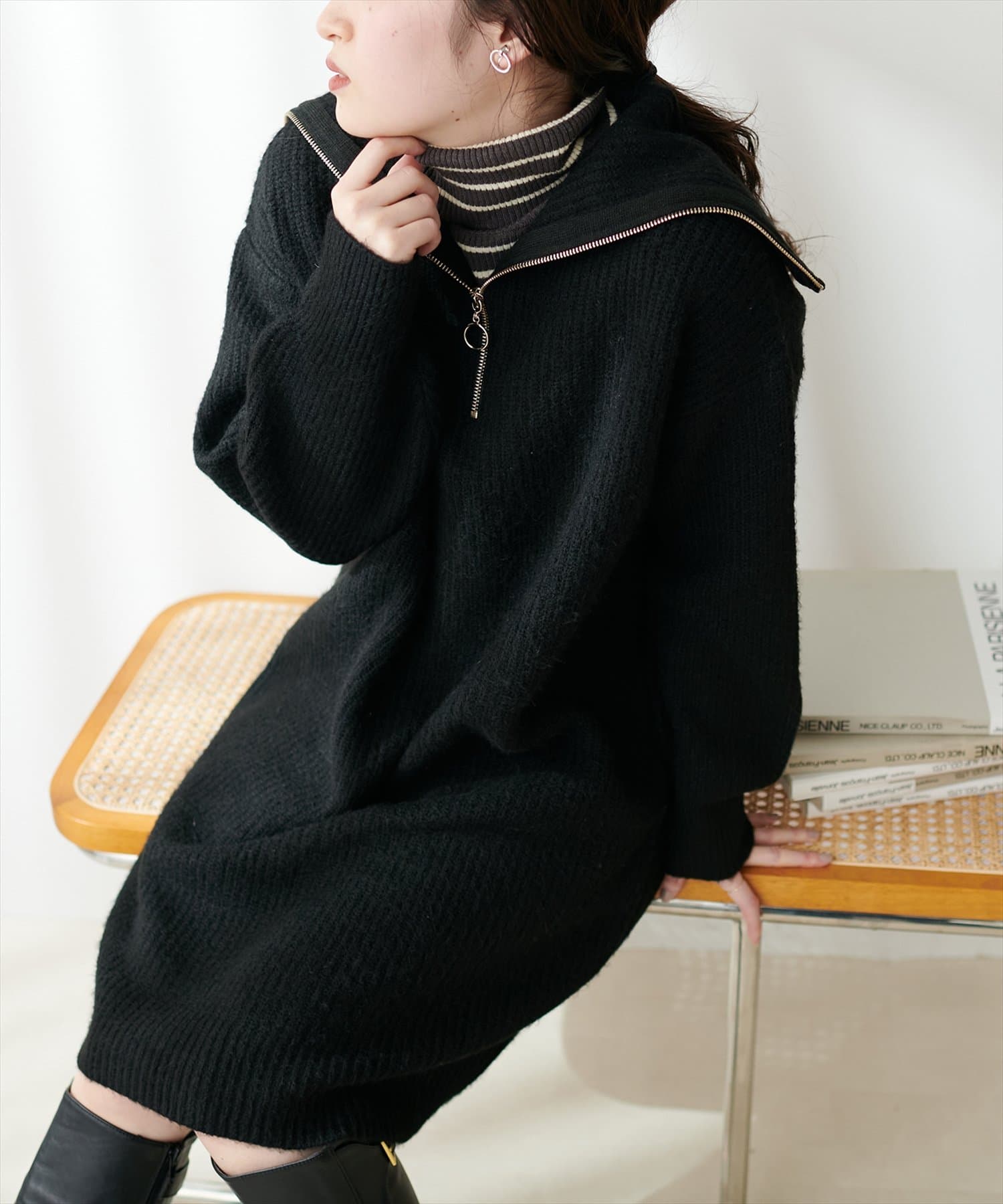 ハーフジップがトレンド感を演出してくれるワンピース。