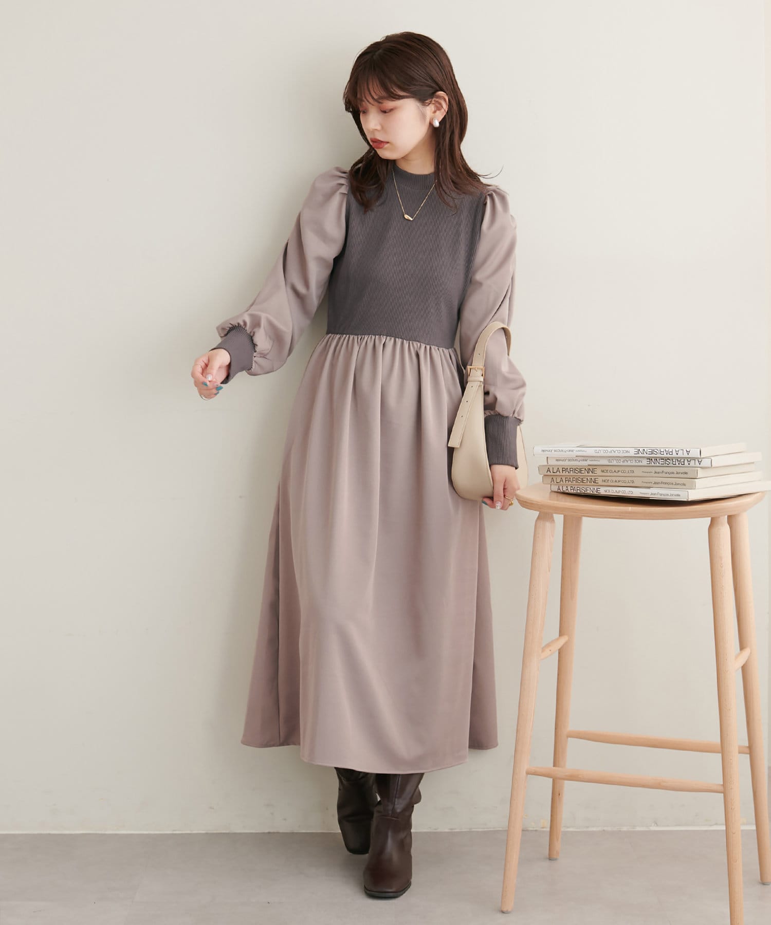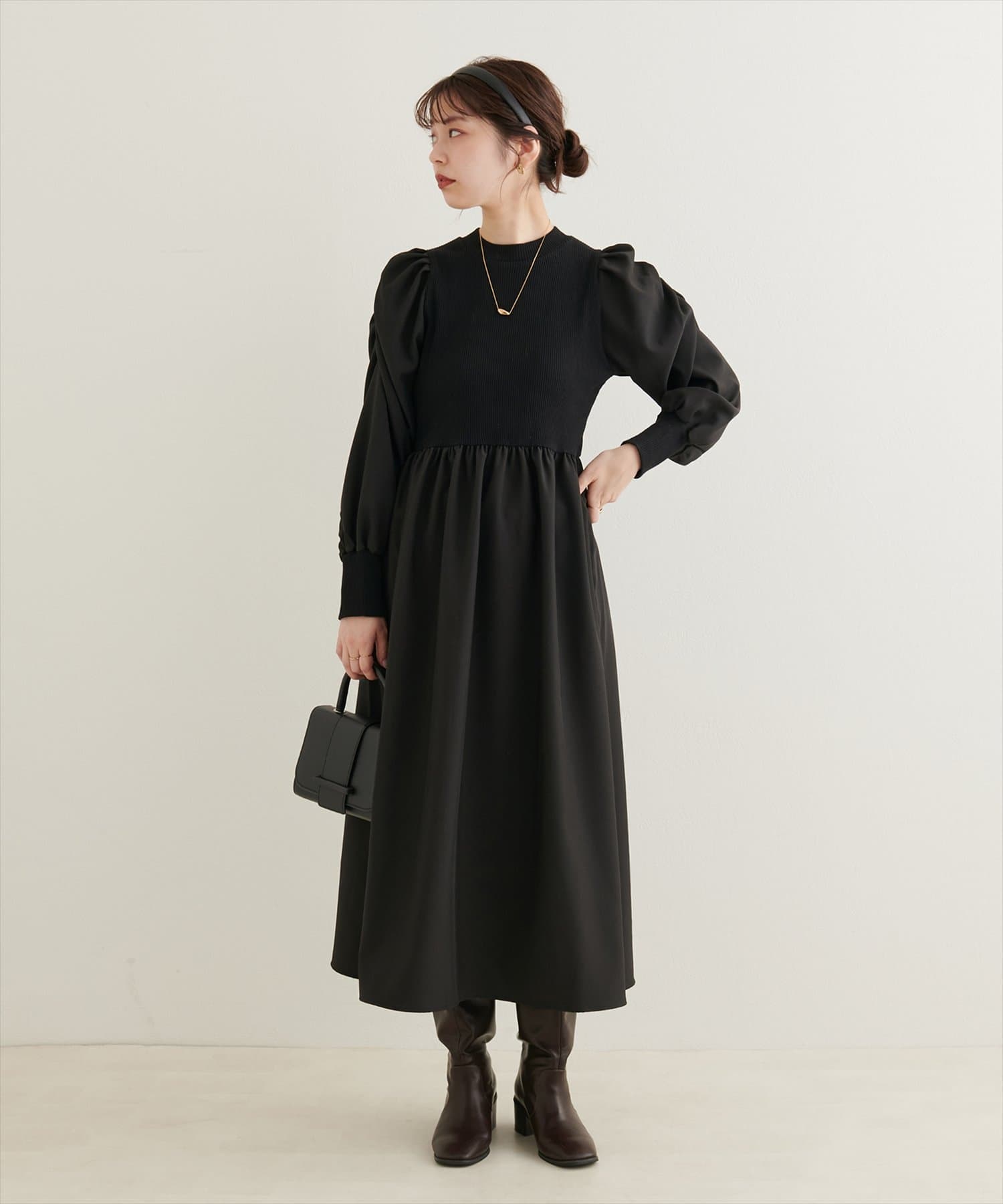 大好評リバイバル!袖コンシャスドッキングワンピ―ス