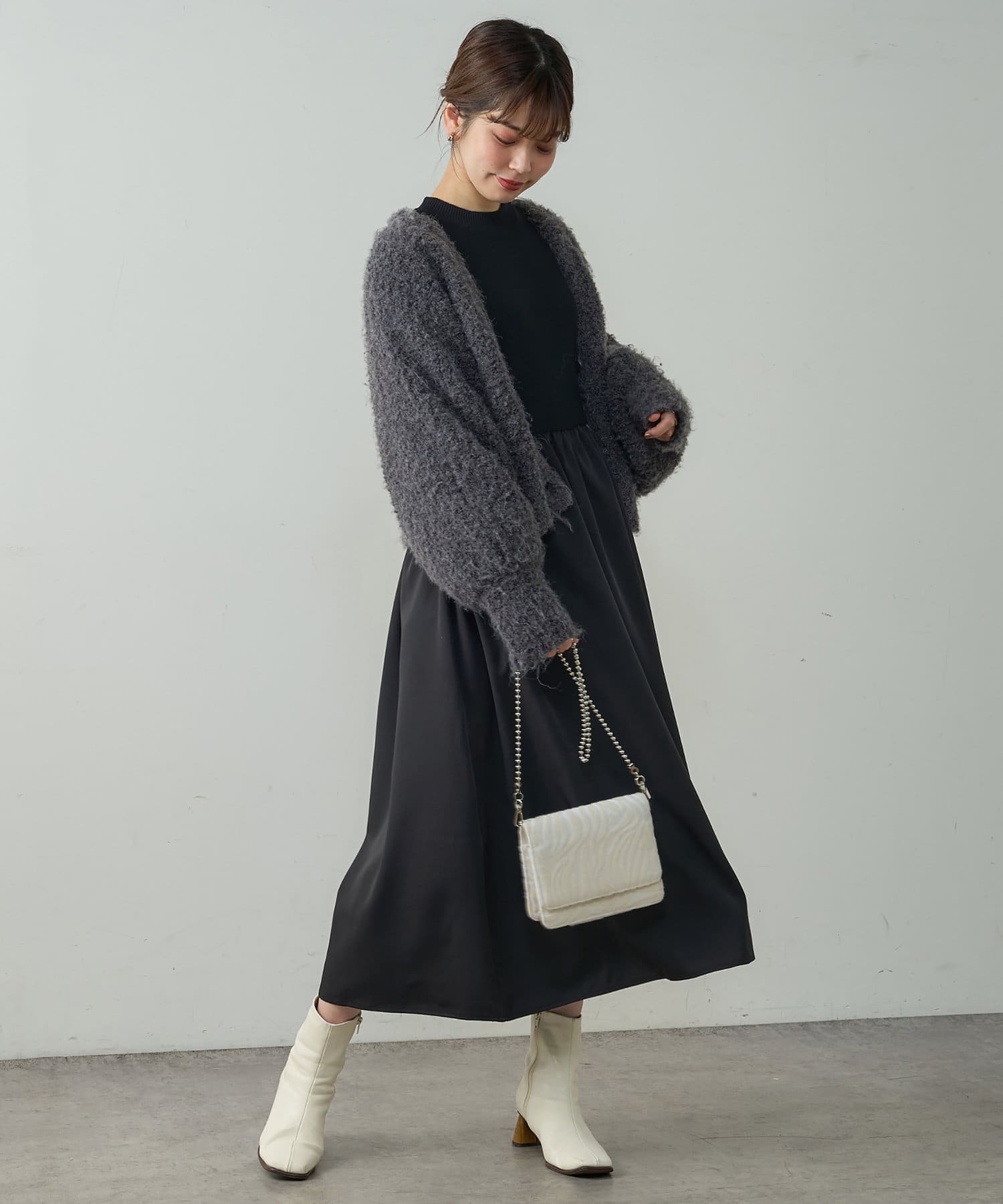 足ものはロングブーツやショートブーツ、パンプス合わせなど、
