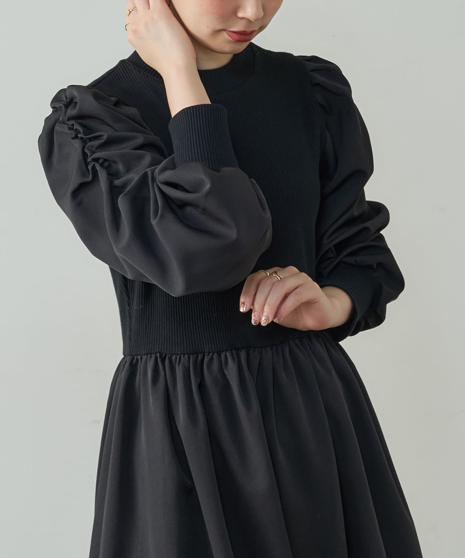 袖コンシャスのデザインで女性らしさが引き立つ1着。