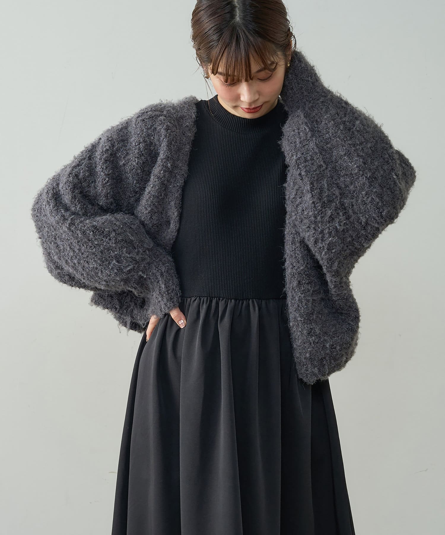 1枚でさらっと着て頂くのはもちろん、袖にゆとりのあるニットカーディガンや、