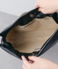 メタリックな光沢感が目を惹くクラッチバックで、生地も柔らかくペットボトルもすっぽり入る大容量です。
