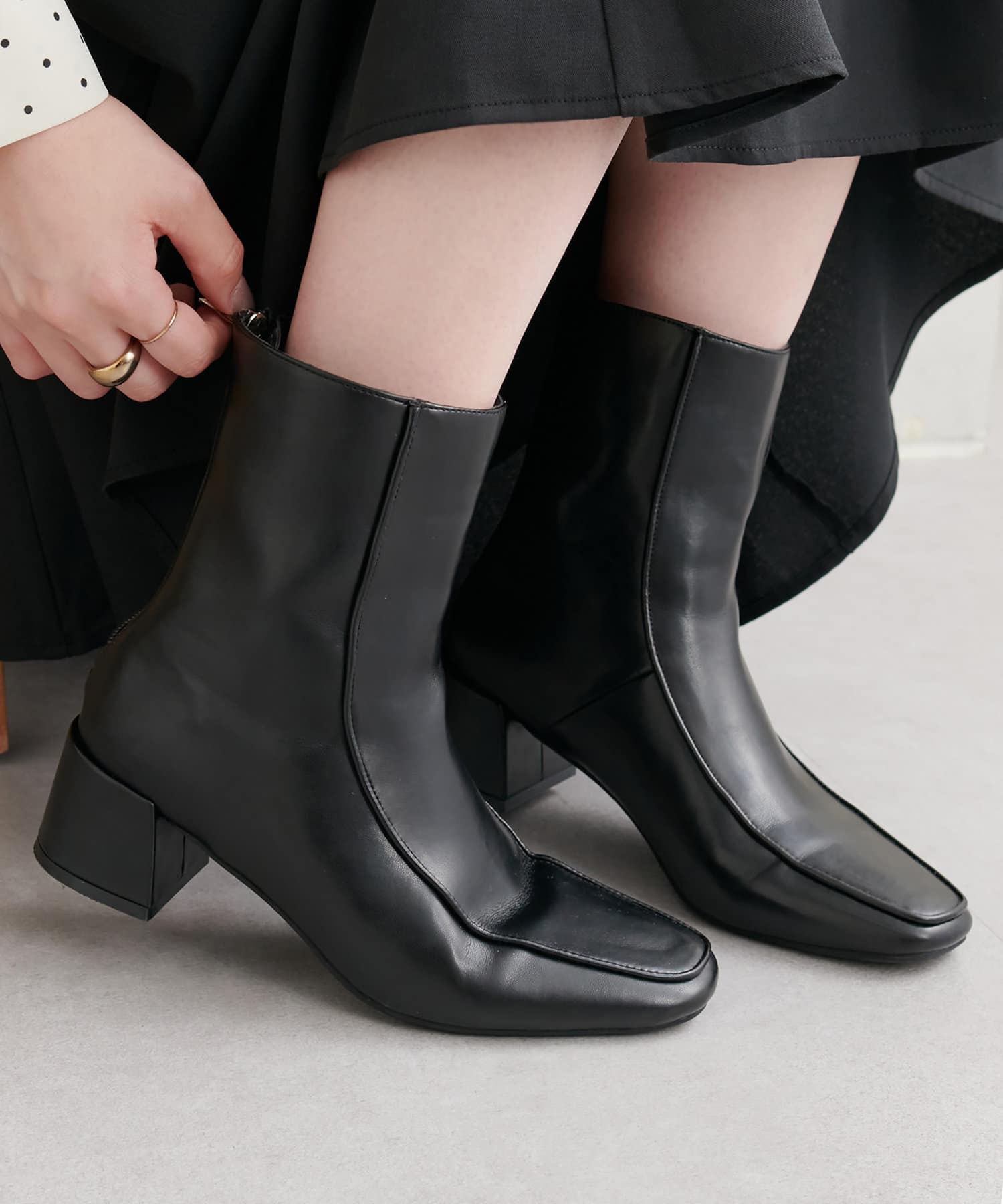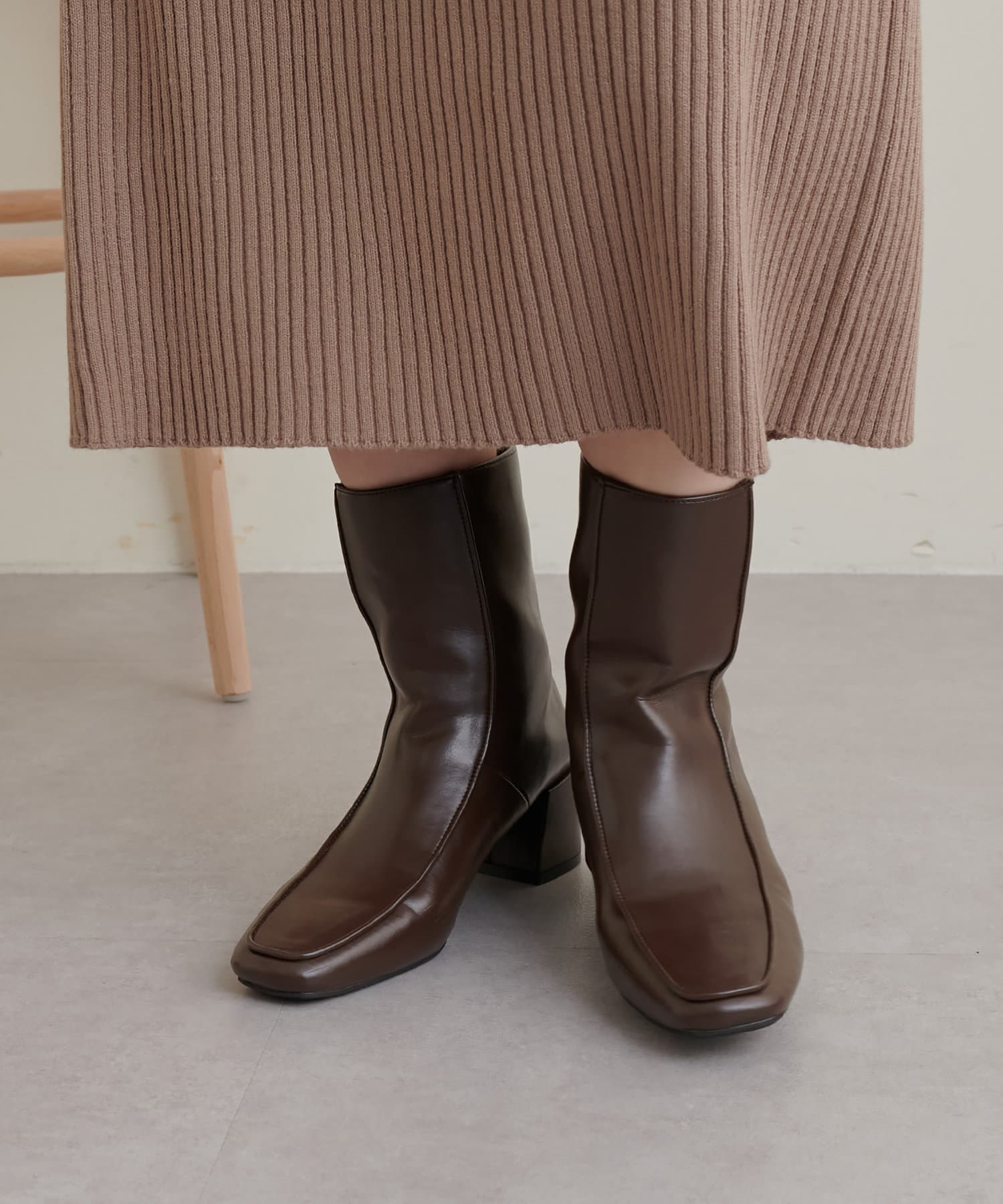 クラシカルなスクエアトゥ、程よい筒丈が今年らしいブーツ。