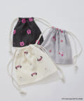 オーガンジーにオリジナル総柄刺繍を施した巾着です。
