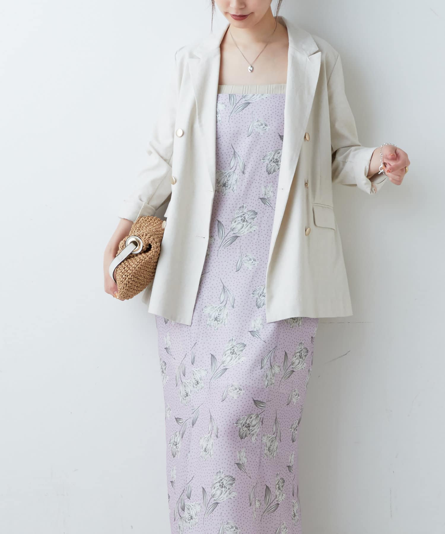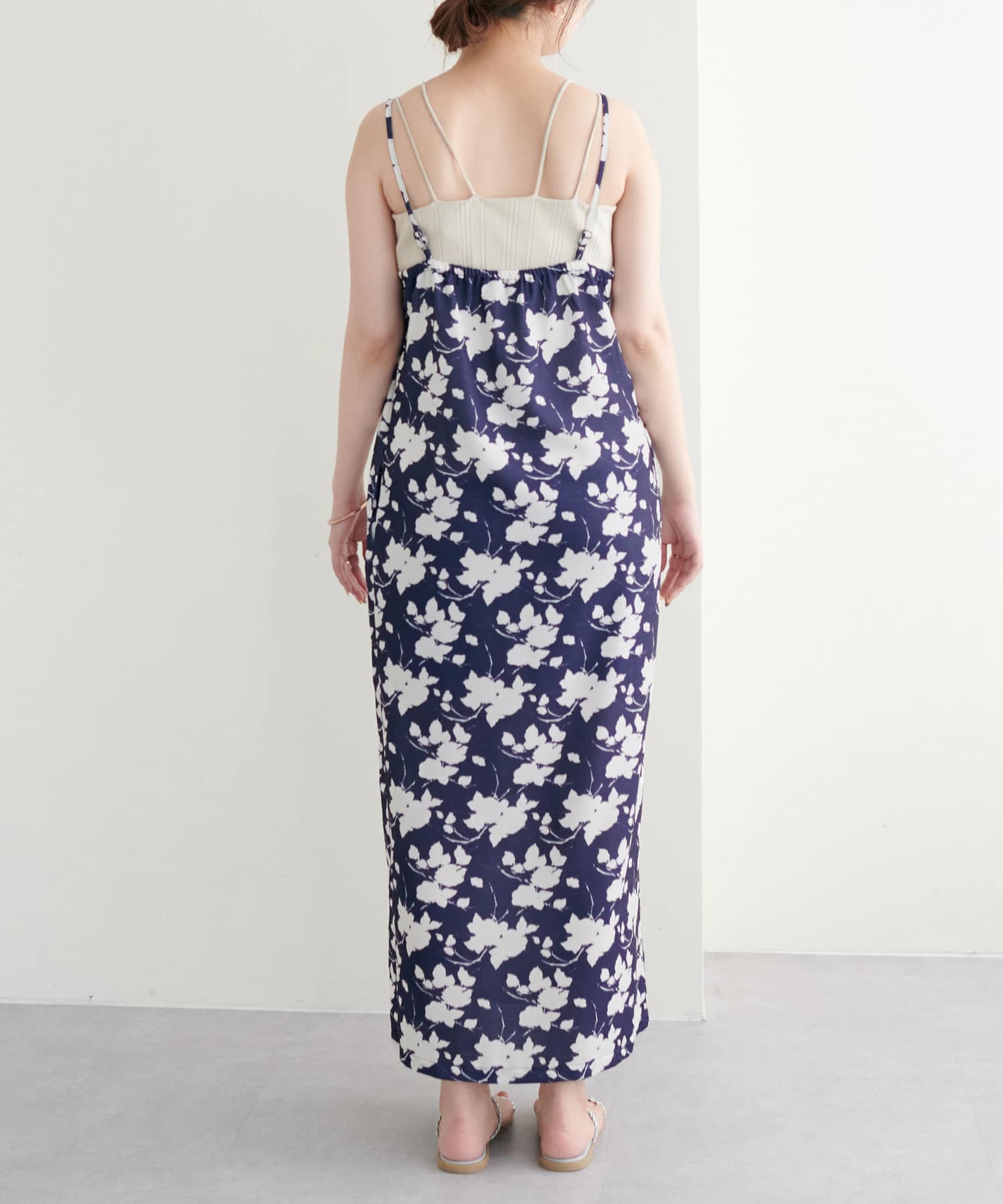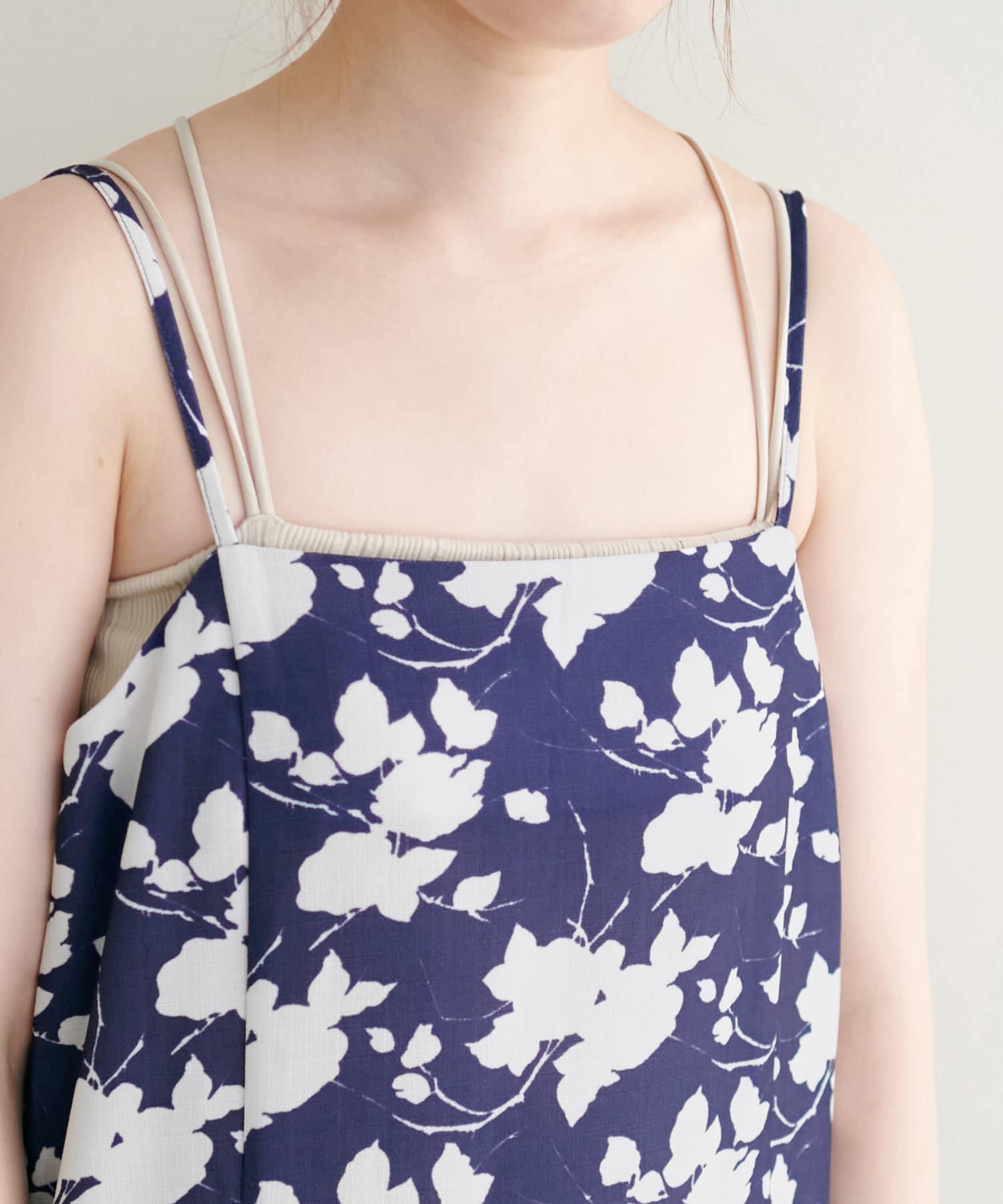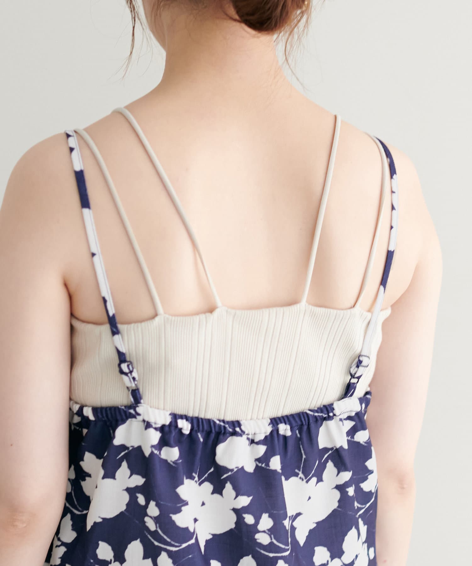 キャミワンピースの肩紐は、アジャスターで調整できるので身長に合わせて丈を替えられます◎