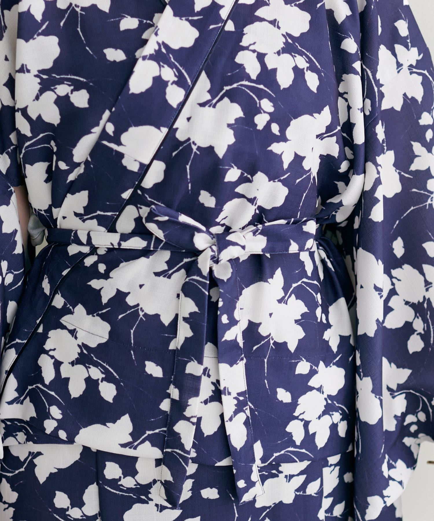 浴衣の羽織りは、一人でも簡単に着られるように甚平のような紐がウエストあたりについており、