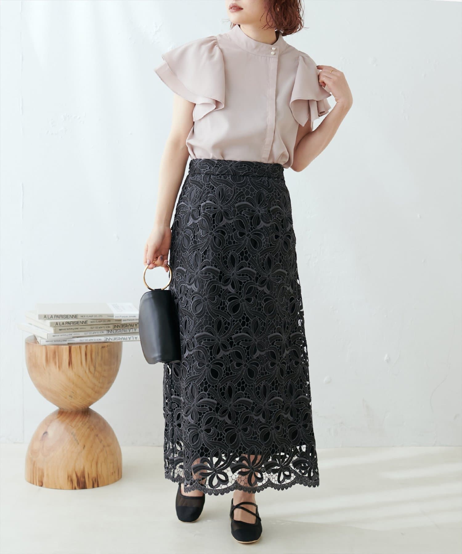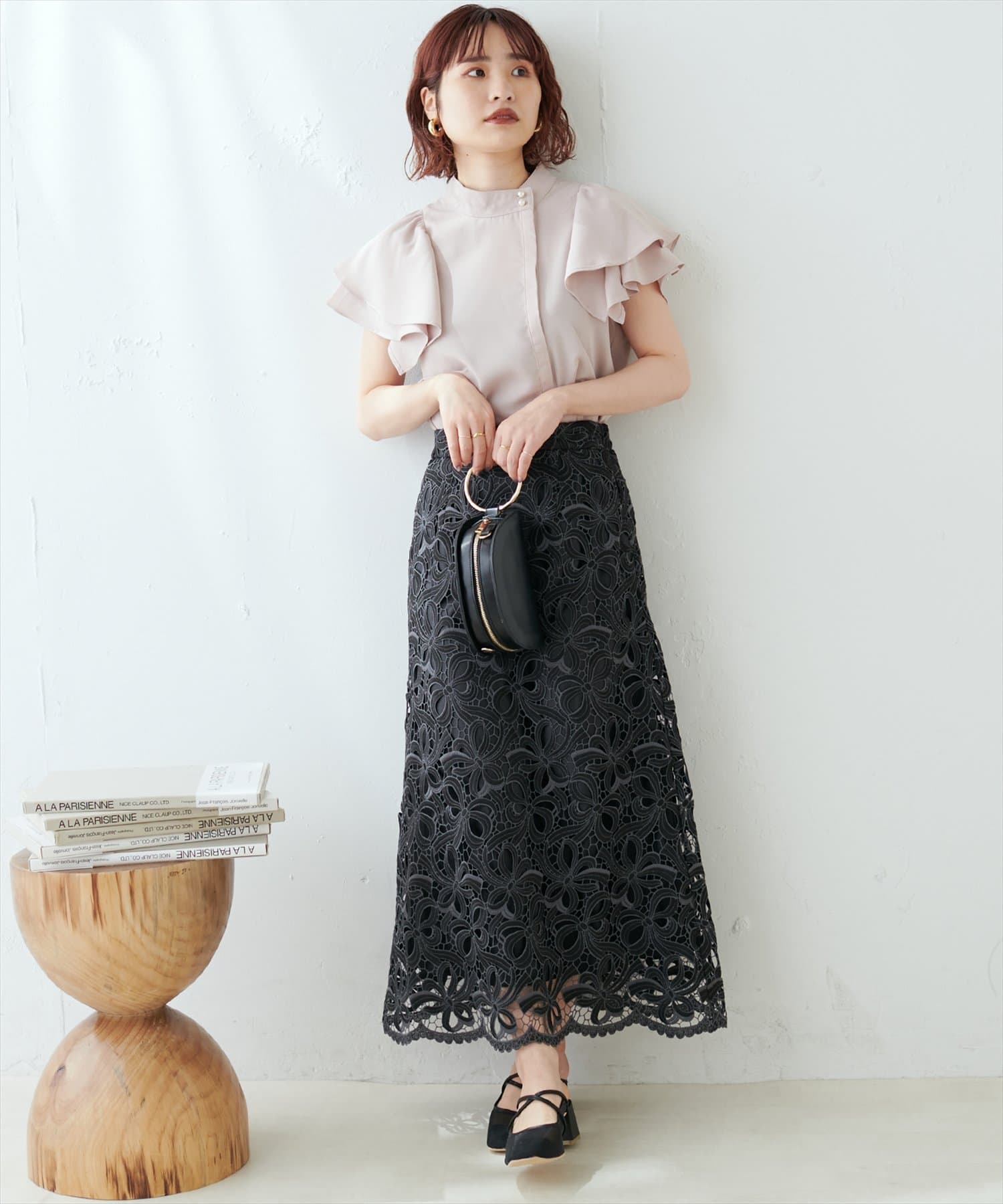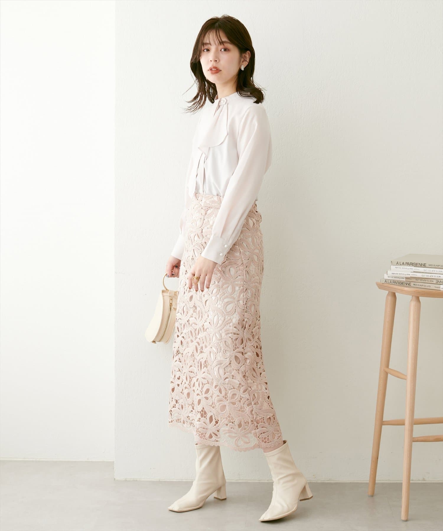 トップスをウエストインして頂くと上品ですっきりとしたスタイリングに仕上がります。