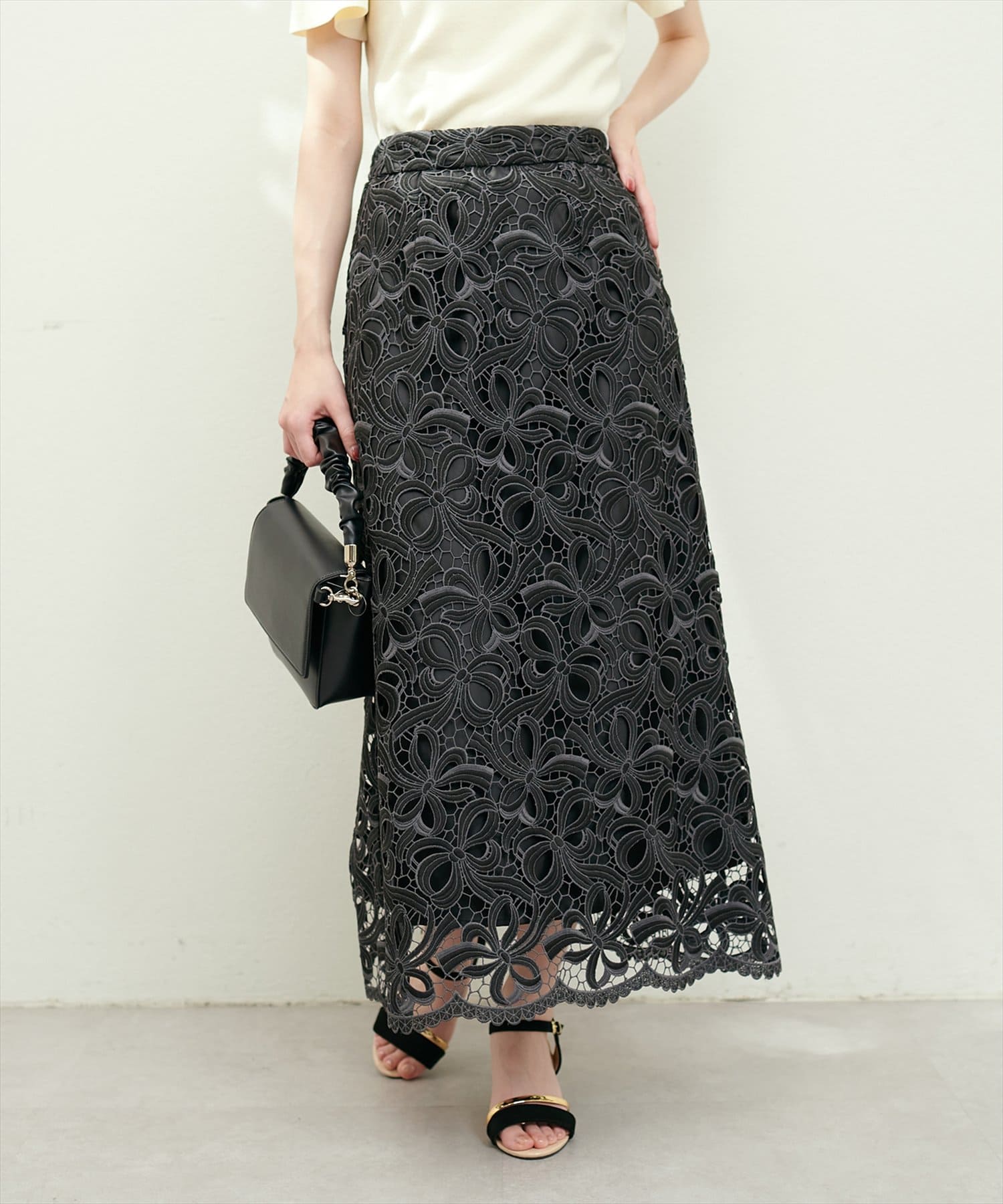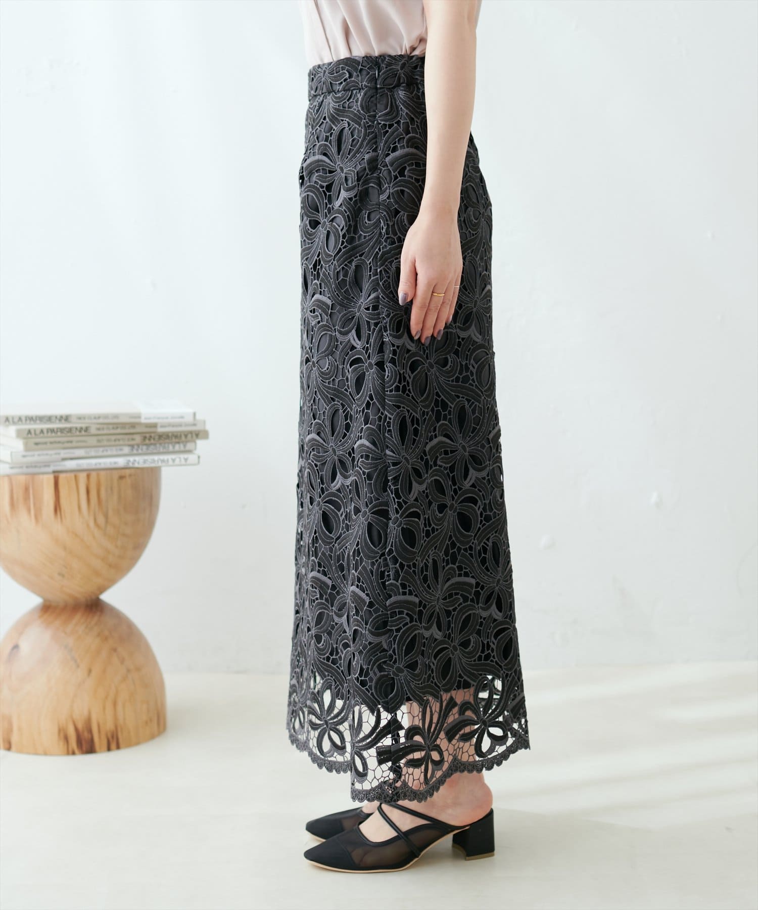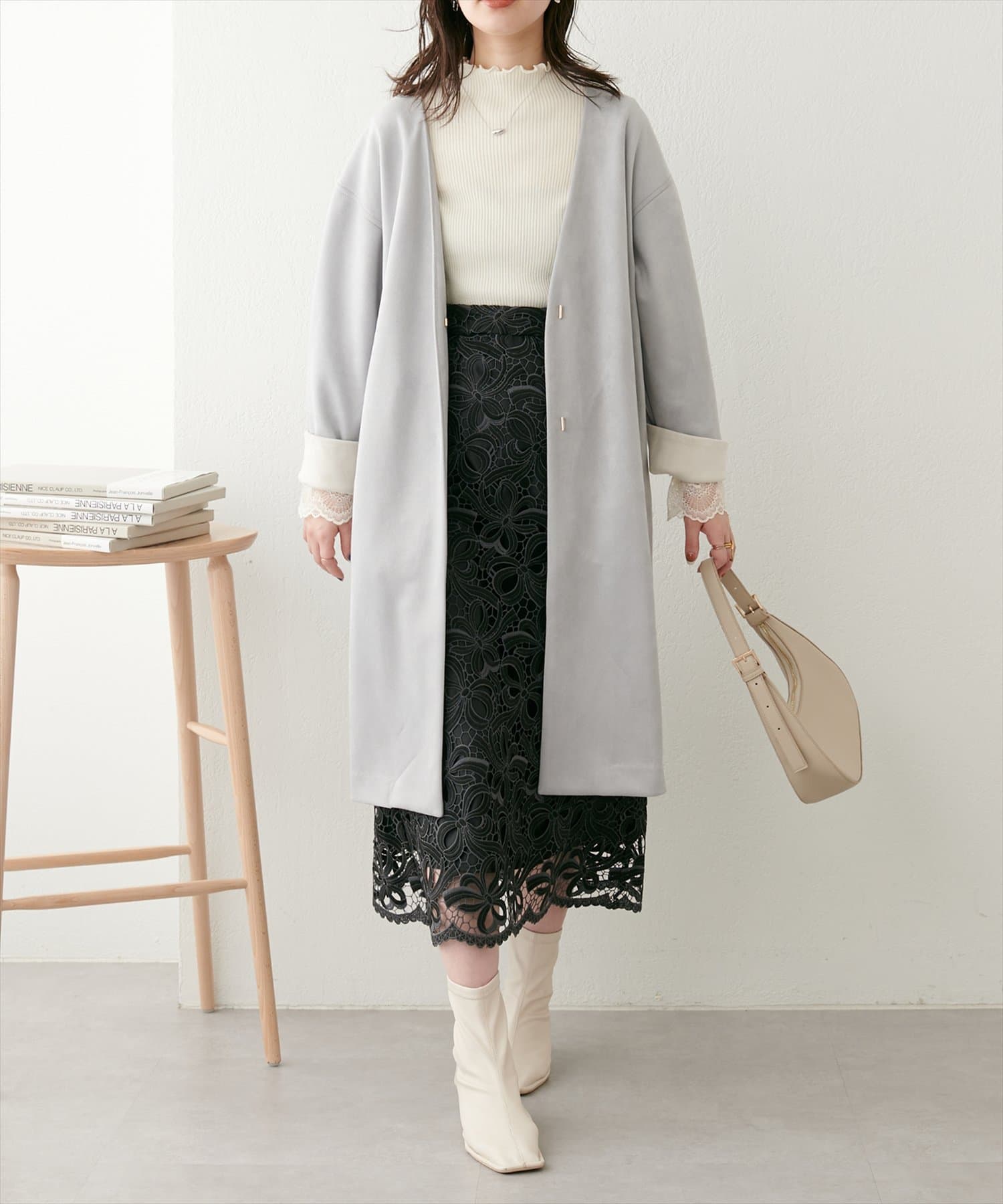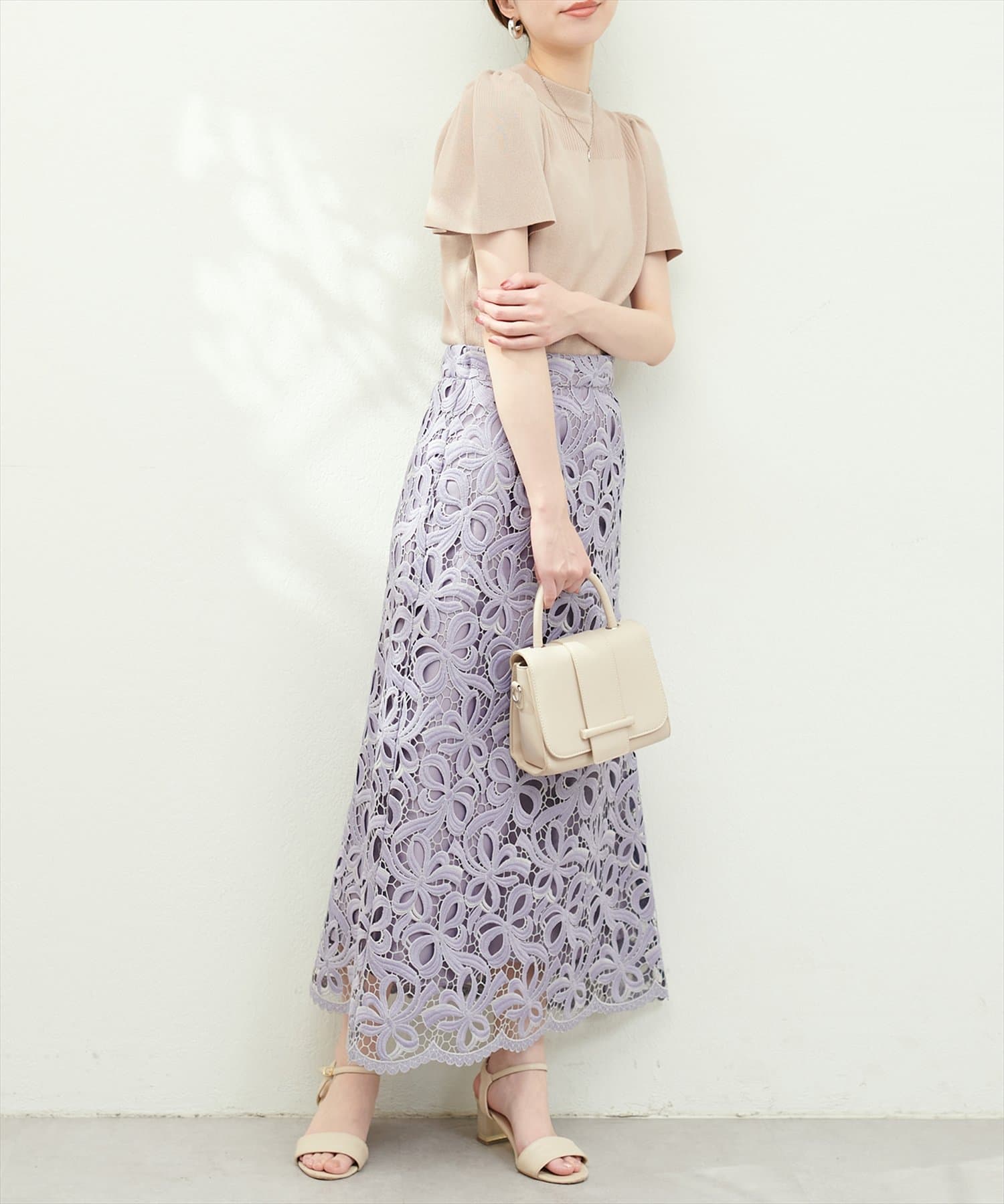 トップスをウエストインして頂くと上品ですっきりとしたスタイリングに仕上がります。