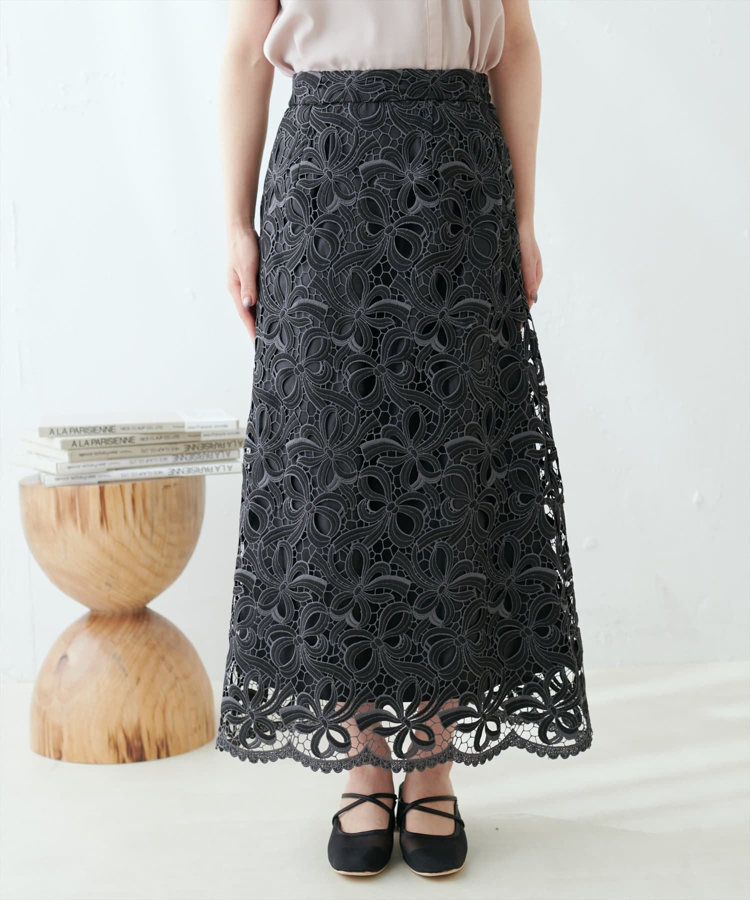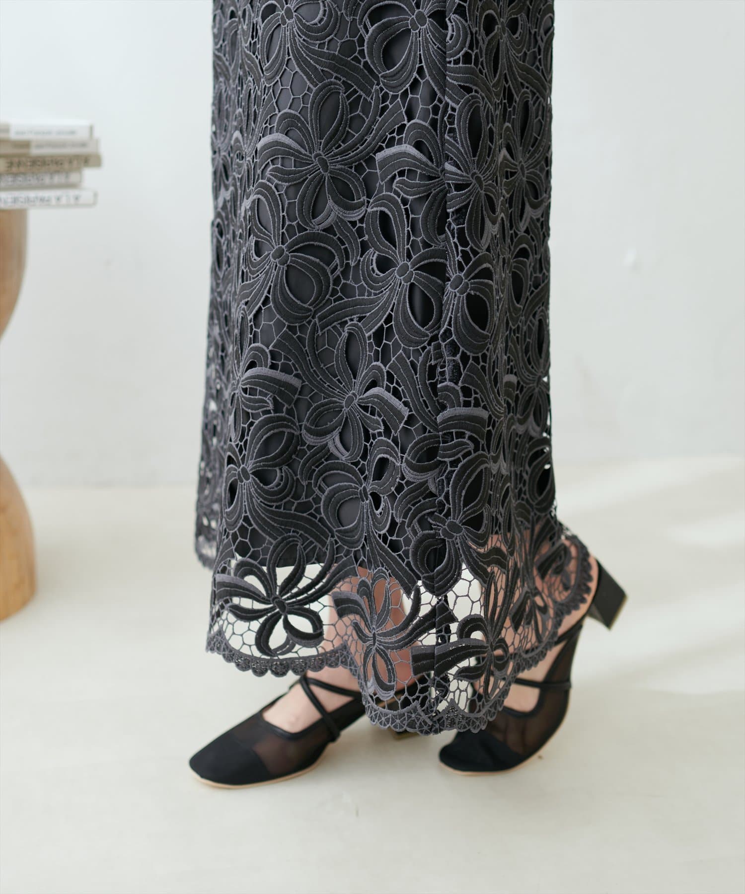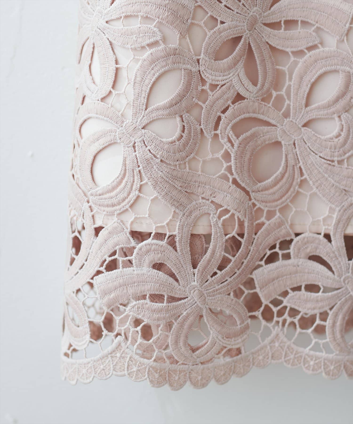 厚みのあるしっかりとした生地感でリボンのレースと配色が高級感ある一枚に。