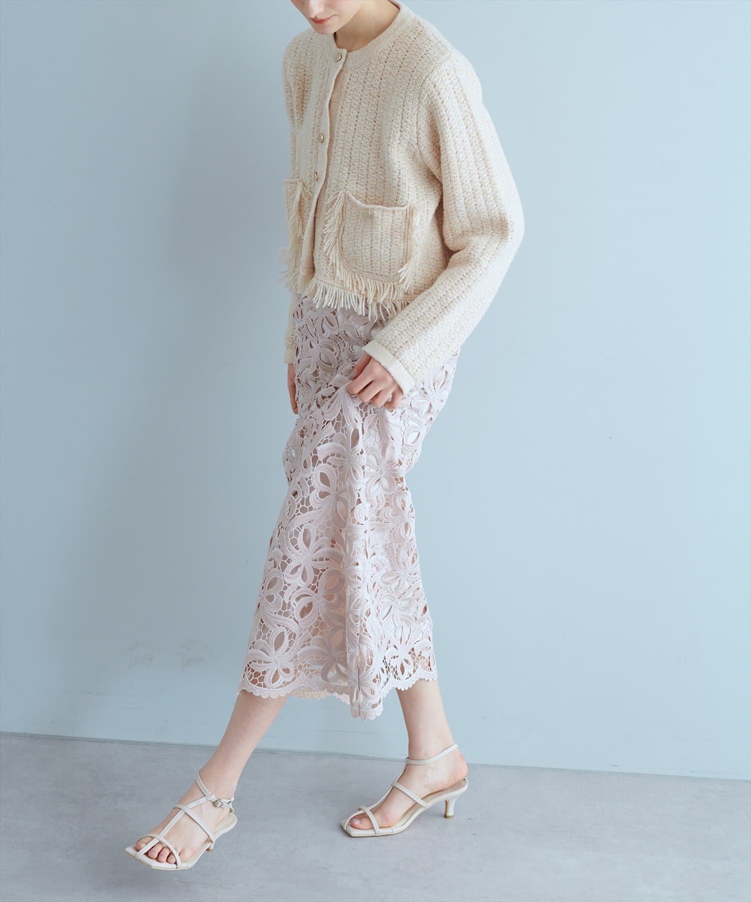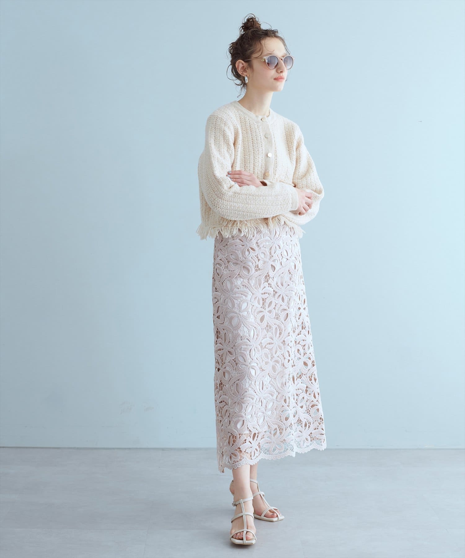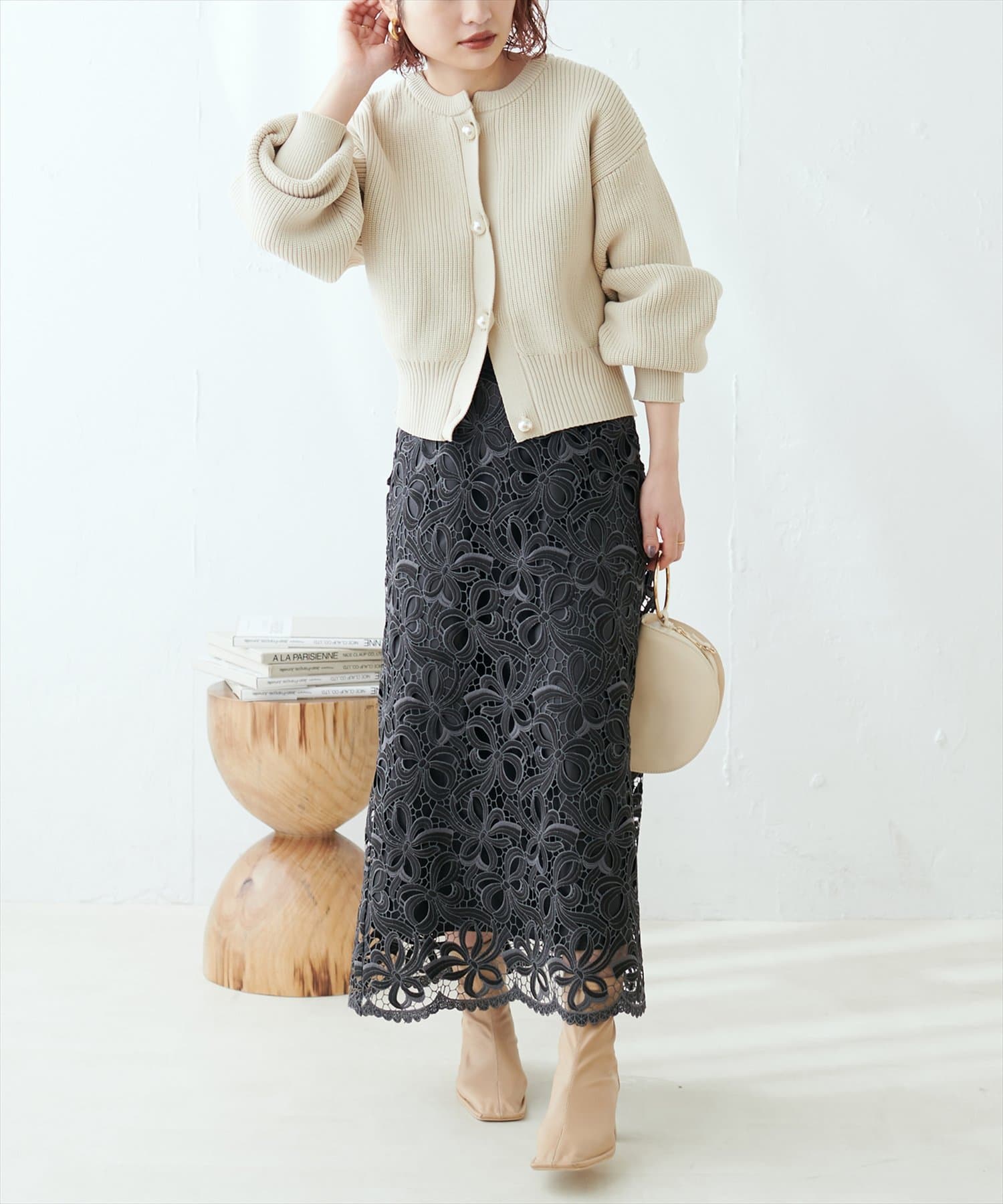 秋冬はゆるっとしたニットをウエストアウトで合わせても、女性らしい柔らかな印象になります◎