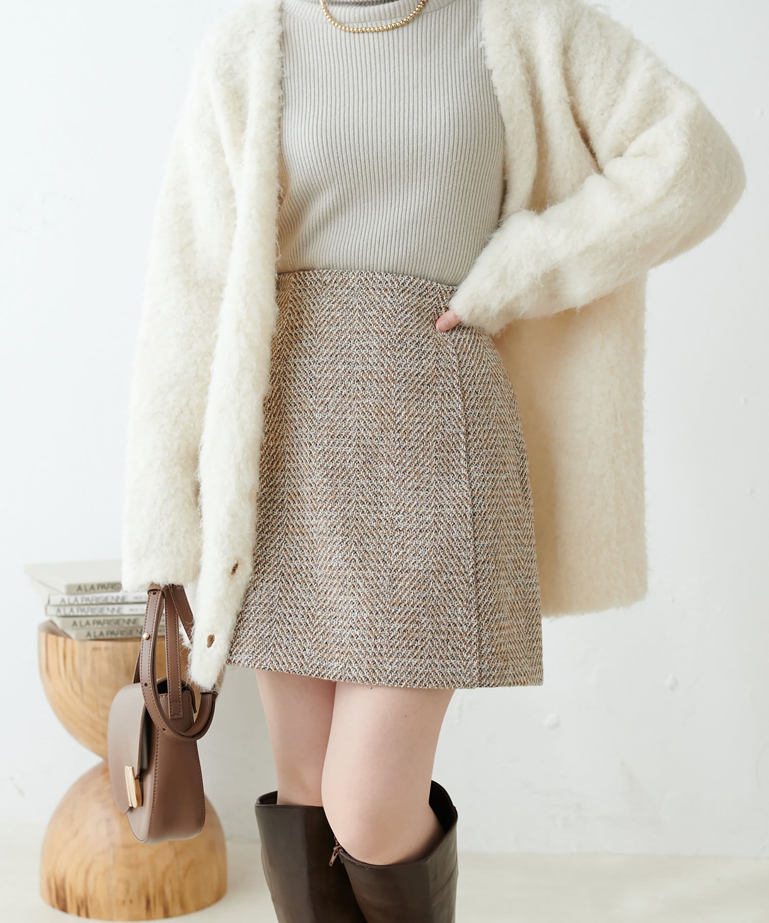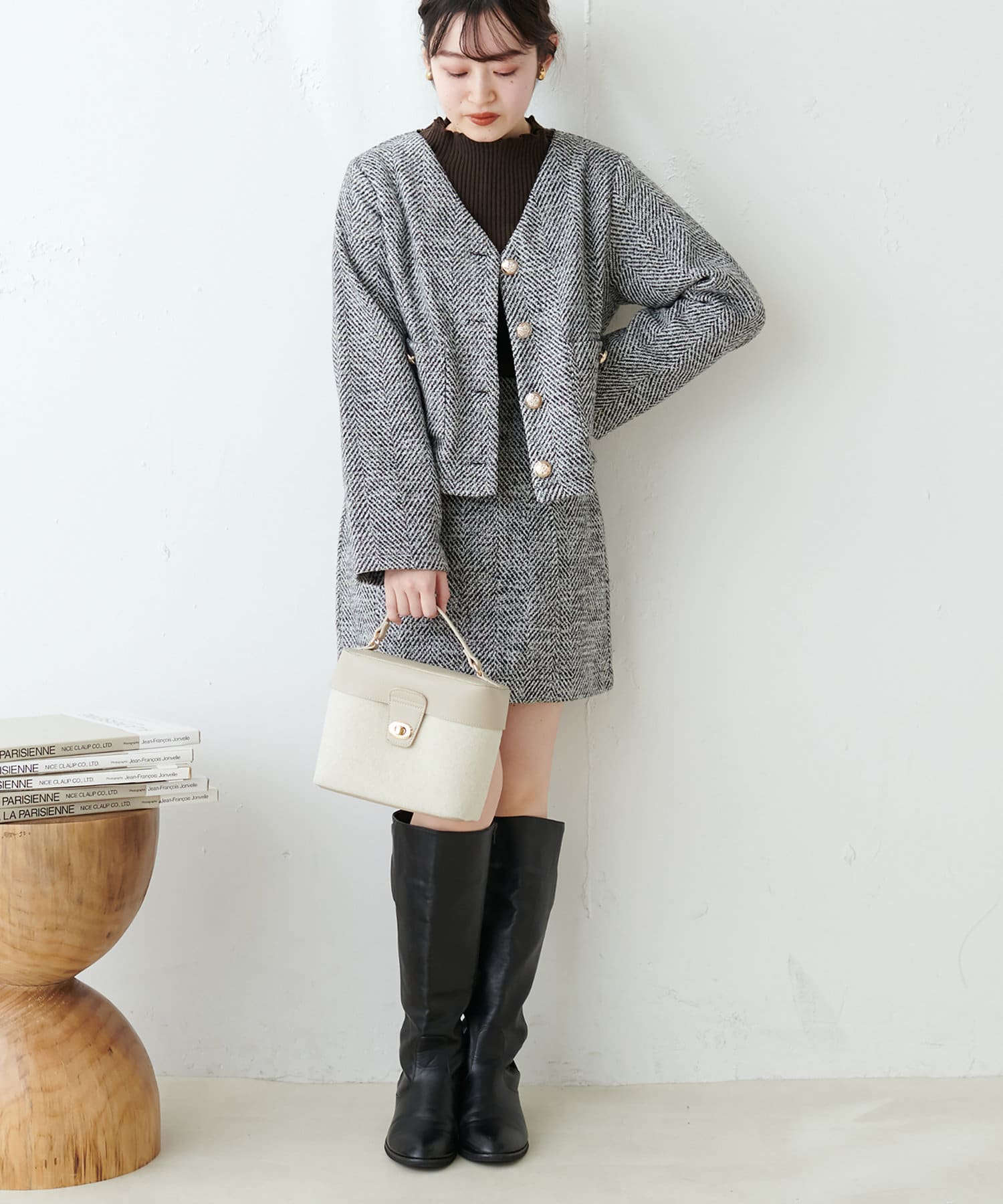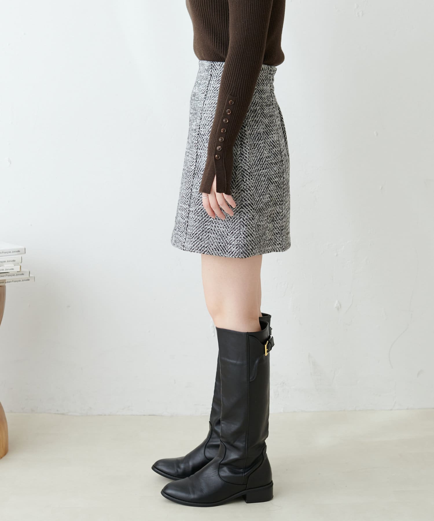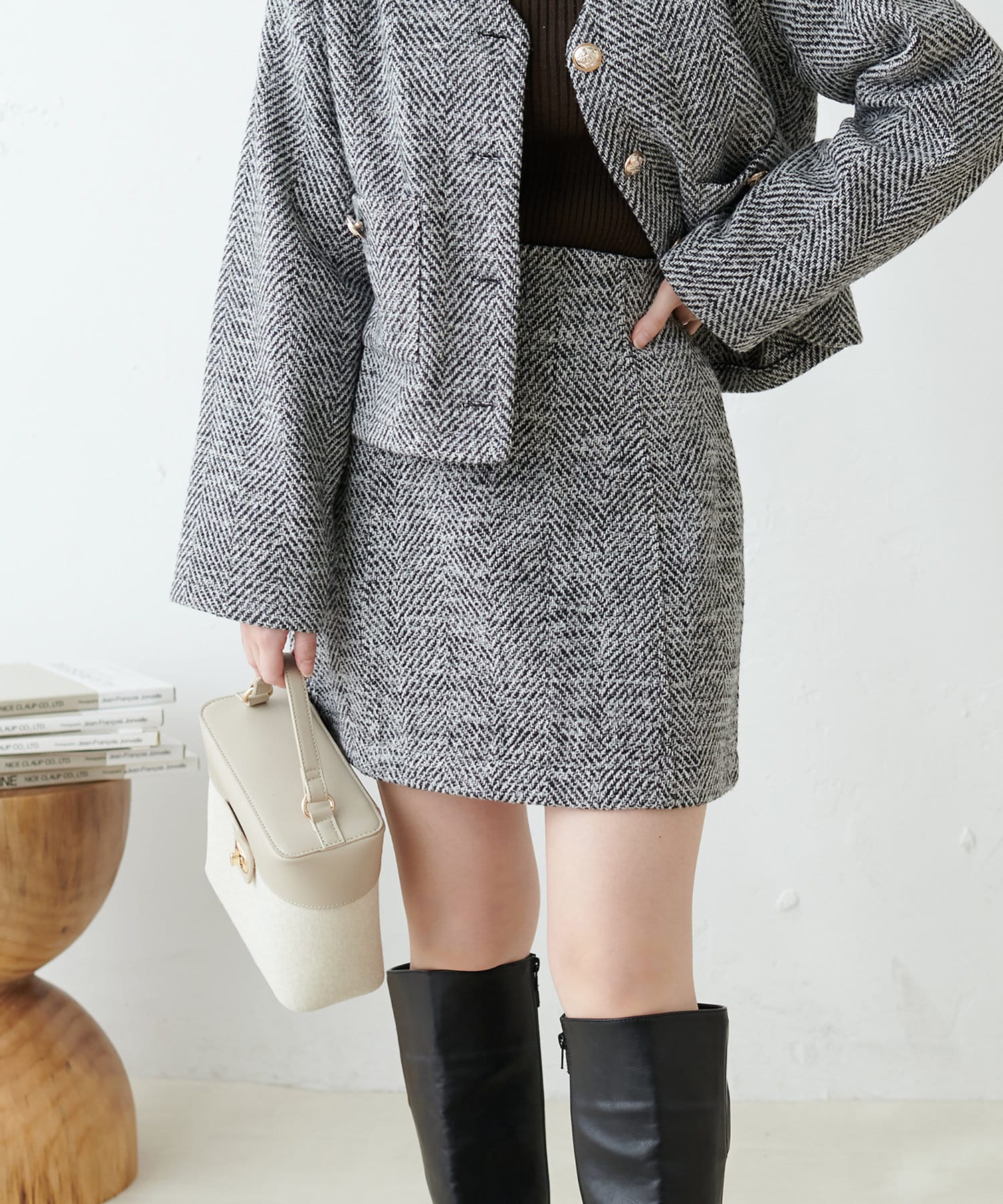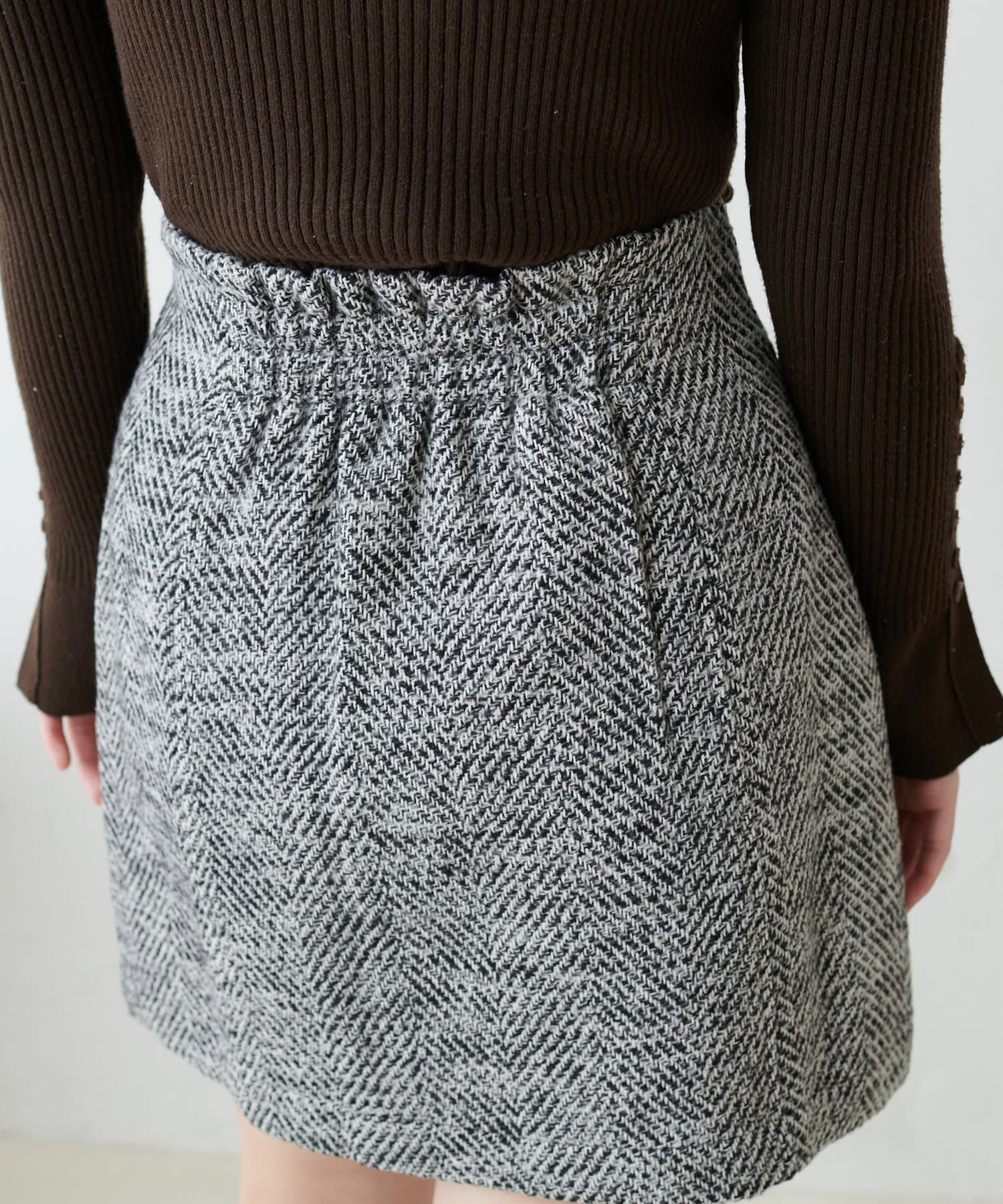 プチナチュ/セットアップ対応 ヘリンボーンツィードミニスカート