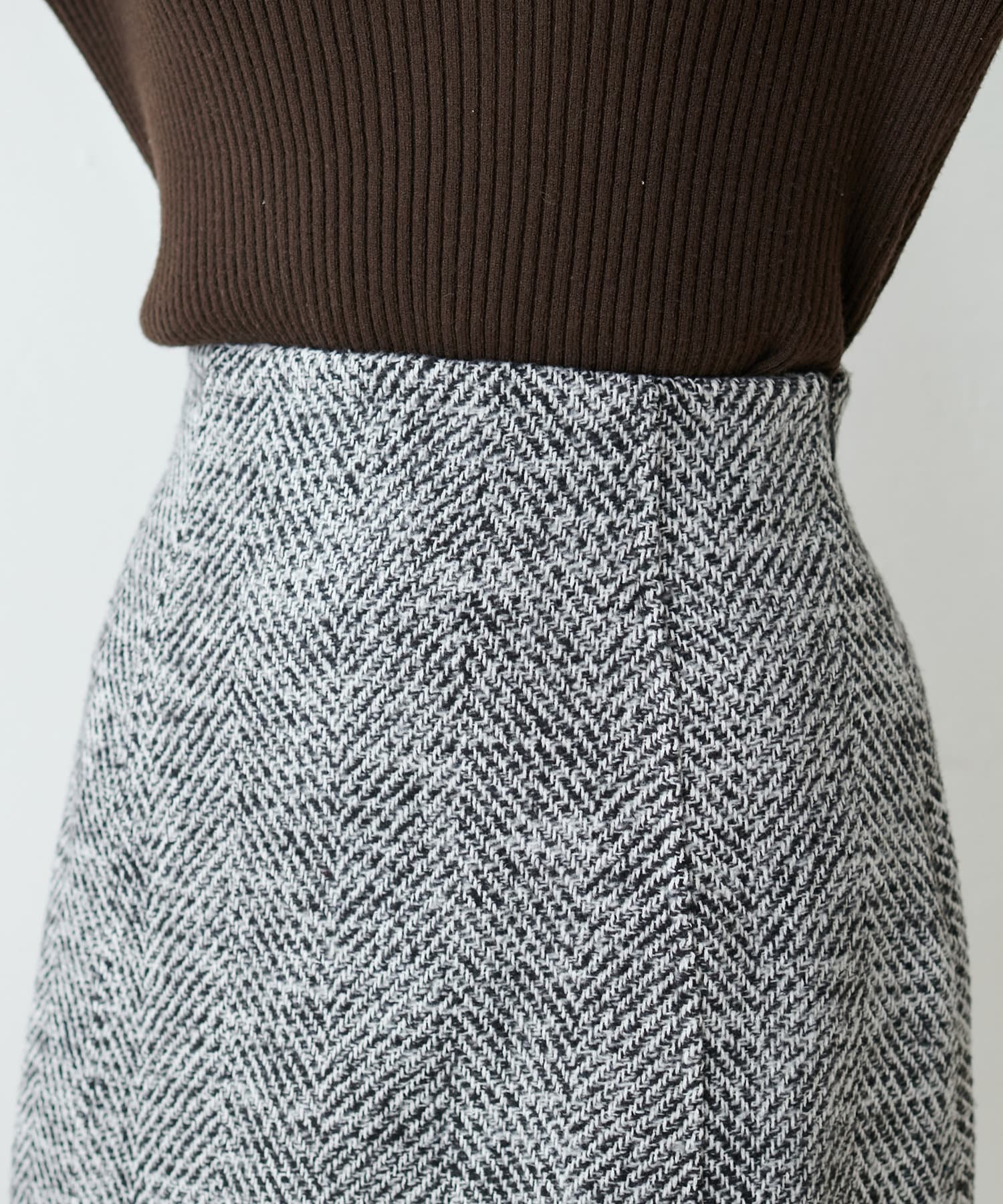 0331010080 ヘリンボーンツイードナロースカート