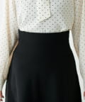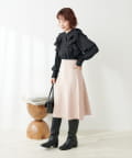 フィット感のあるウエストからふわりと広がる裾がシンプルなシルエットながら立体感のある表情を加えます。