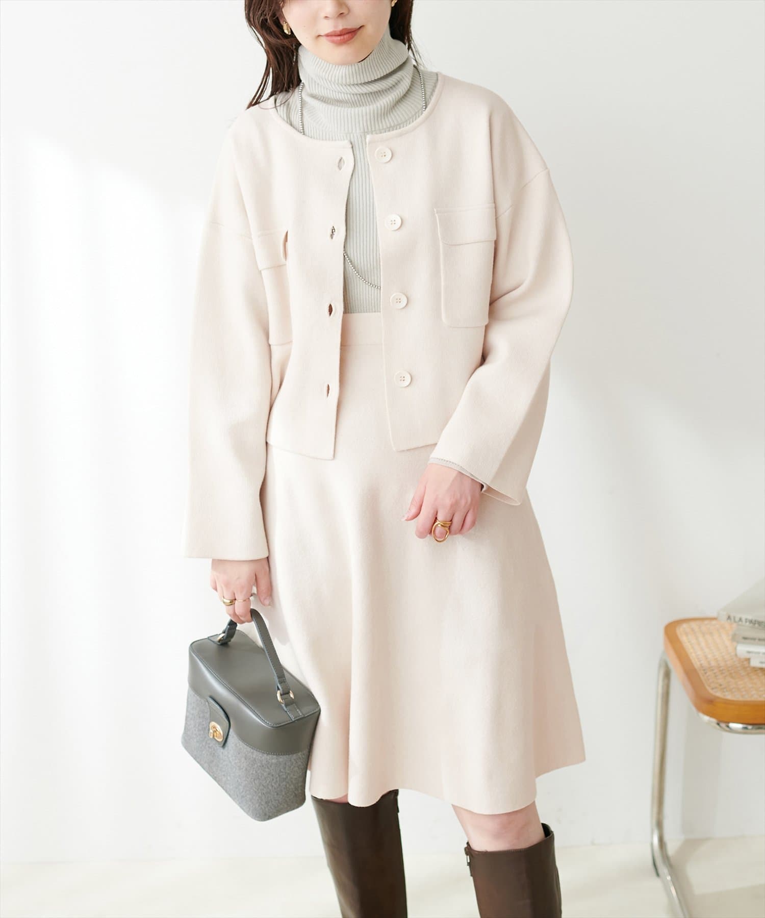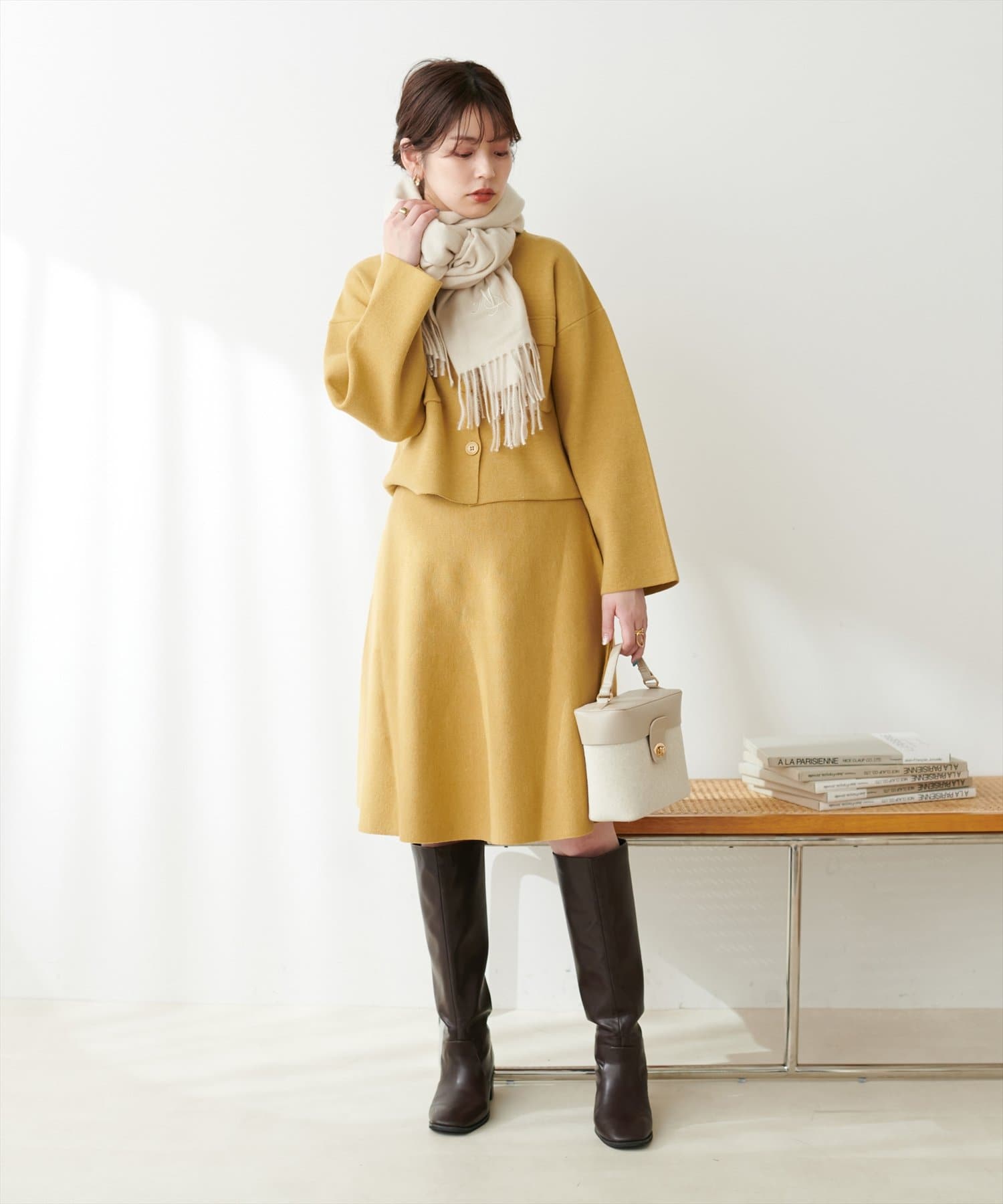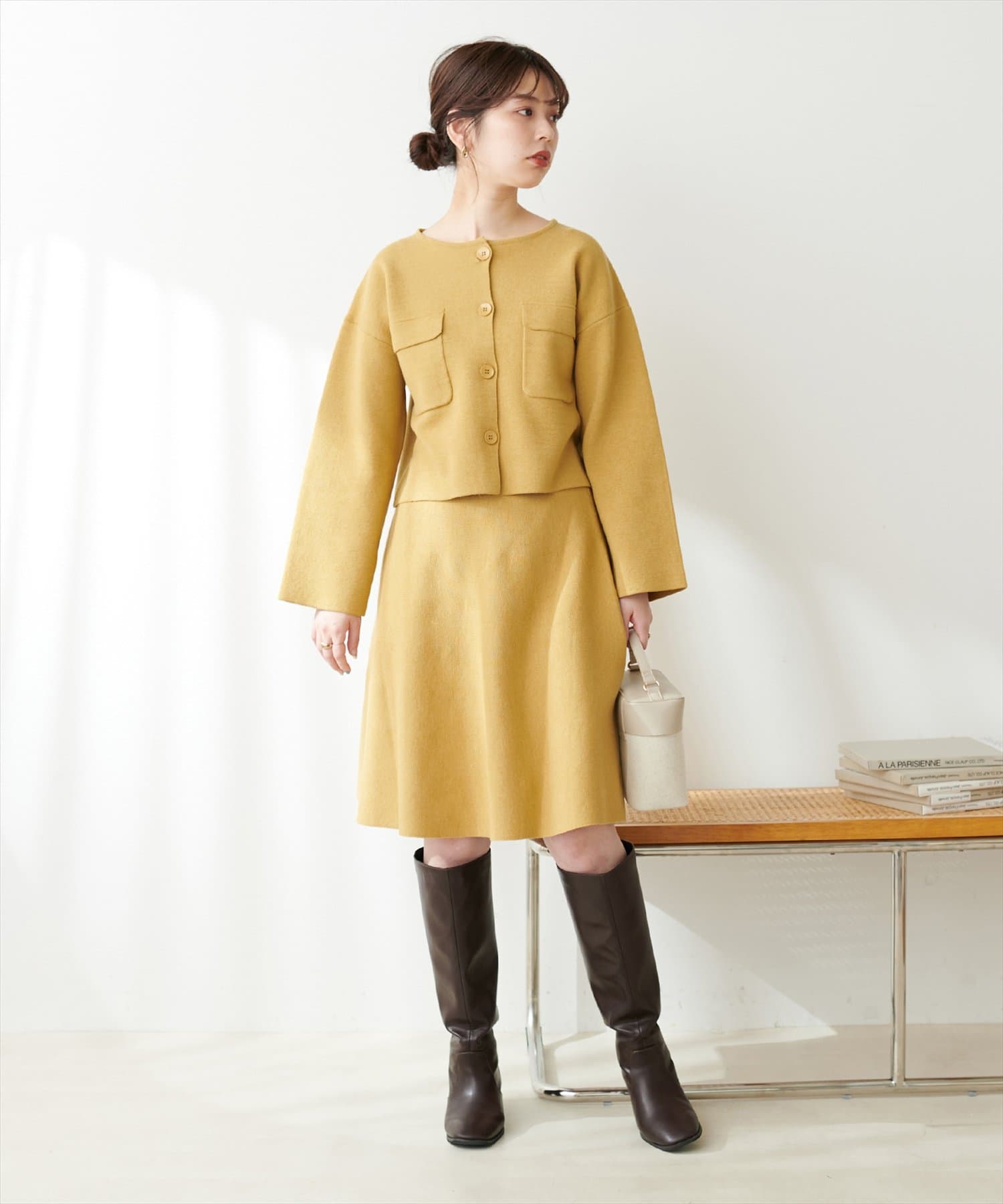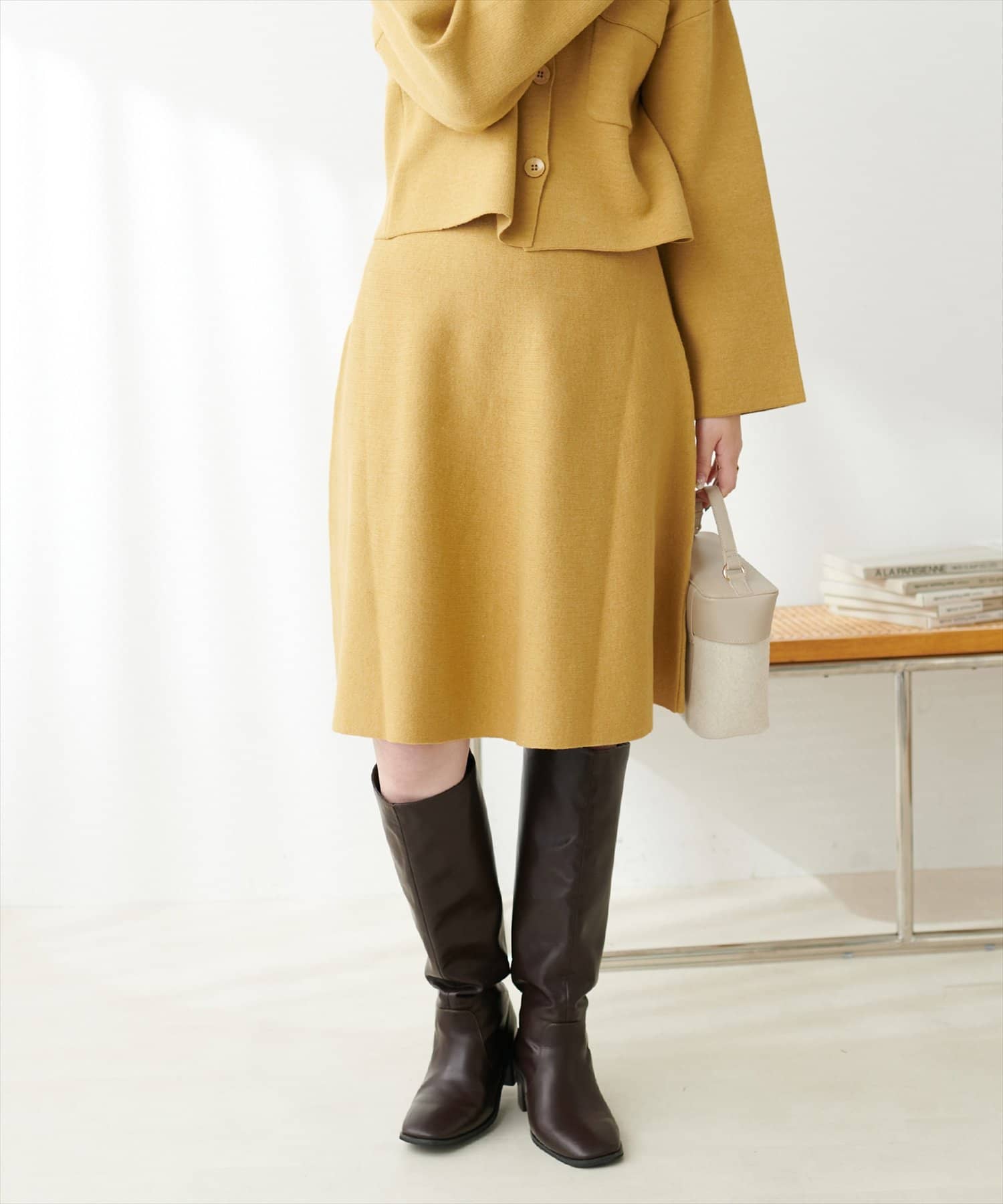 • natural couture(ナチュラルクチュール) 【セットアップ可能】ニットフレアミディスカート
