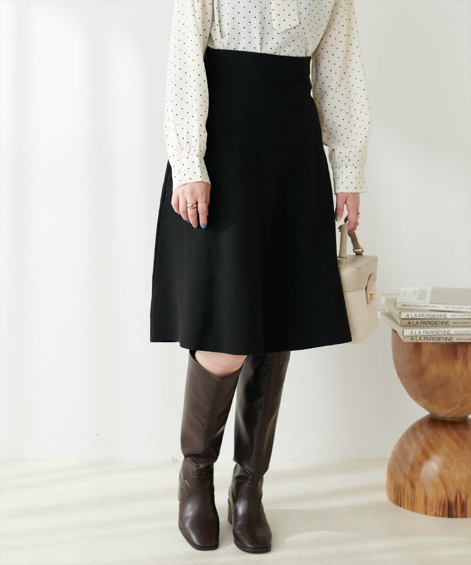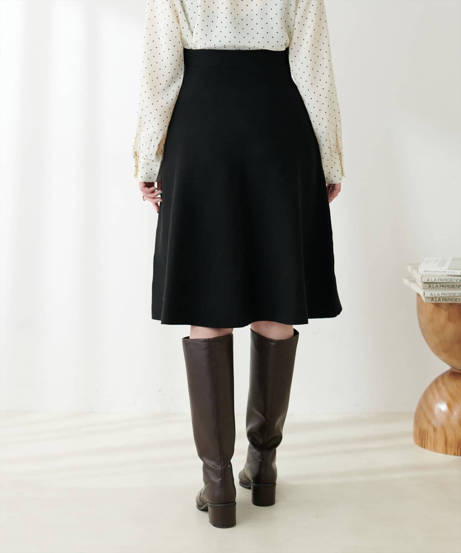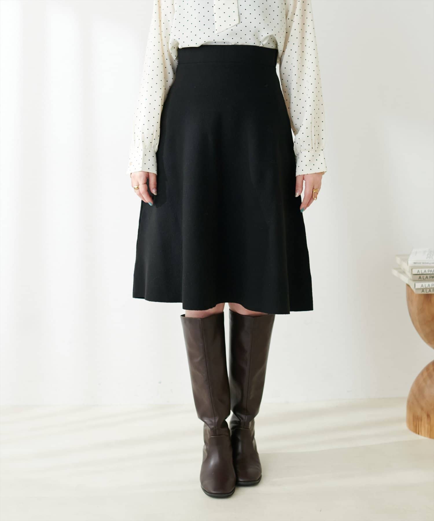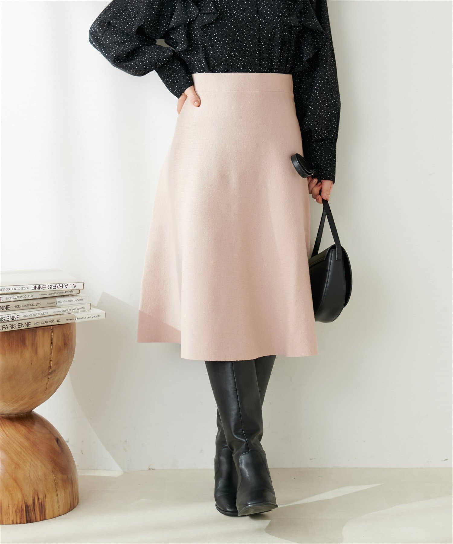 揺れ感が可愛いフレアシルエットのミディ丈ニットスカート