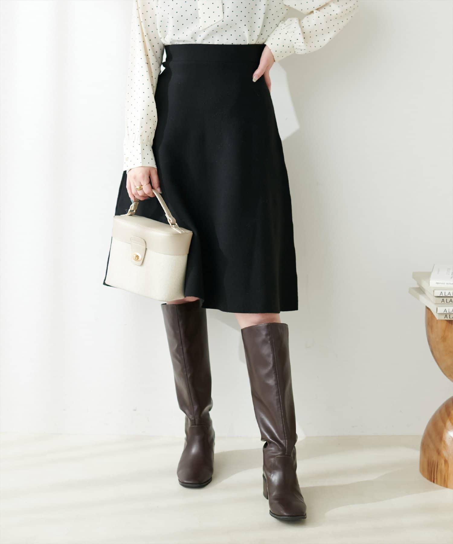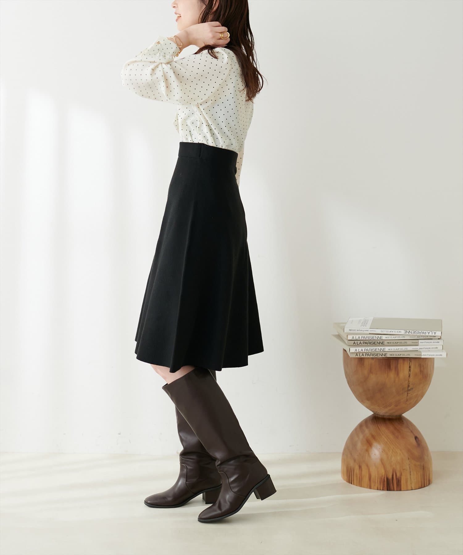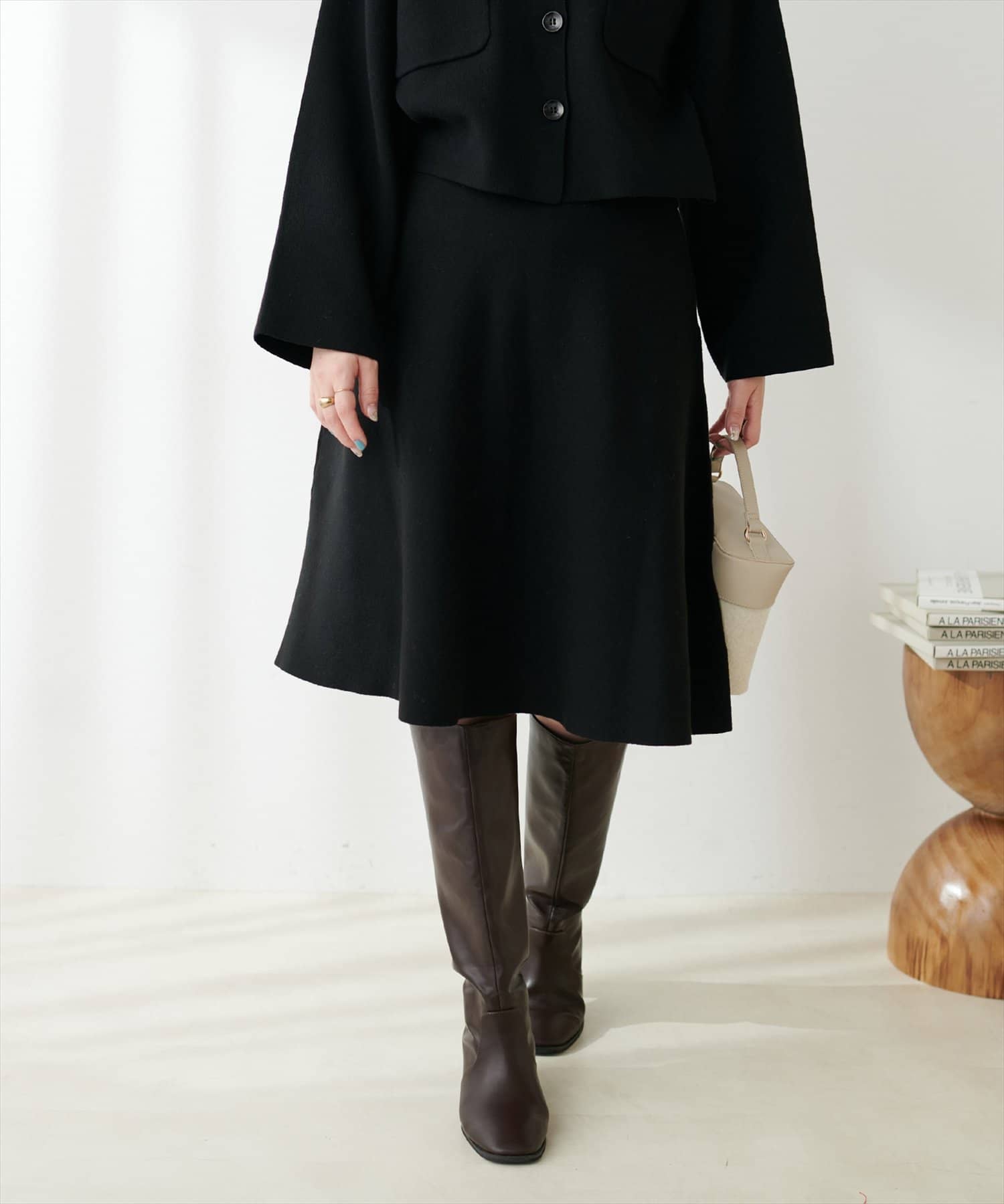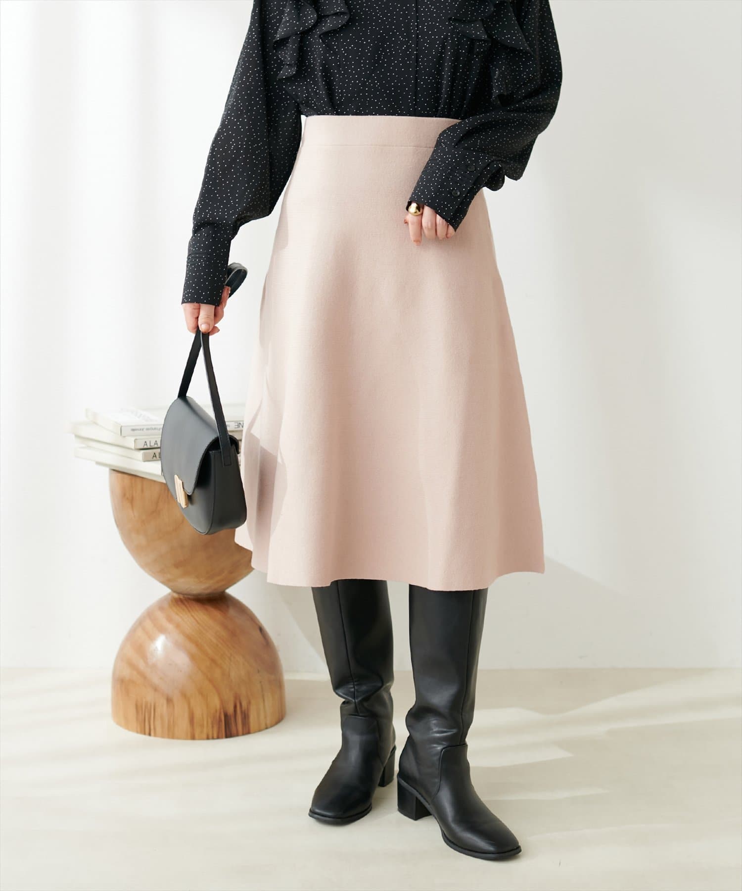 揺れ感が可愛いフレアシルエットのミディ丈ニットスカート