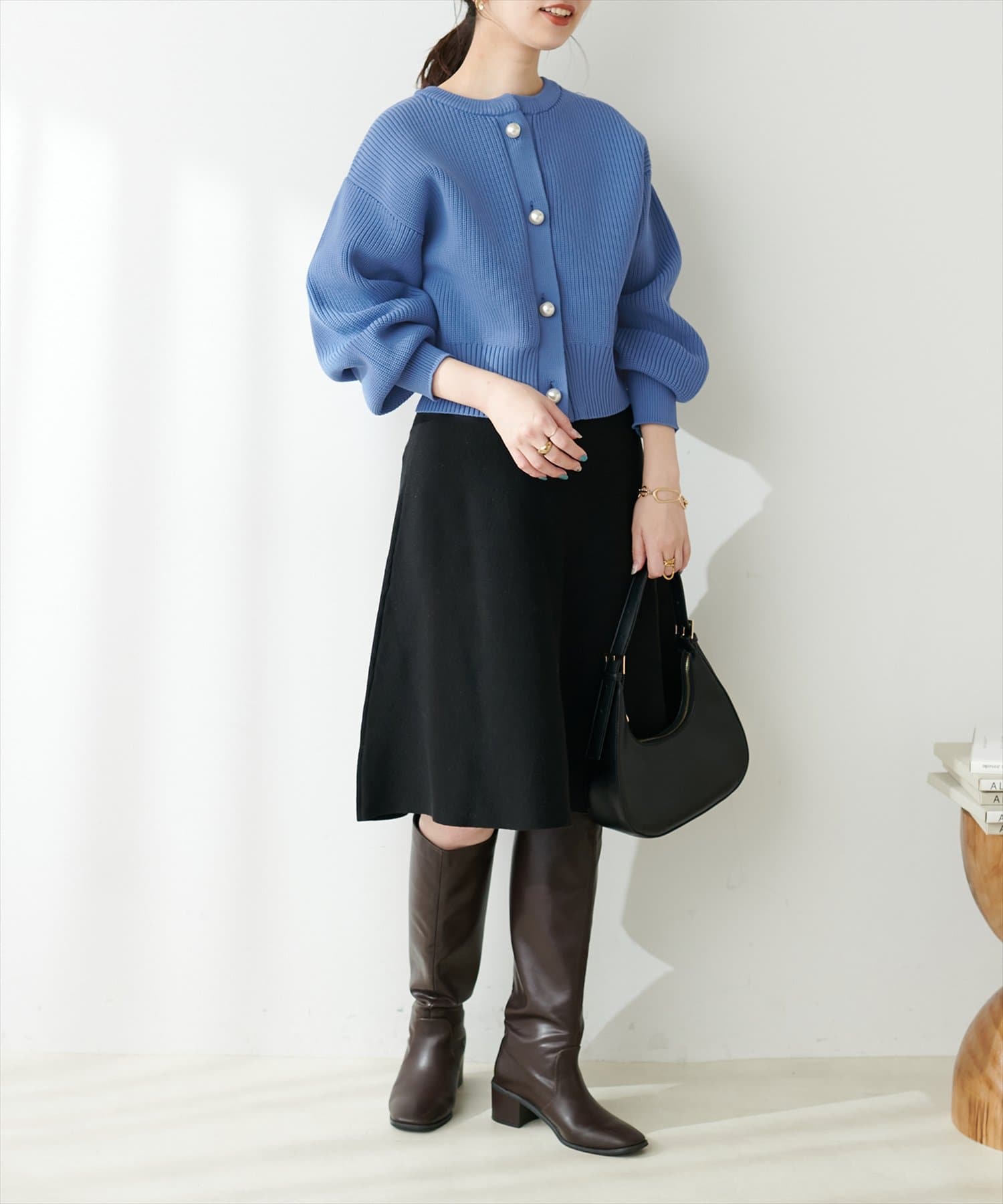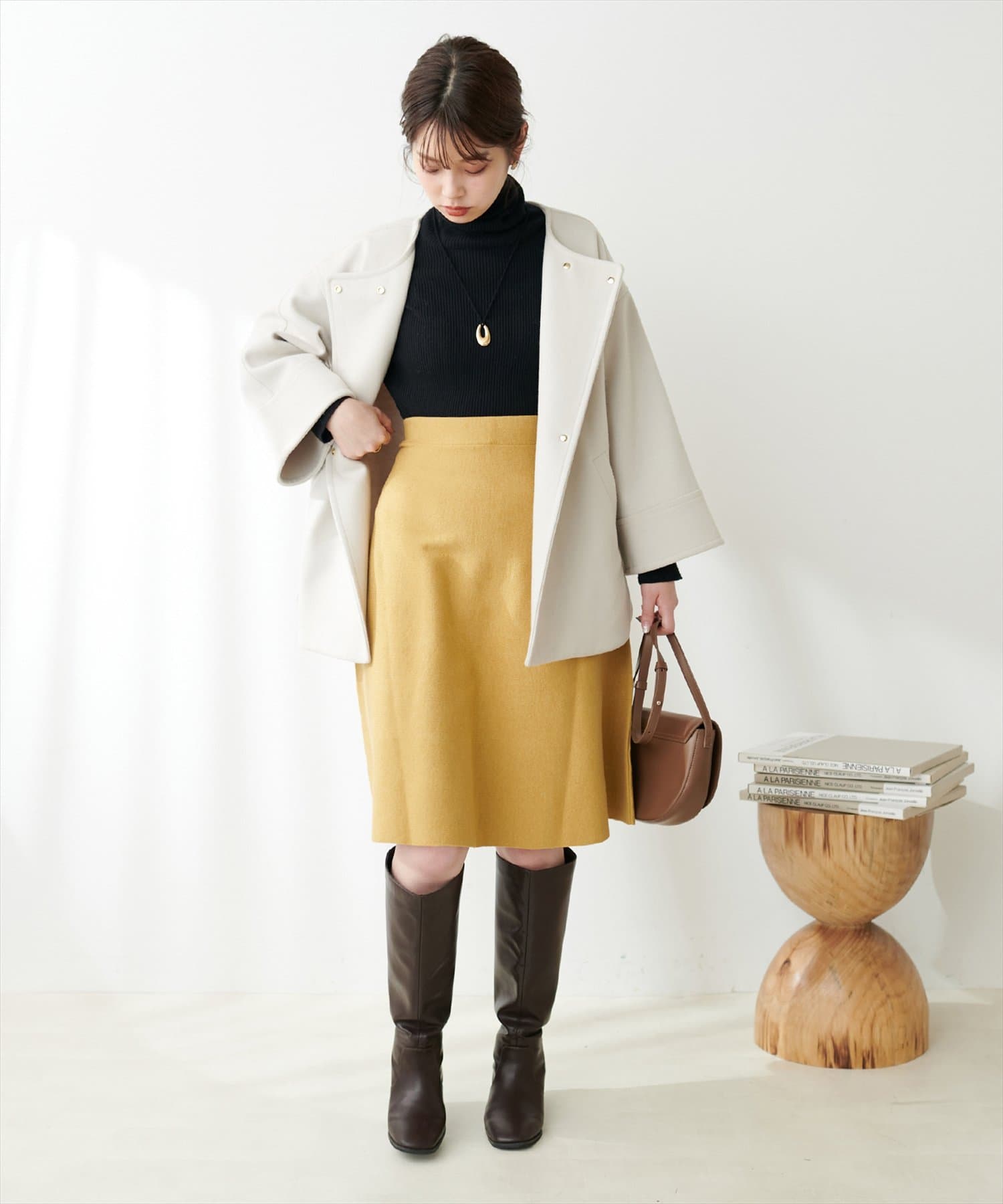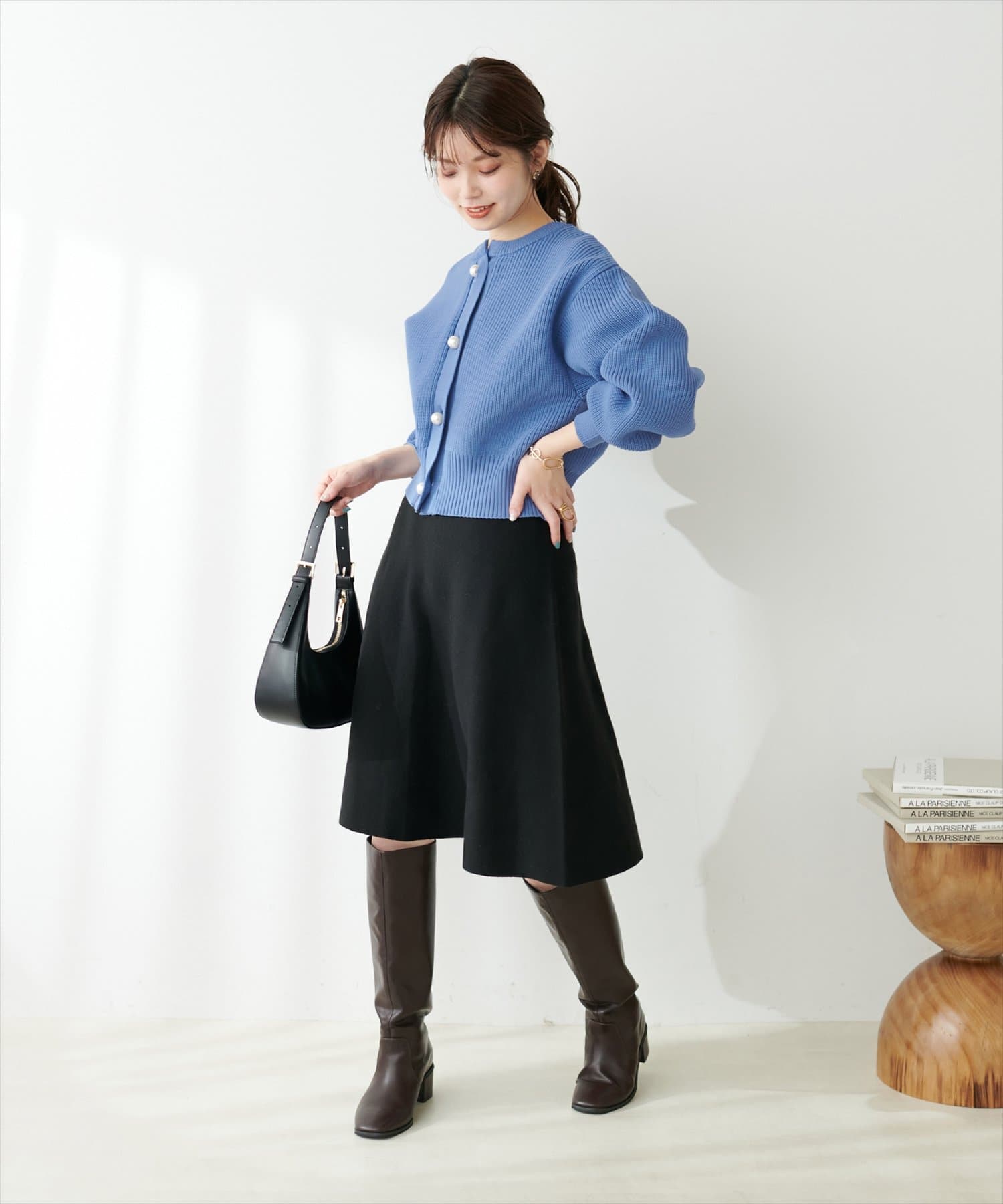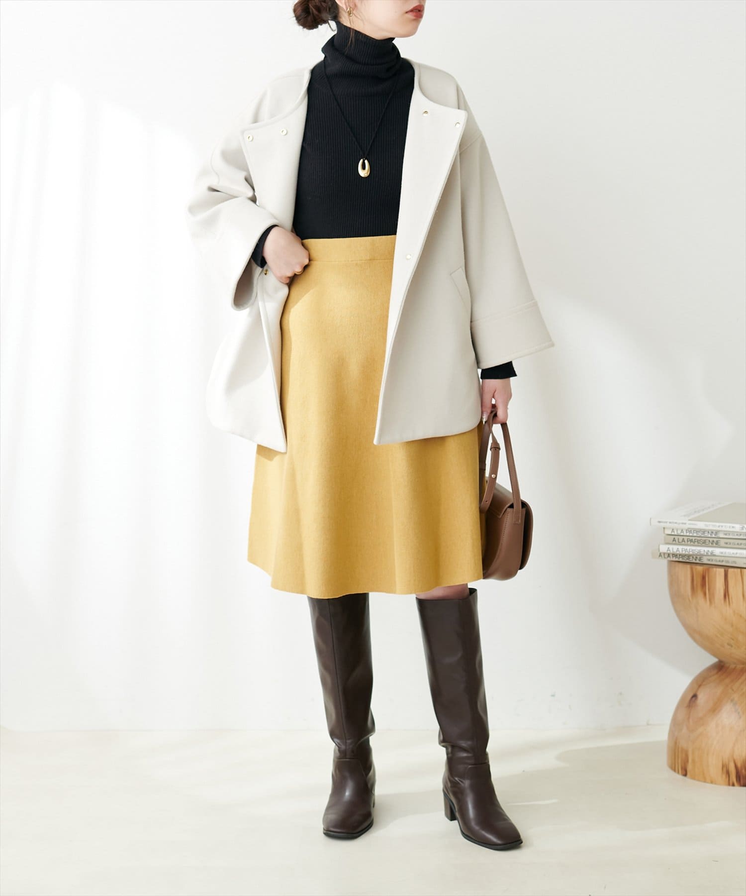 揺れ感が可愛いフレアシルエットのミディ丈ニットスカート