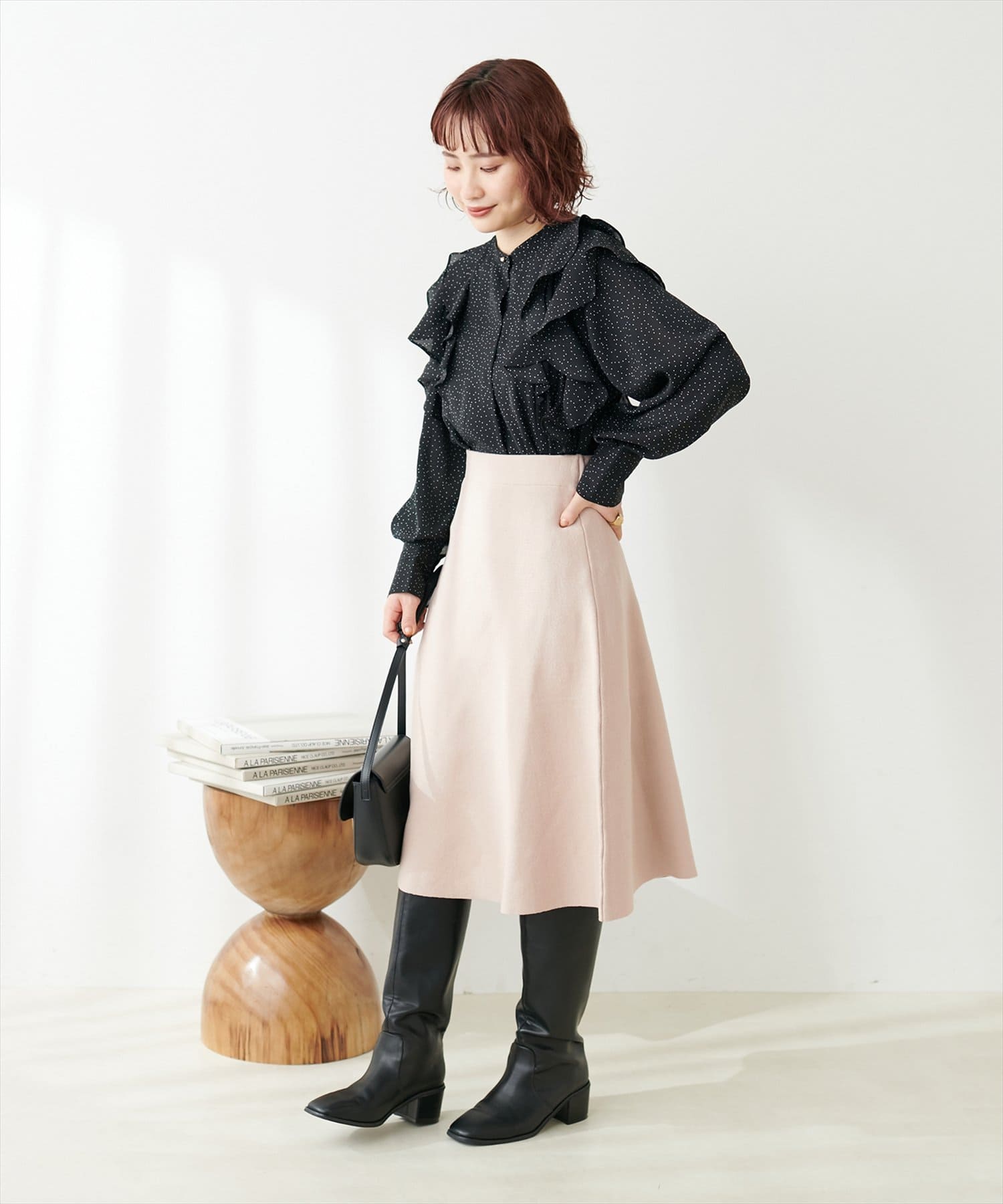 フレアシルエットなので、インスタイルですっきり合わせて頂くのもおすすめです。