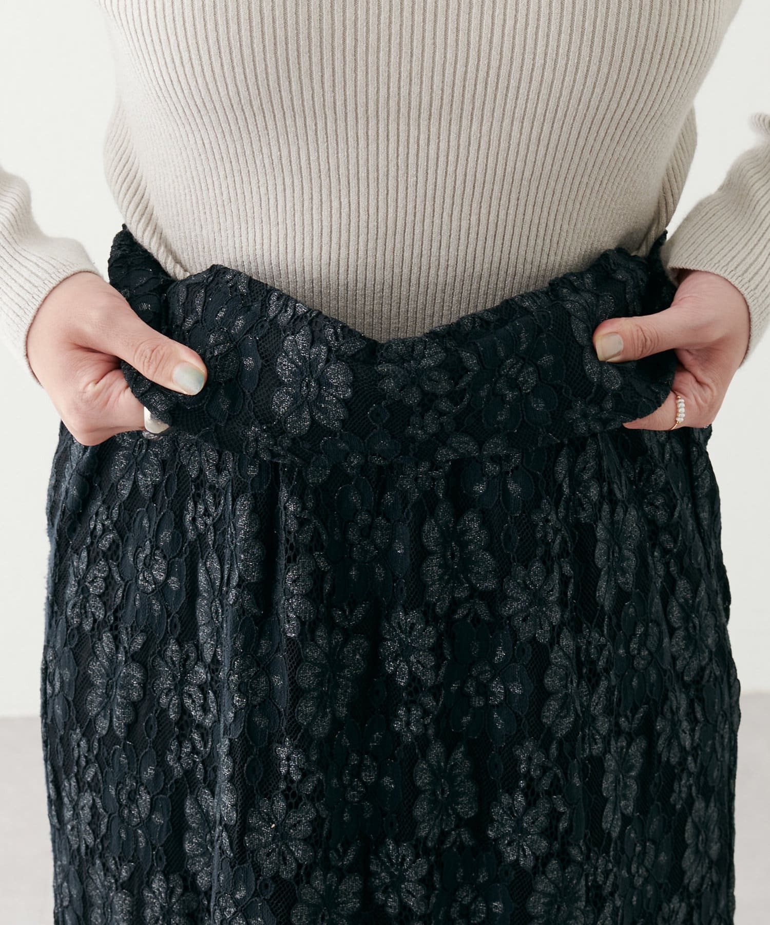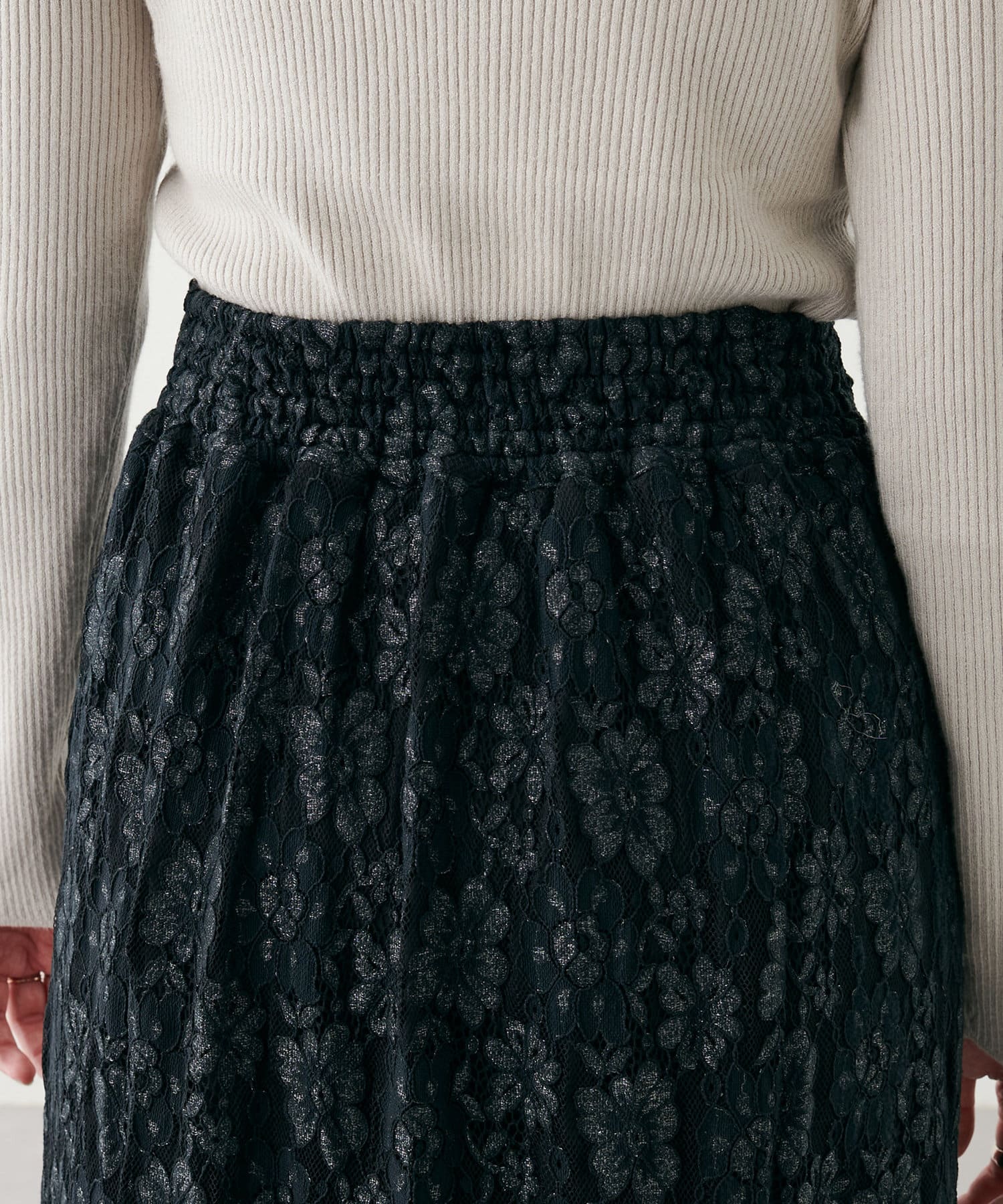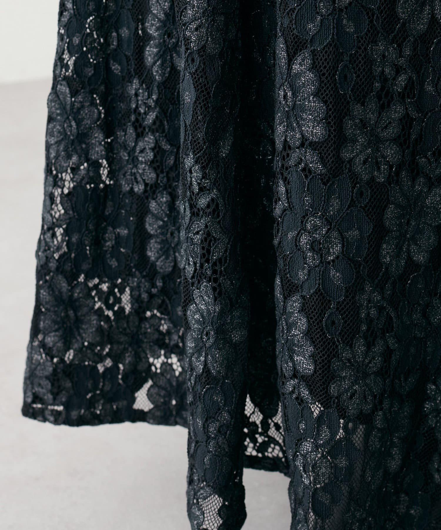 ほんのりラメ感をプラスした上品で、やや大ぶりなフラワーモチーフのレース地を採用。