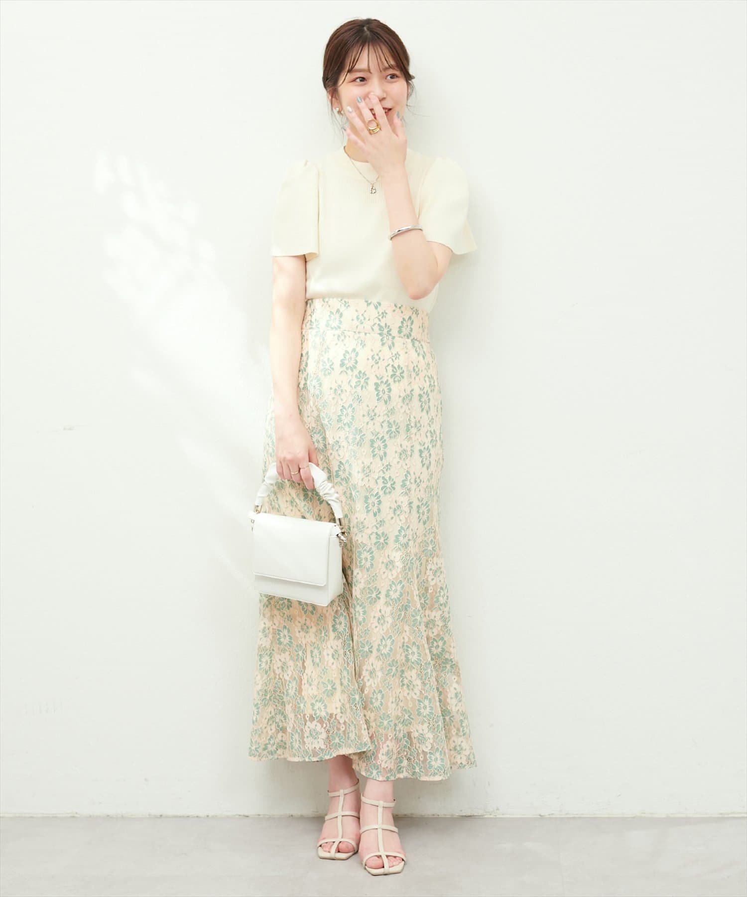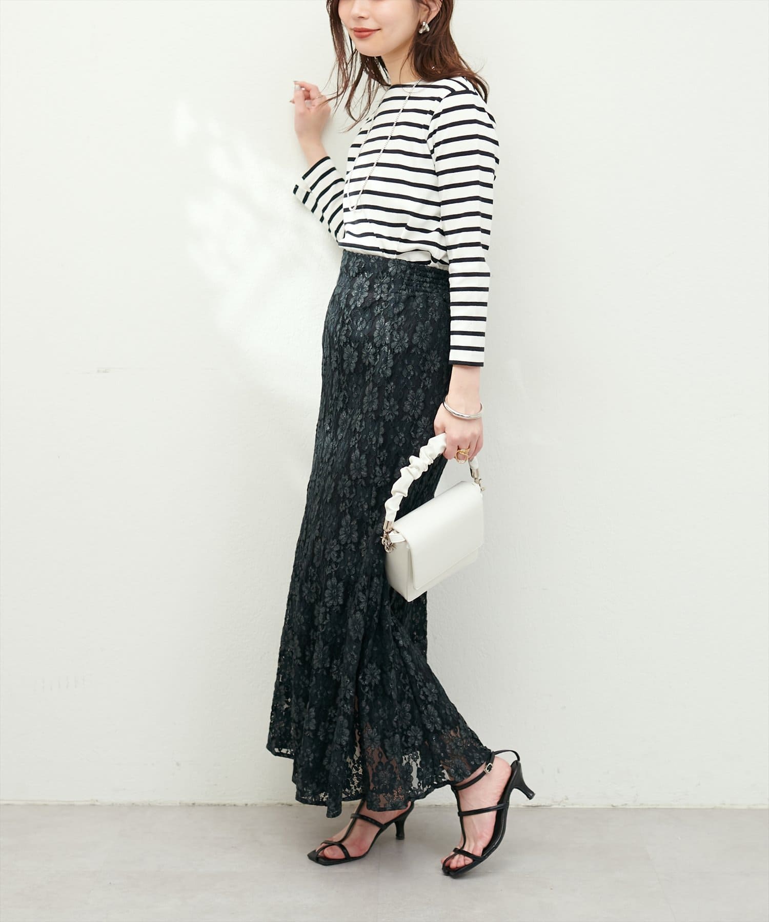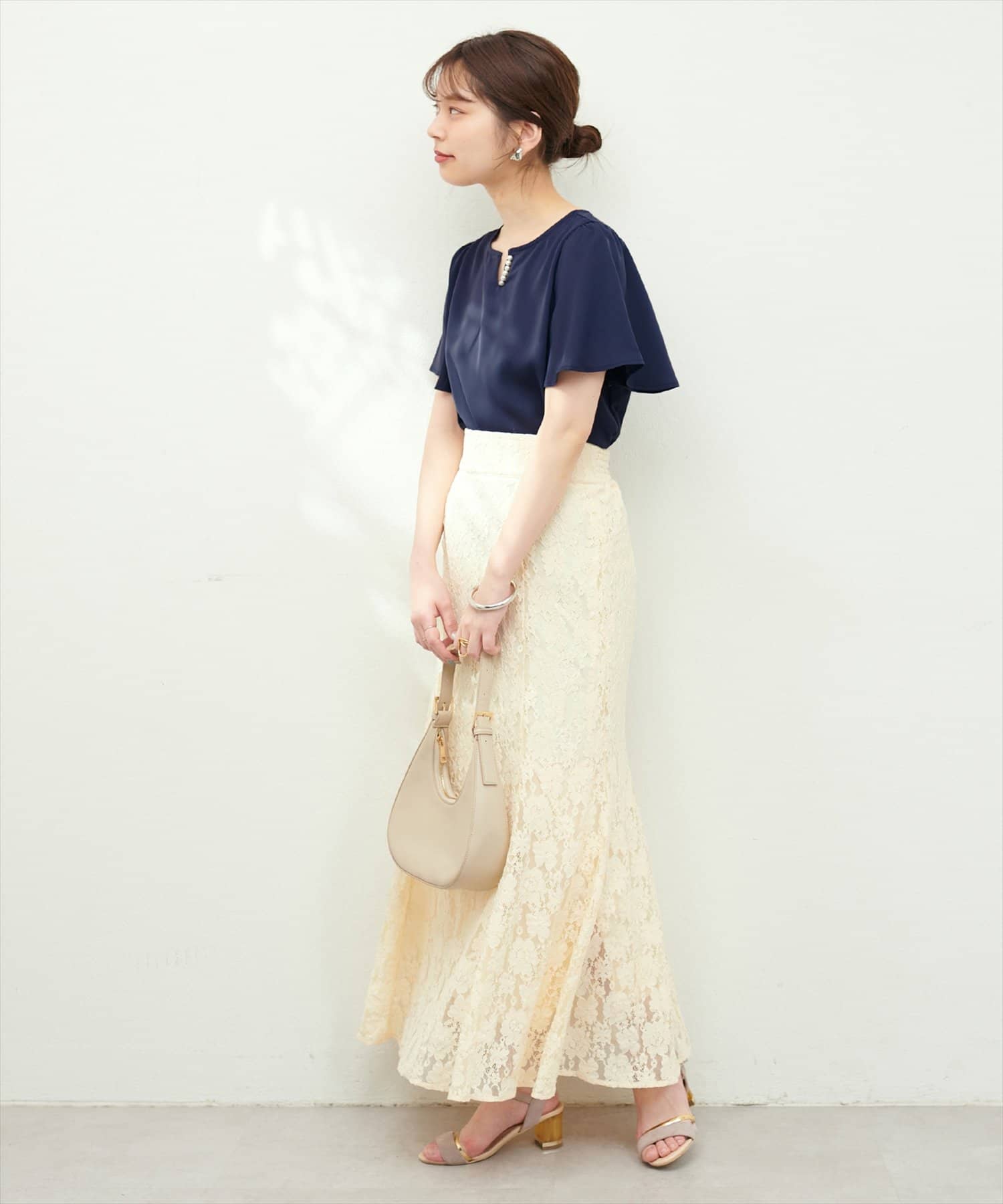 トップスをウエストインして頂くと上品ですっきりとしたスタイリングに仕上がります。