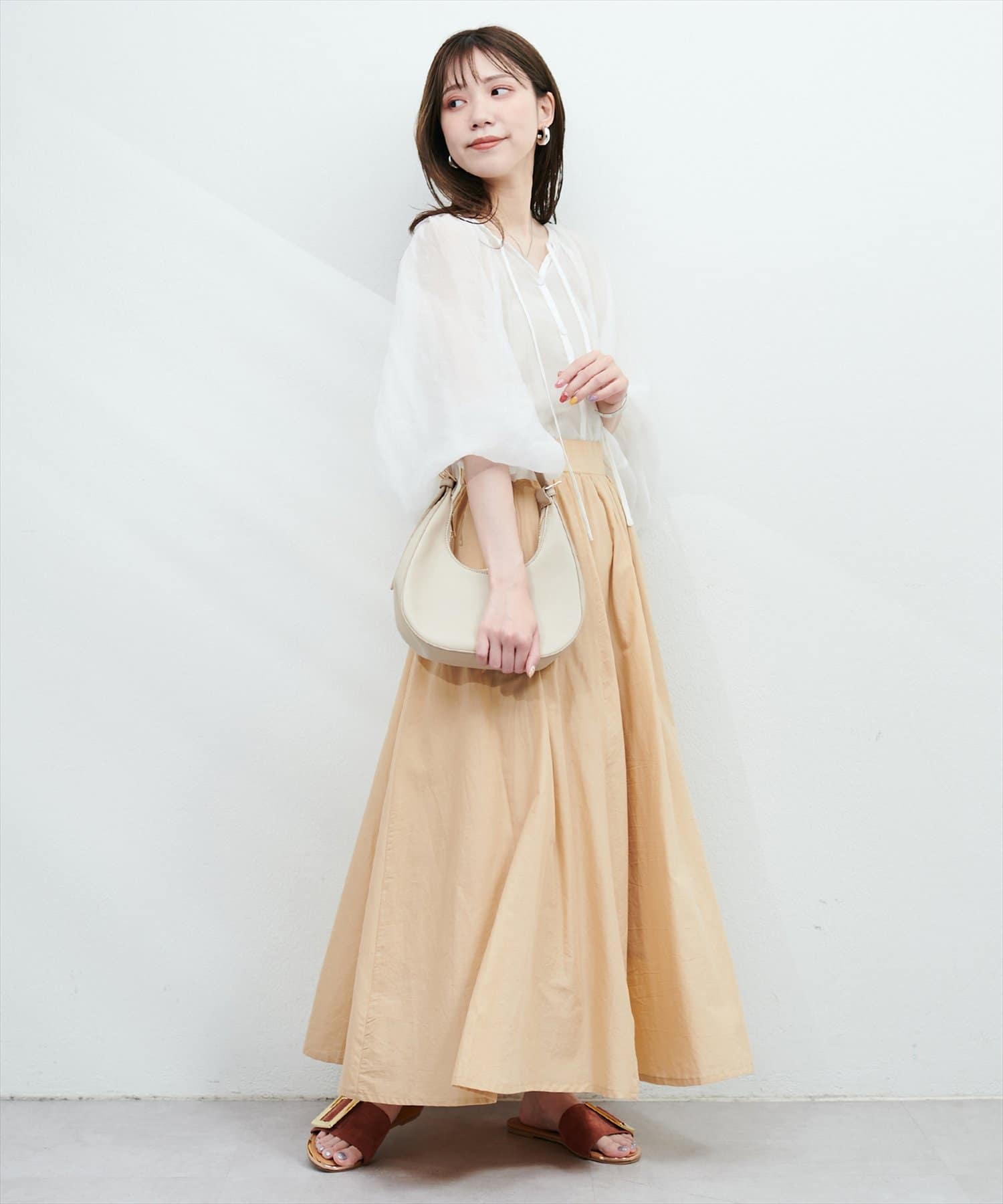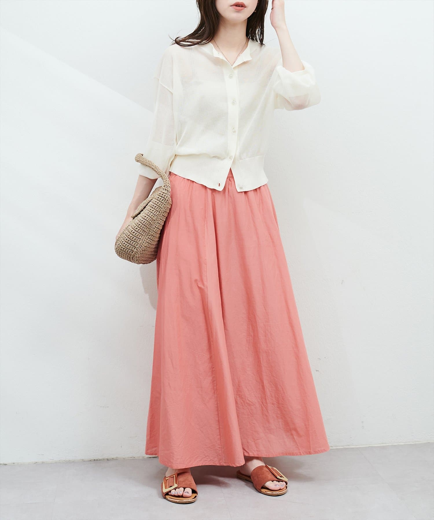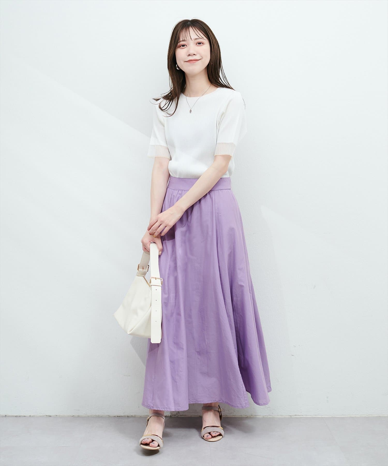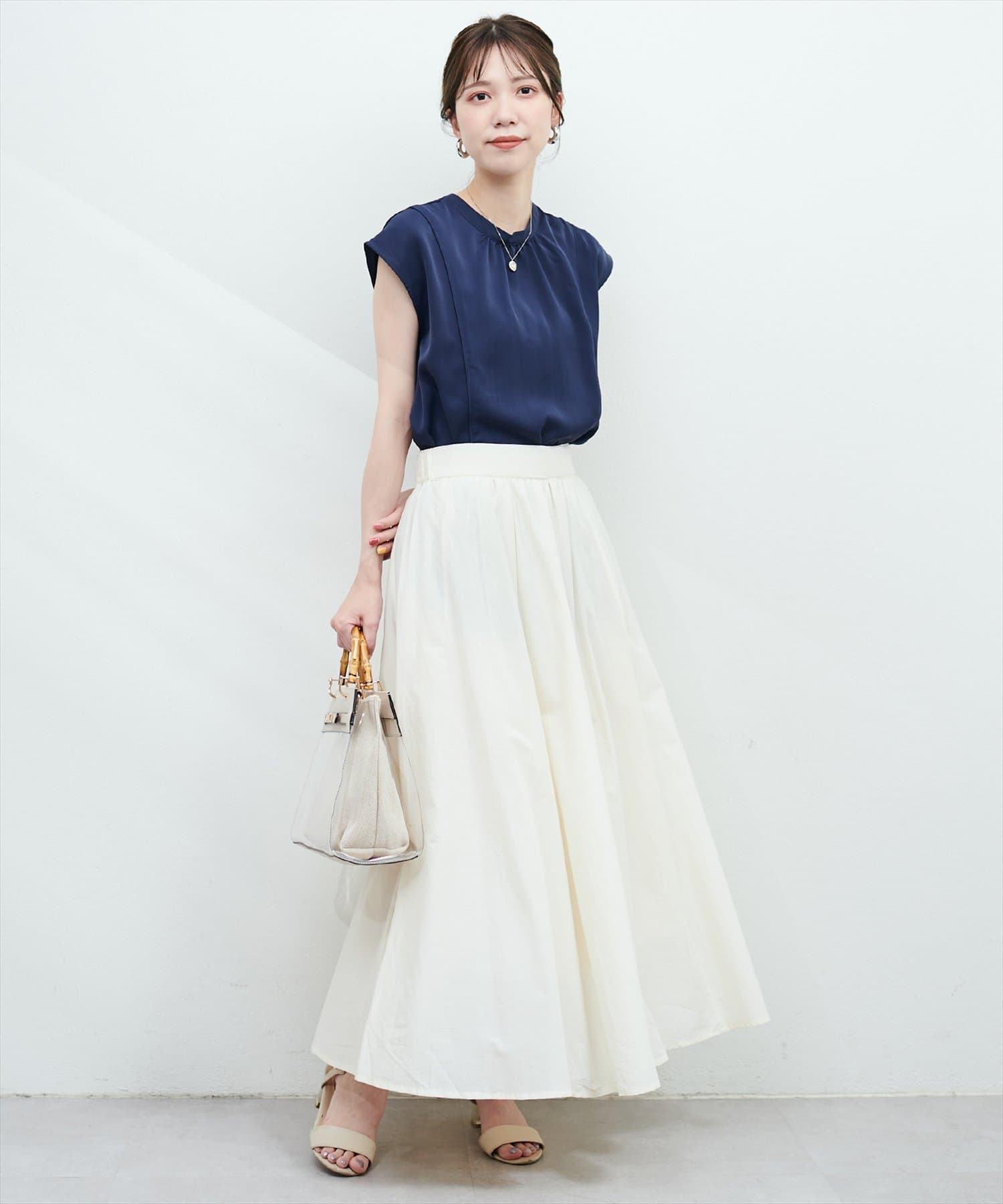 きれいめブラウスと合わせたフェミニンコーデから、Tシャツと合わせたカジュアルミックスコーデまで、幅広く着回しが効くアイテムです。