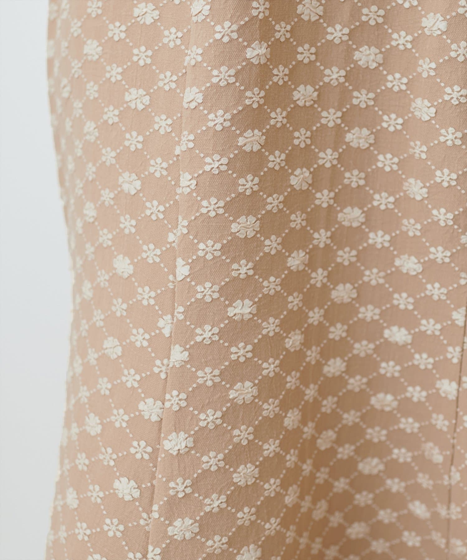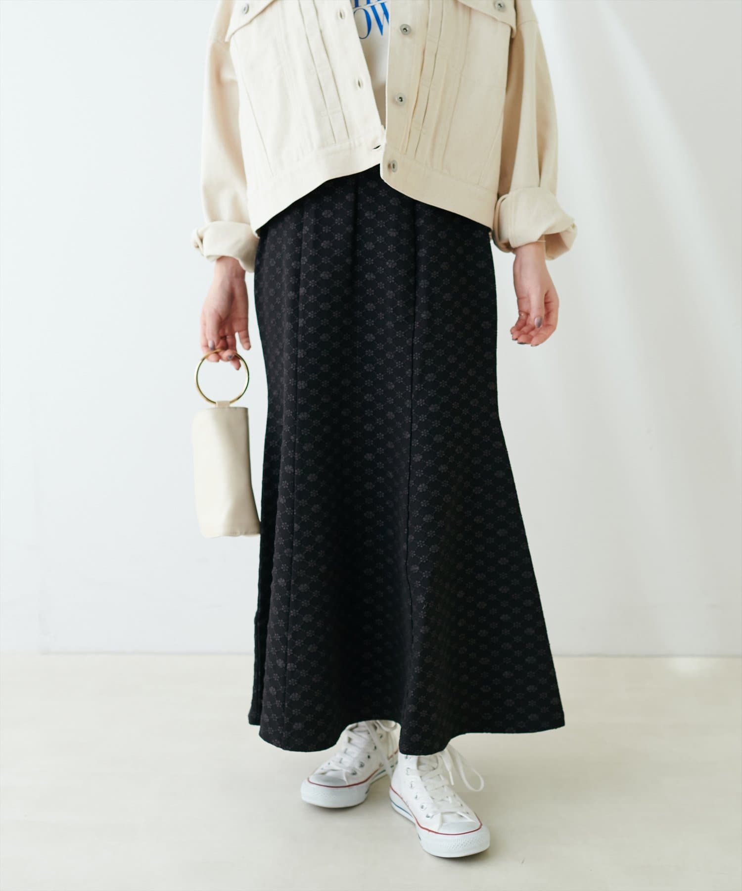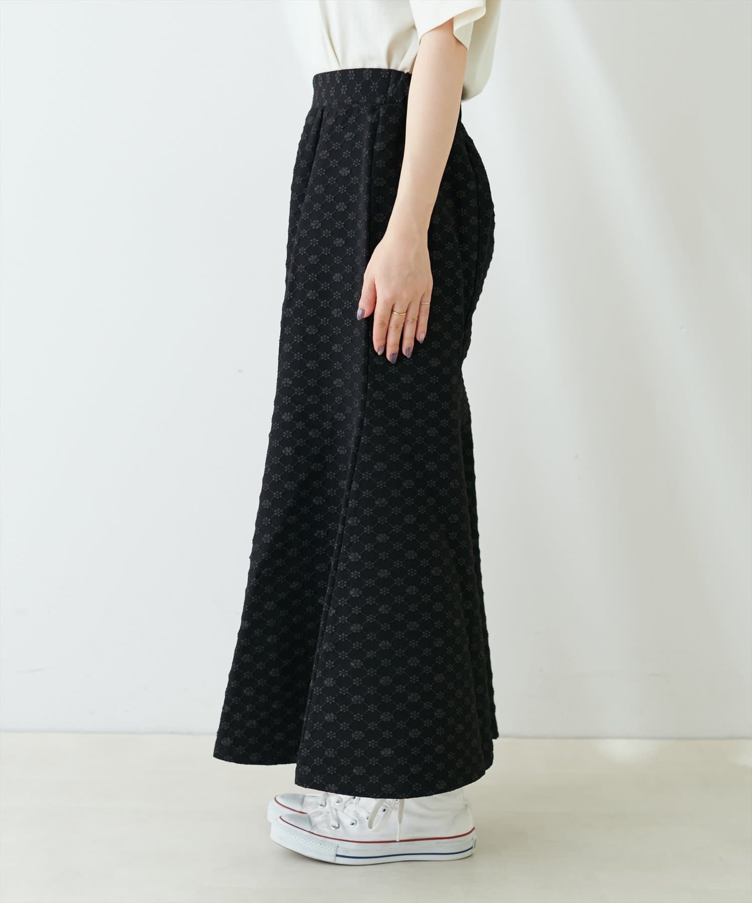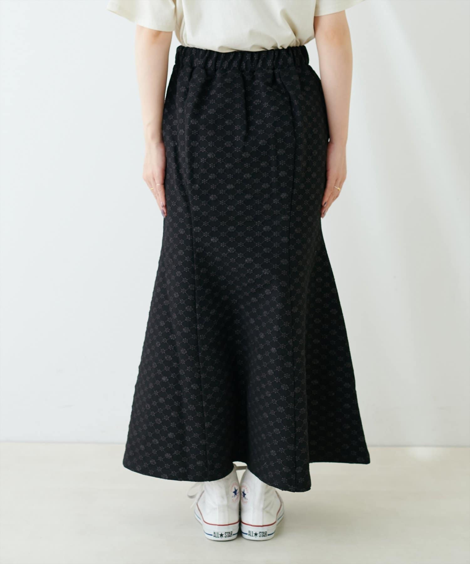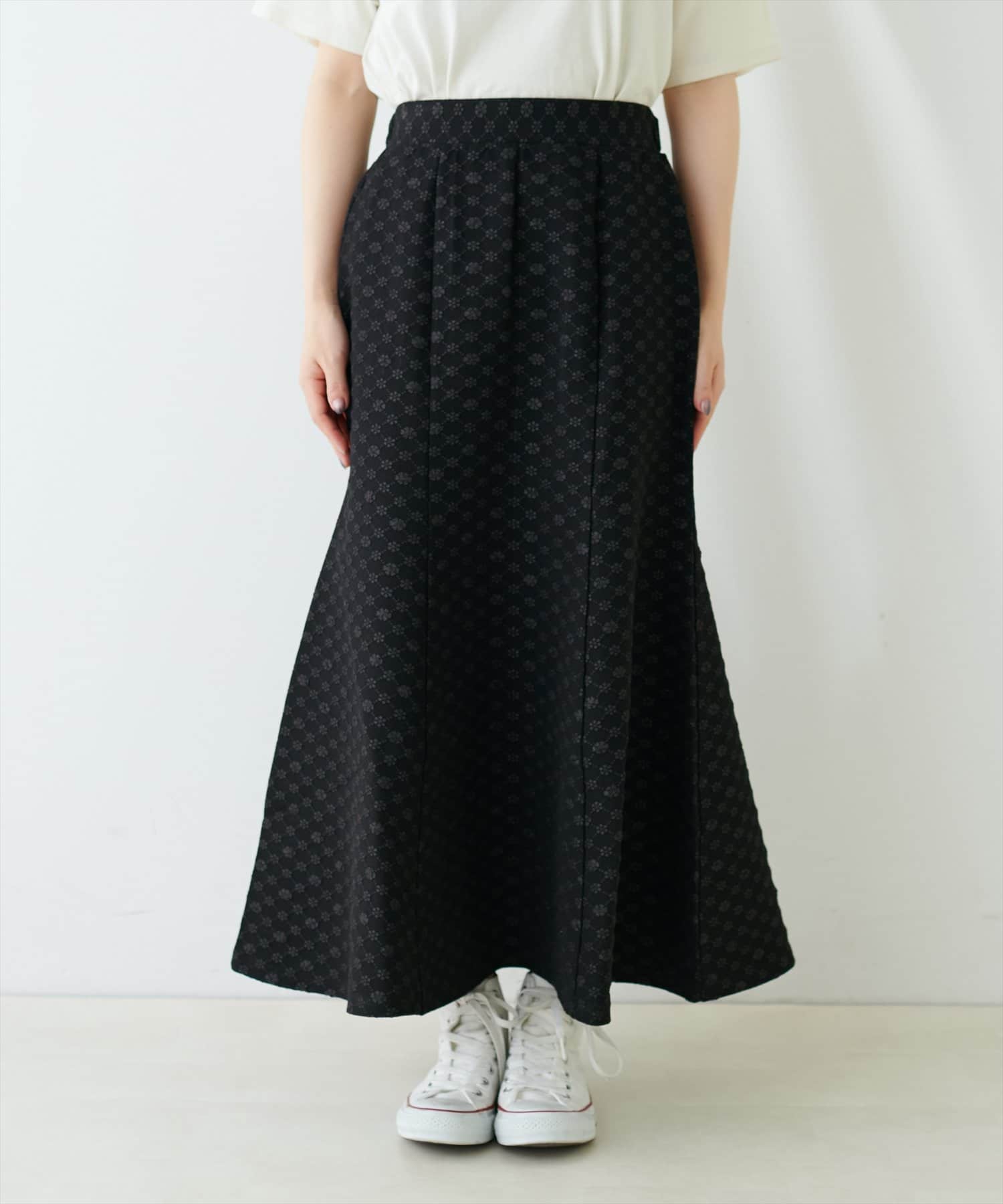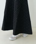 ブラックは、スカート生地とは異なるブラックの花柄で、さりげないぽこぽこ感が大人の印象になります。