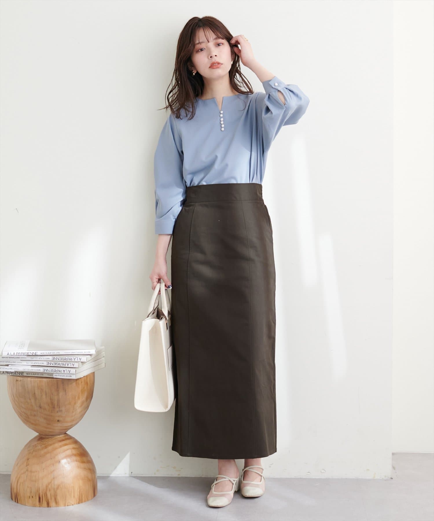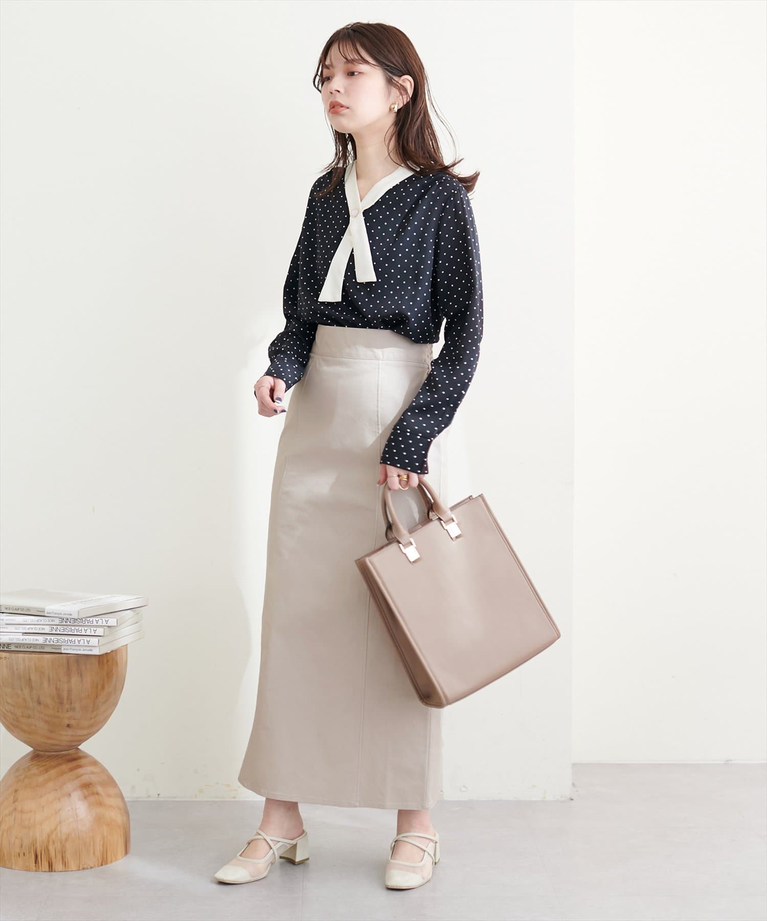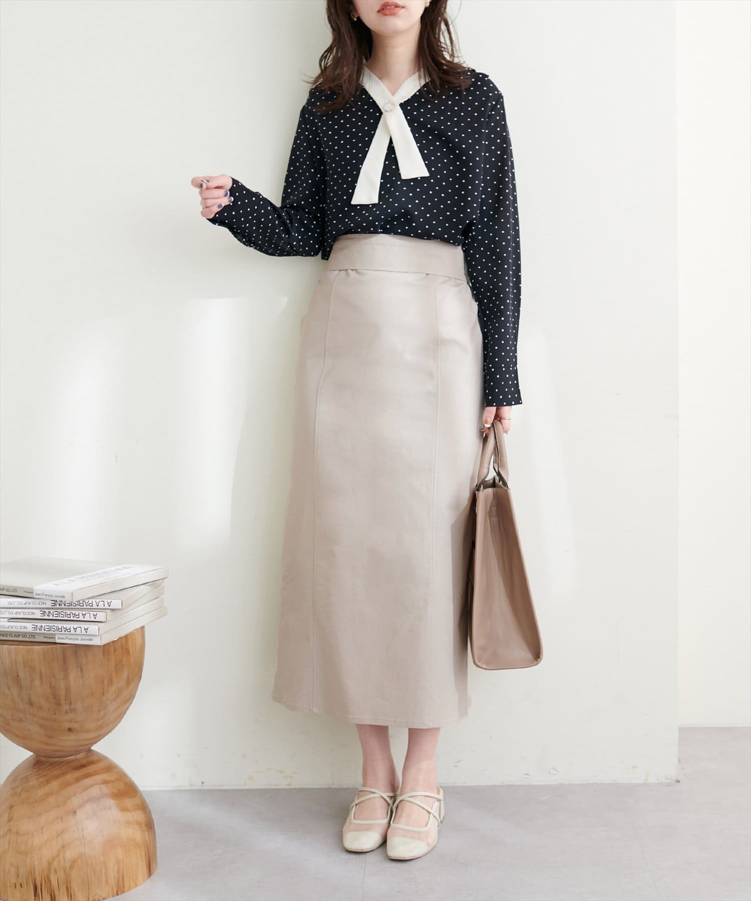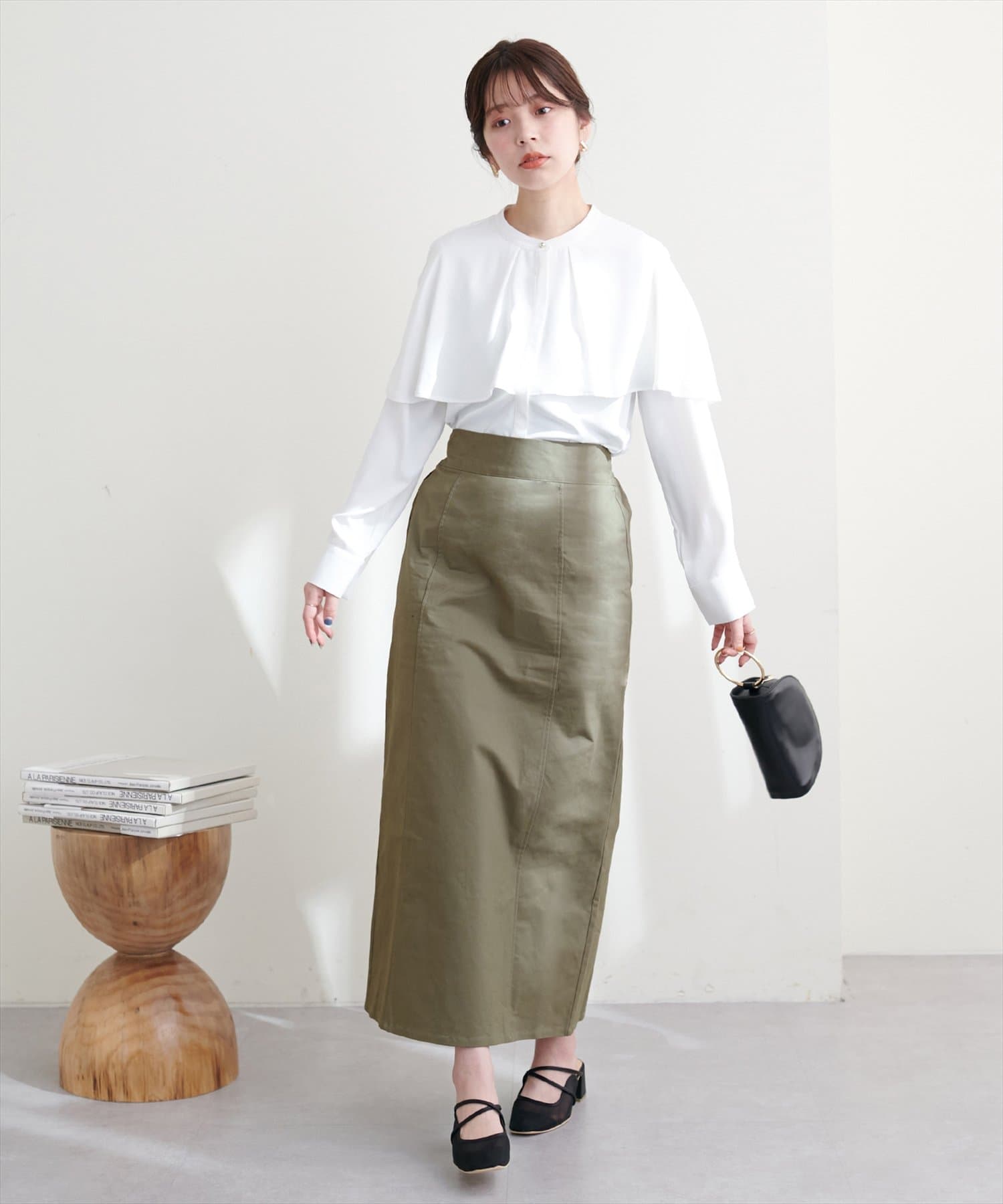 トップスをウエストインして頂くと上品ですっきりとしたスタイリングに仕上がります。
