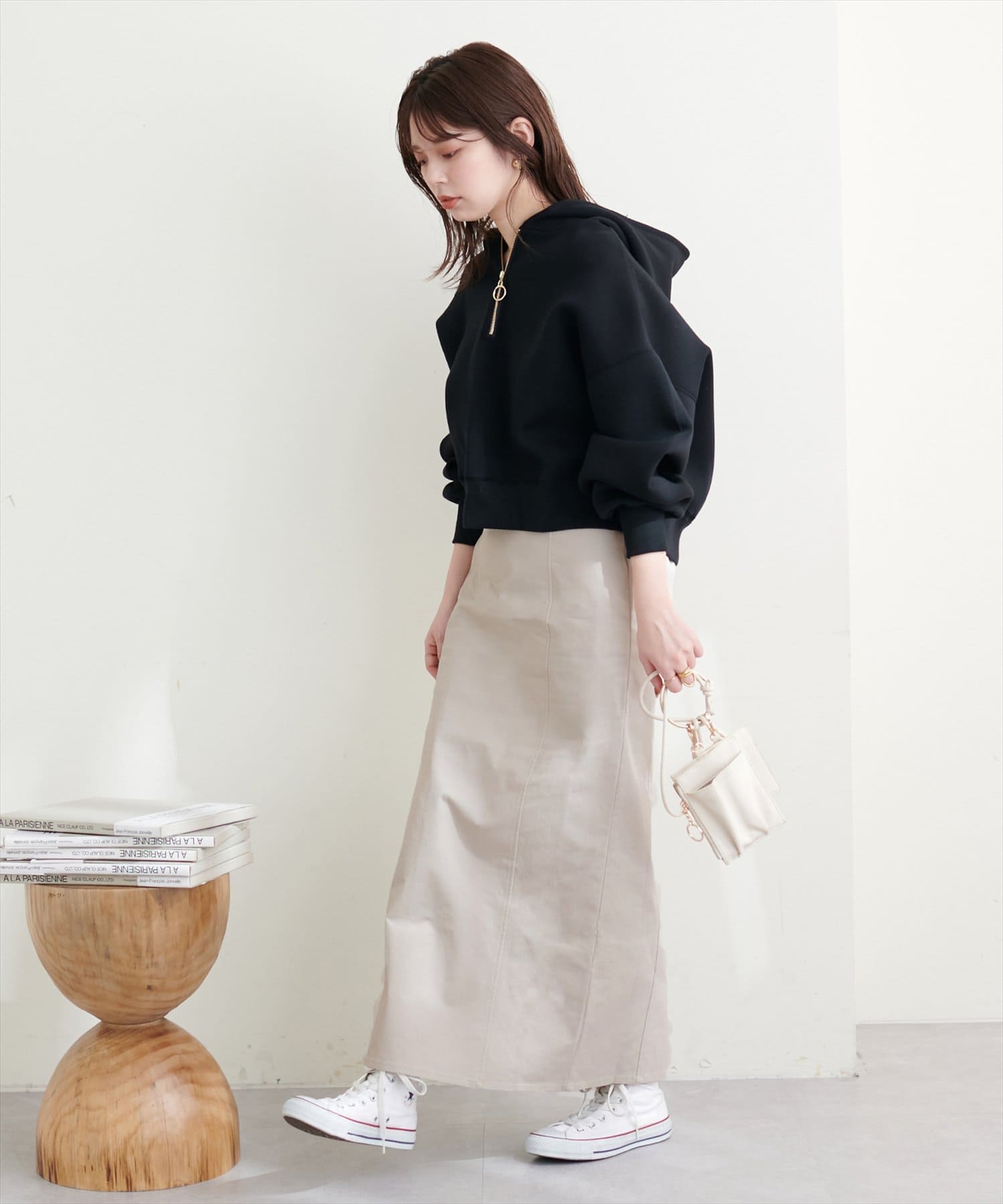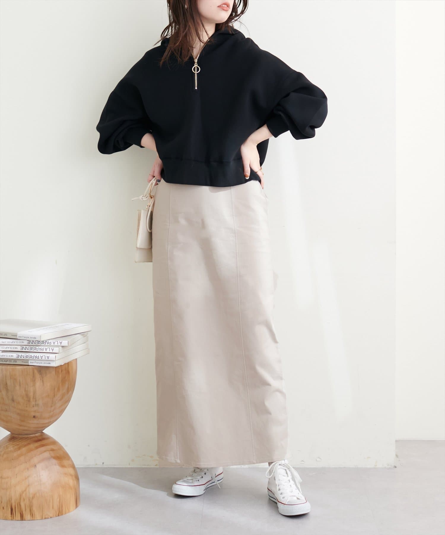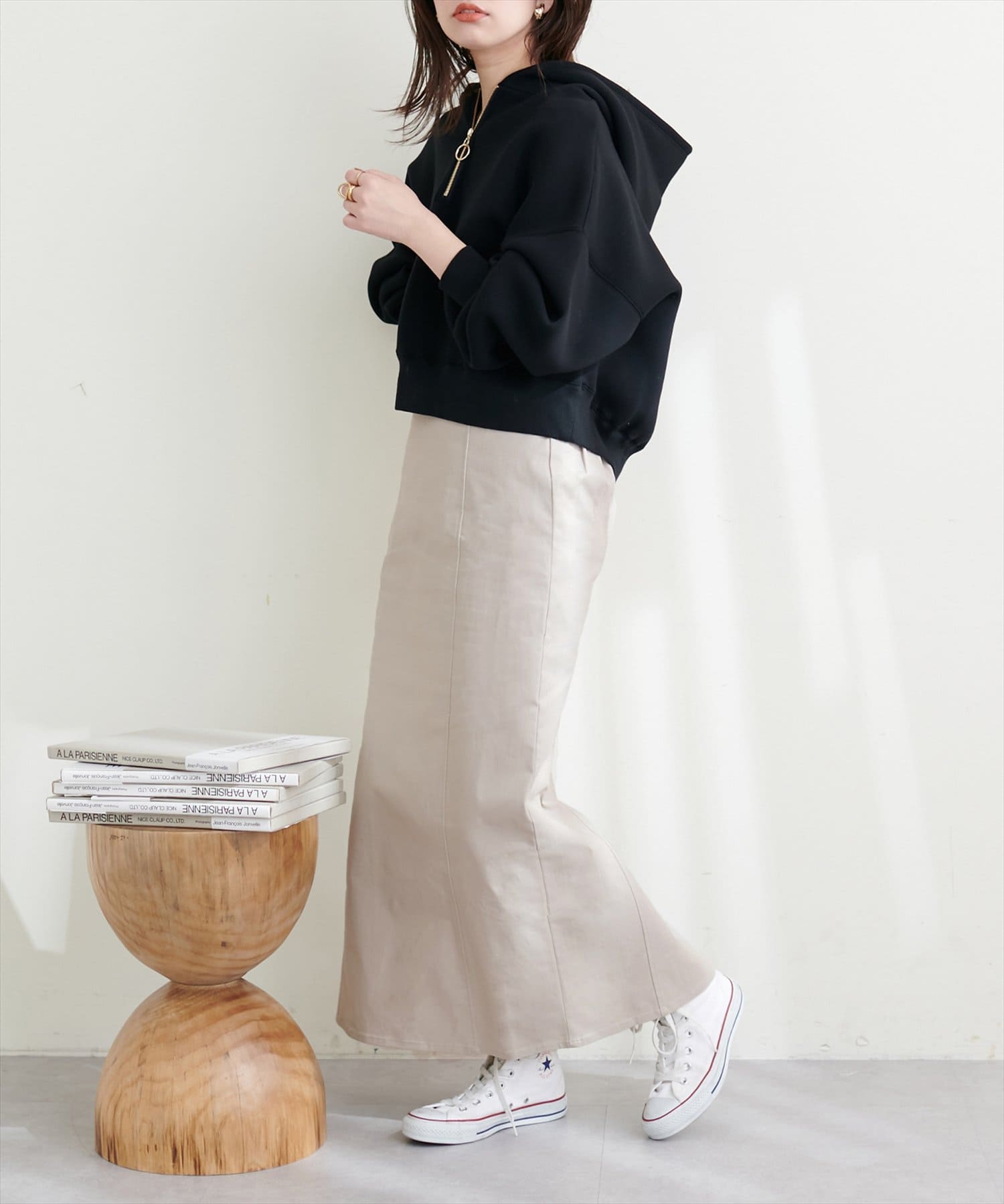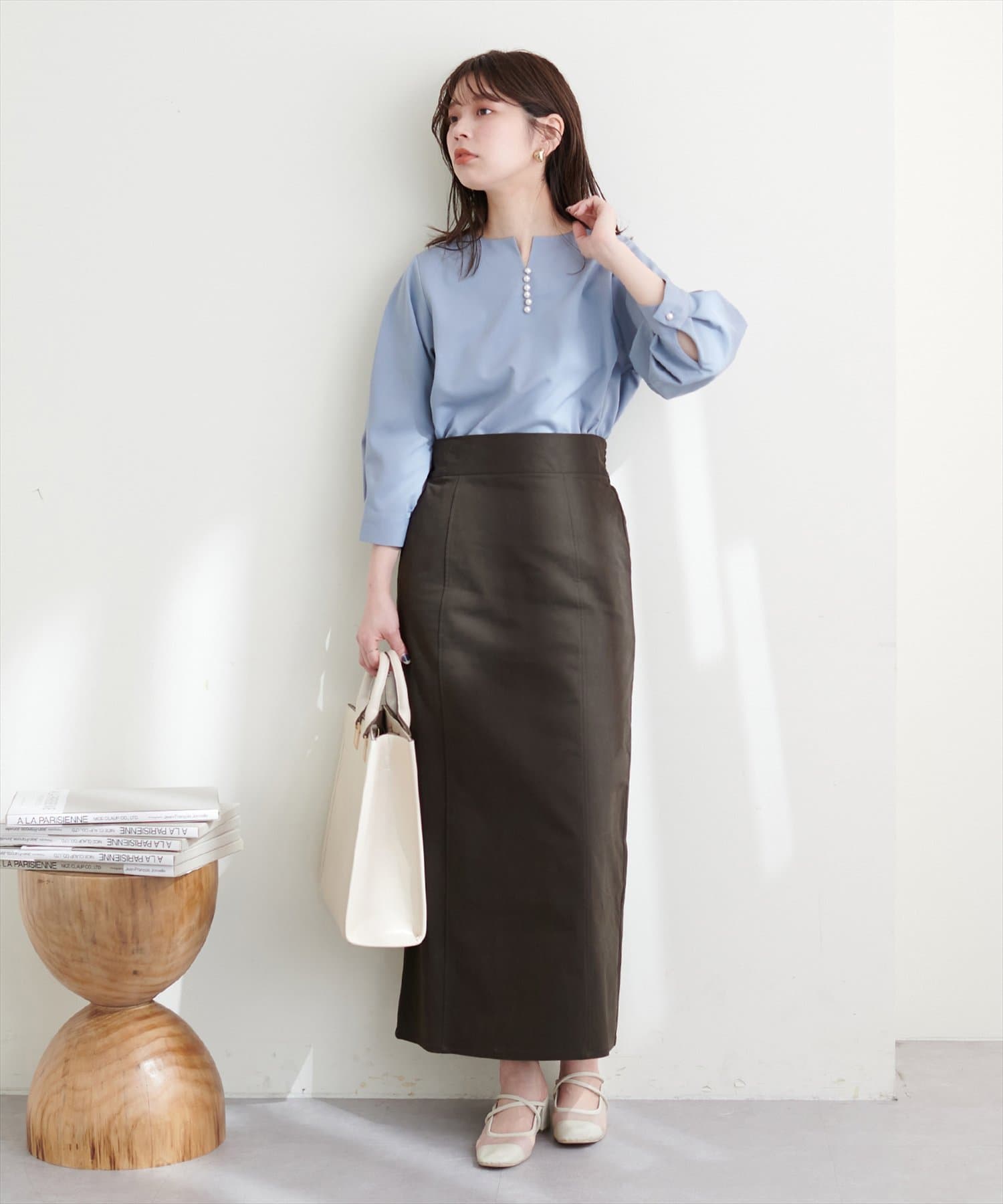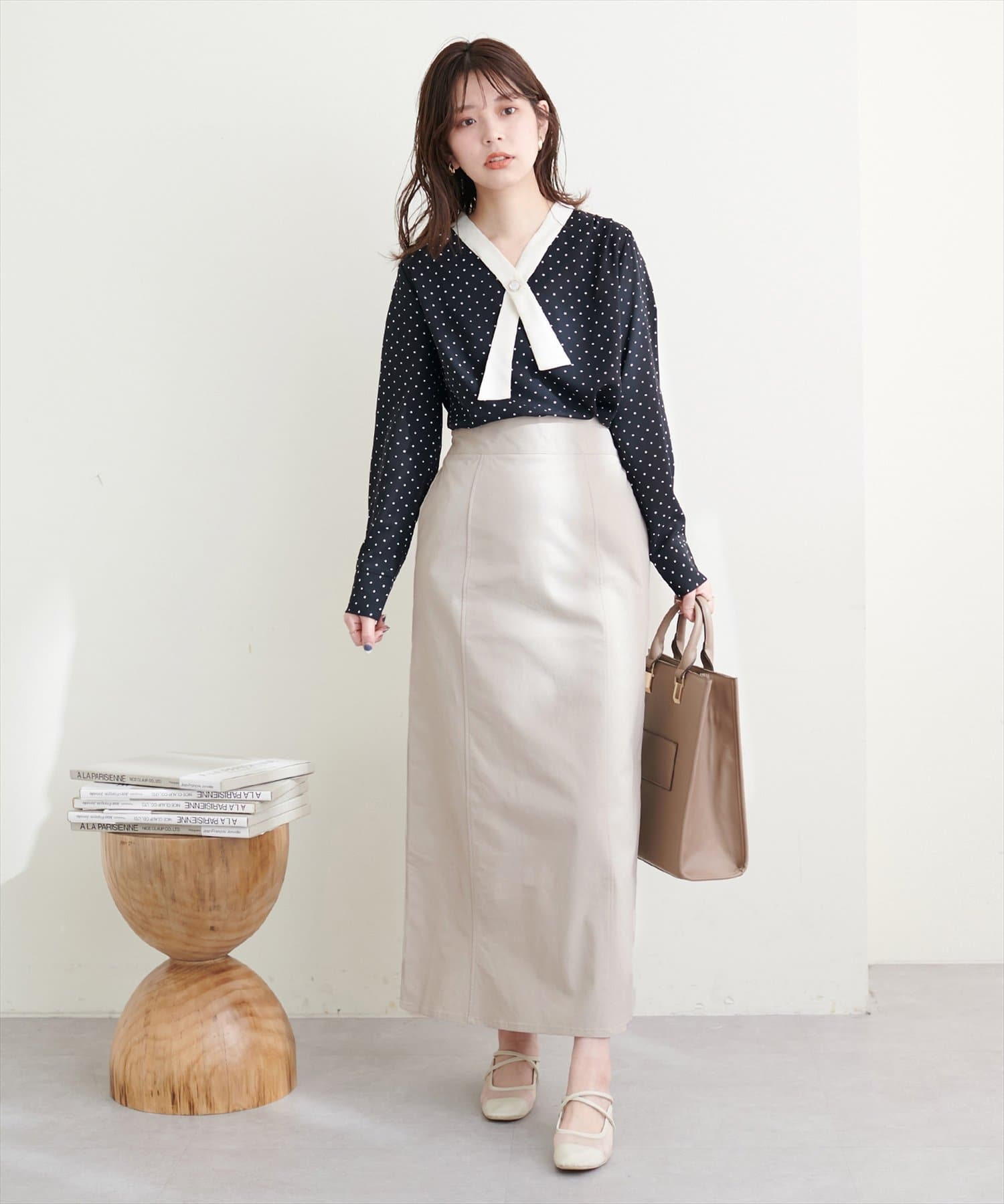 トップスをウエストインして頂くと上品ですっきりとしたスタイリングに仕上がります。
