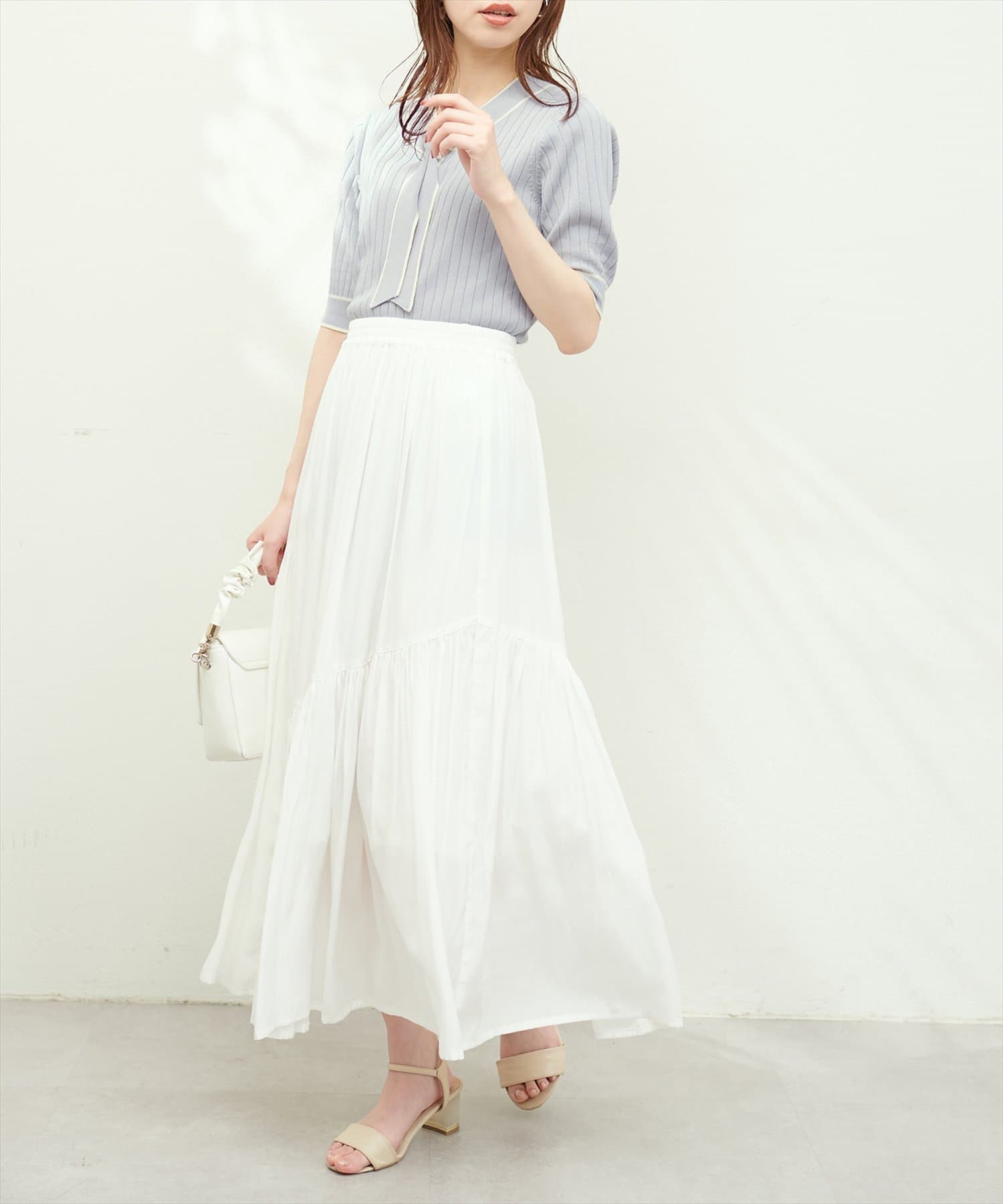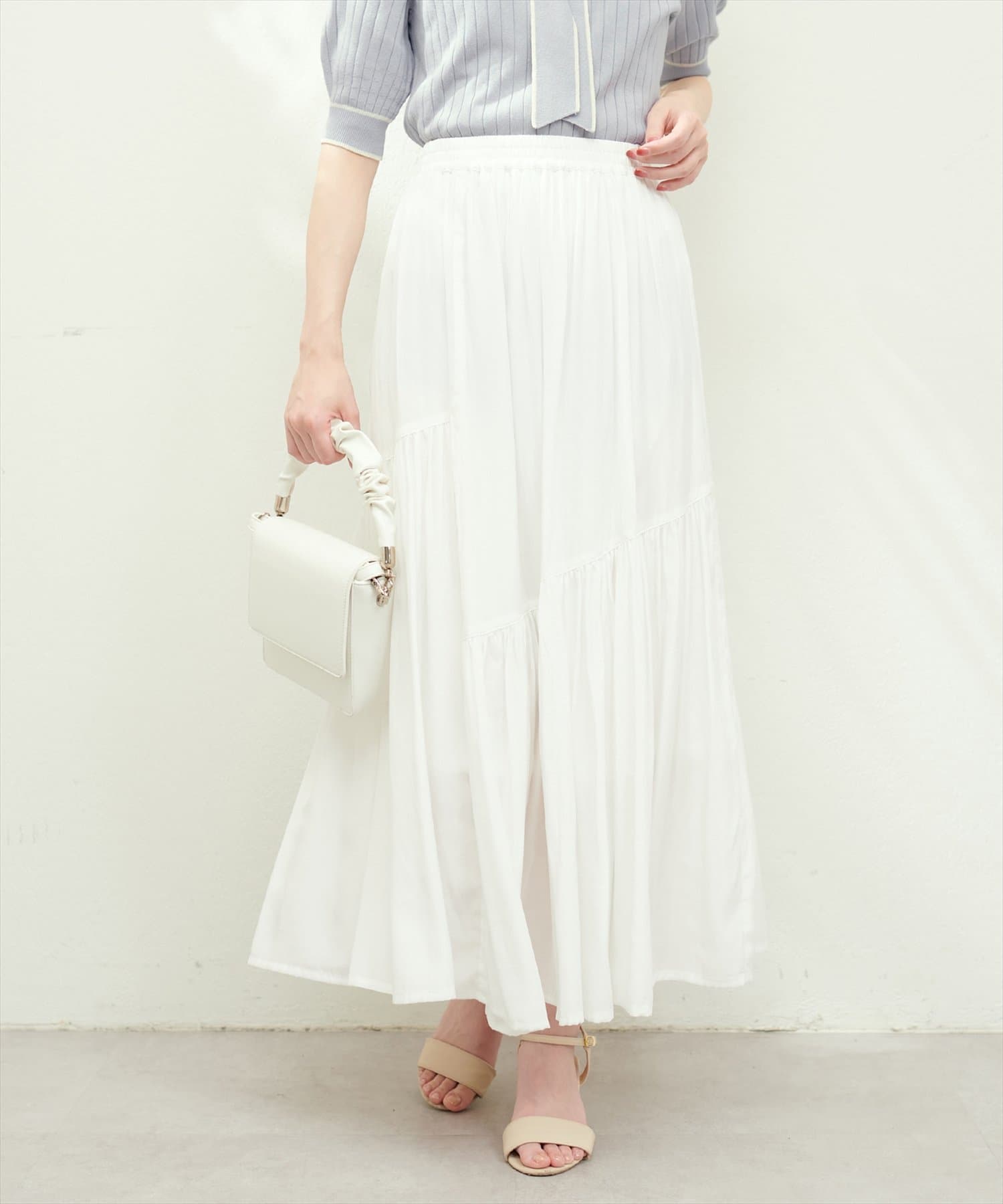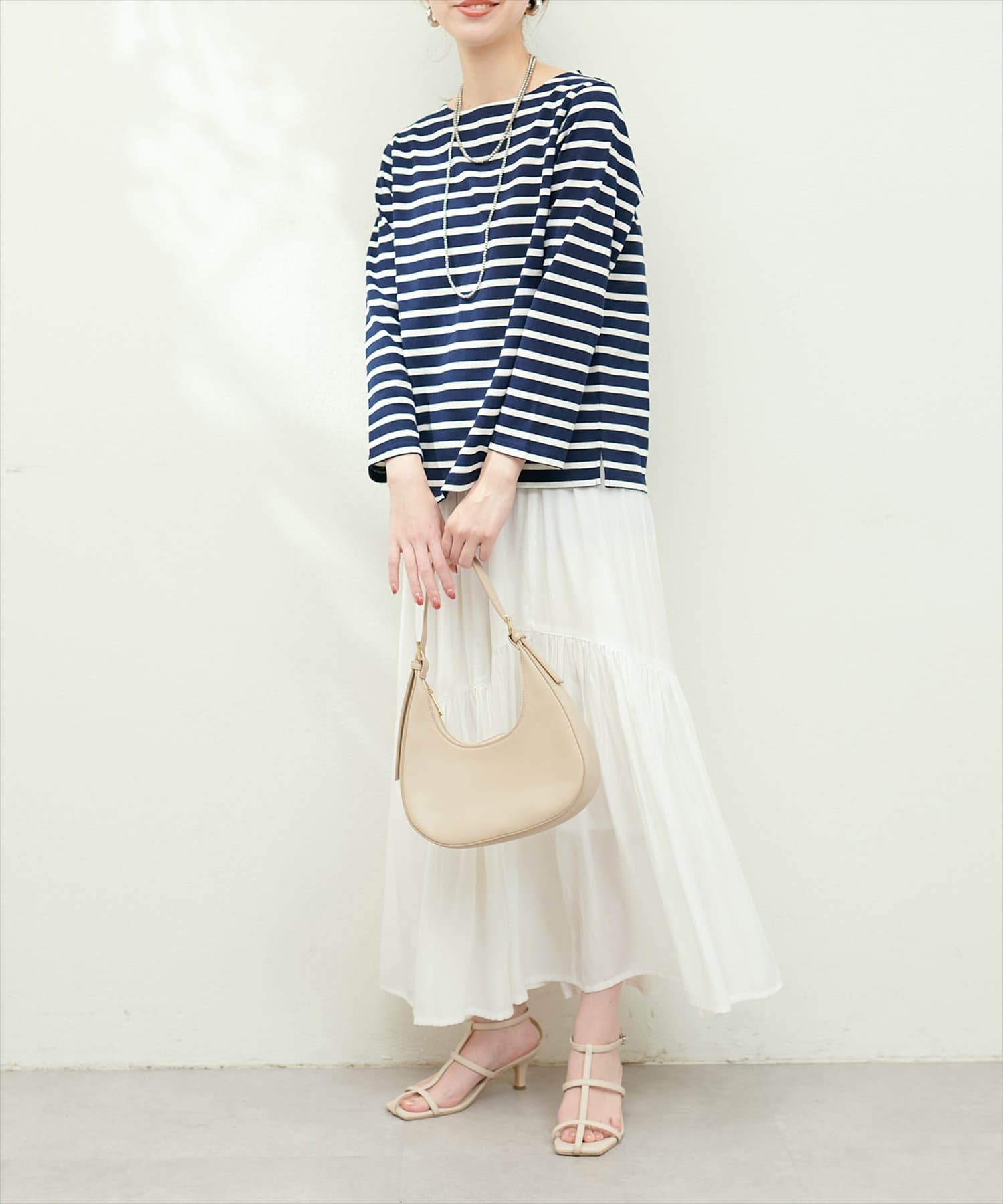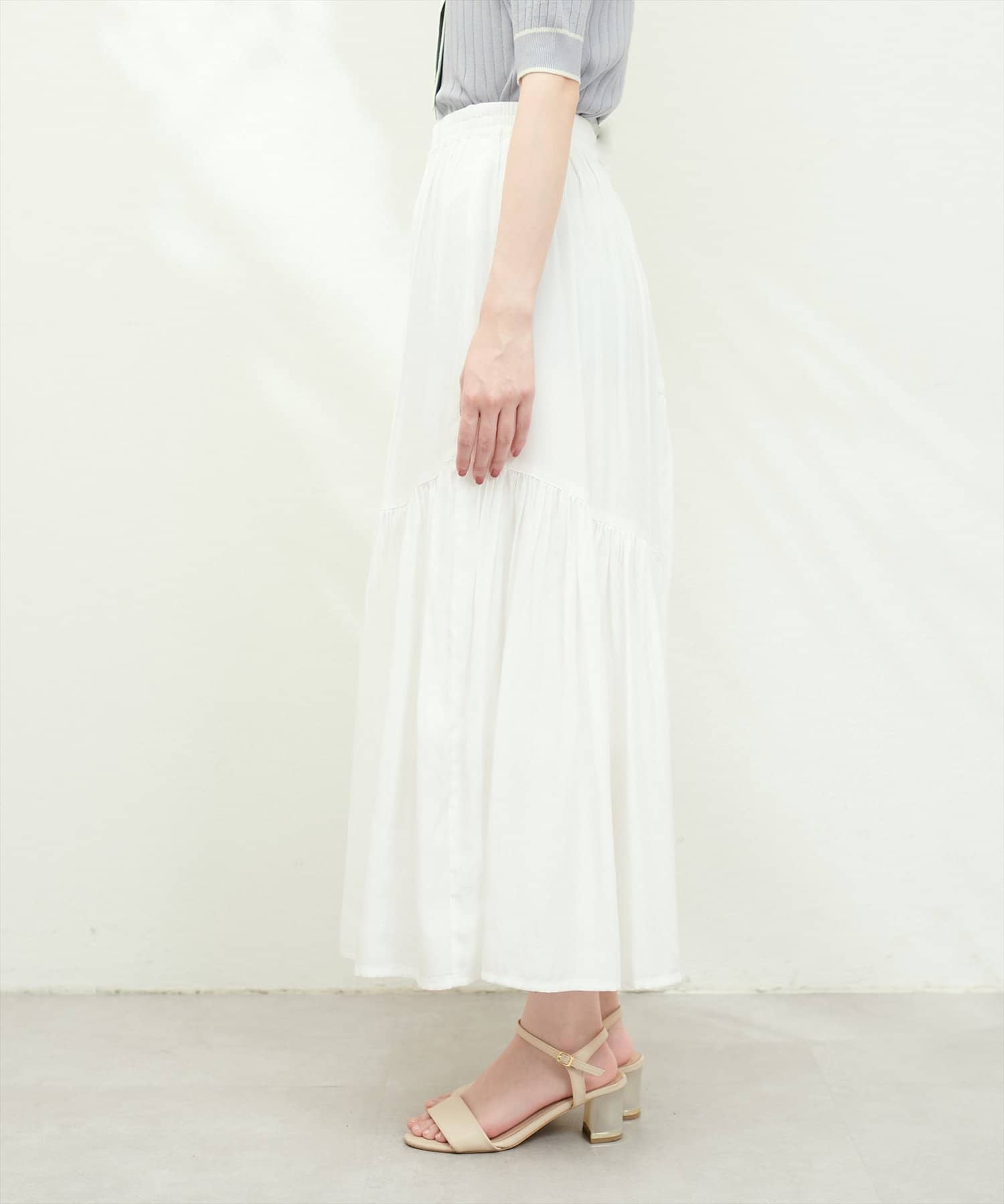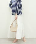 合わせるトップス次第でフェミニンにもクールにもきまる1枚。