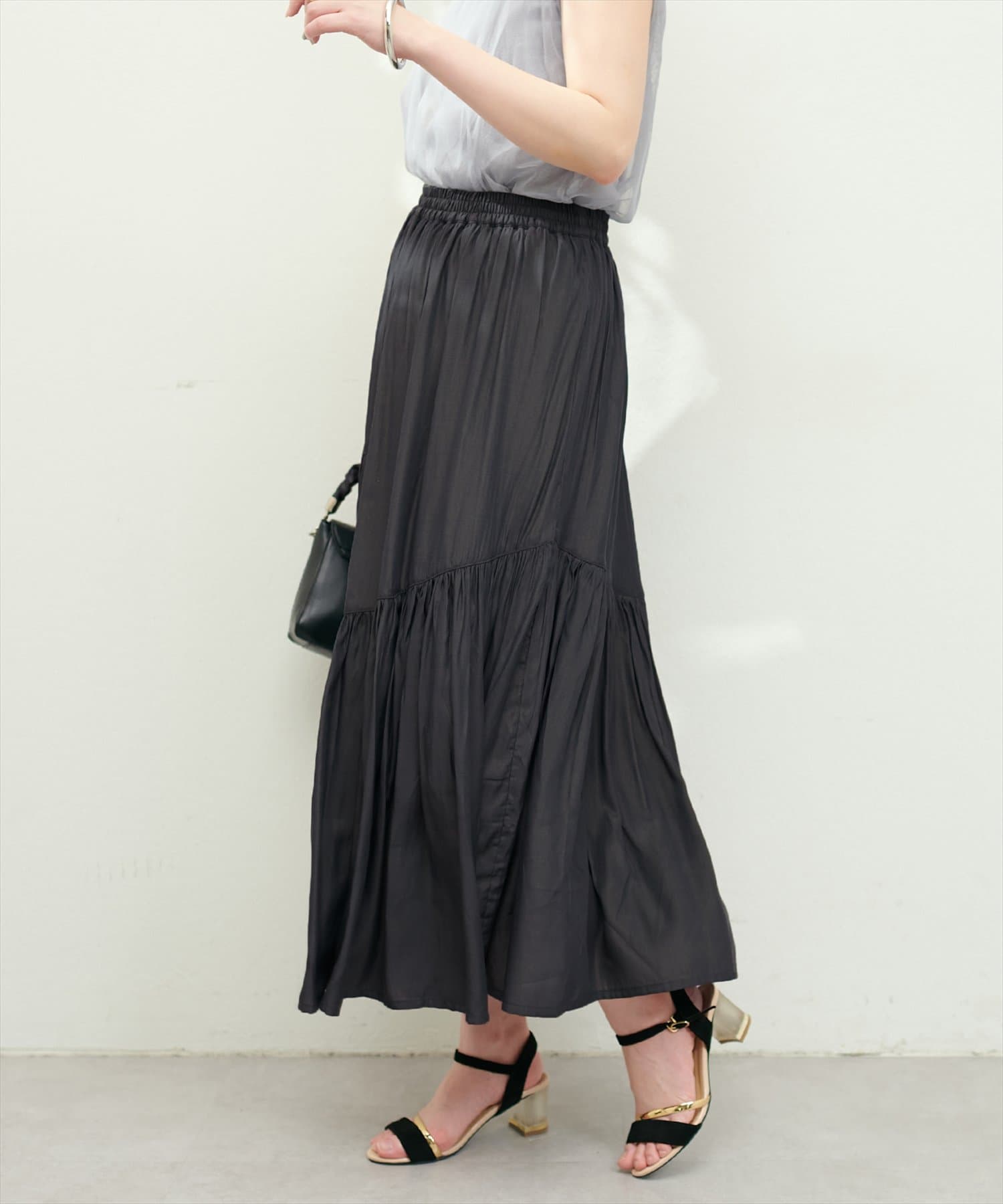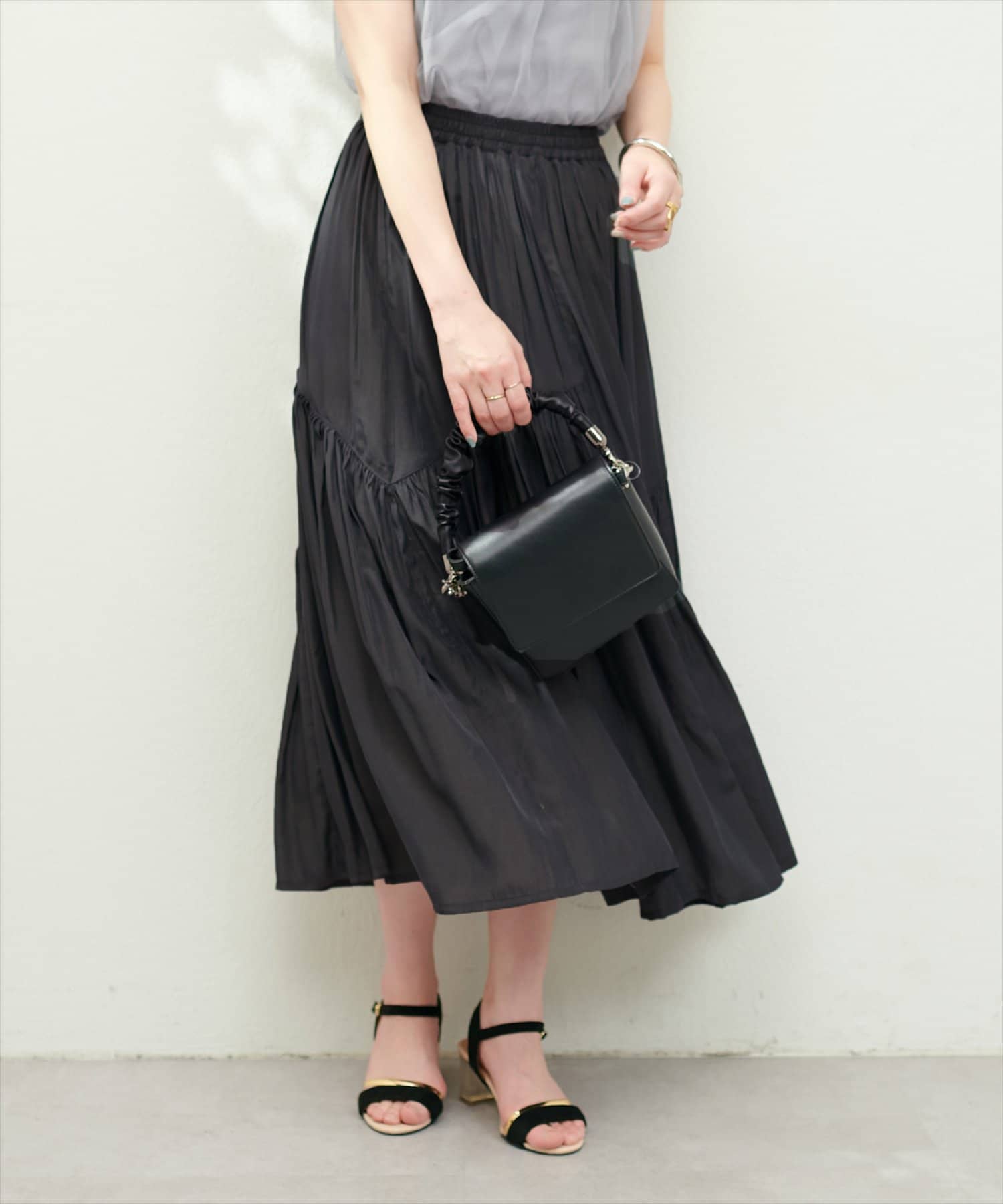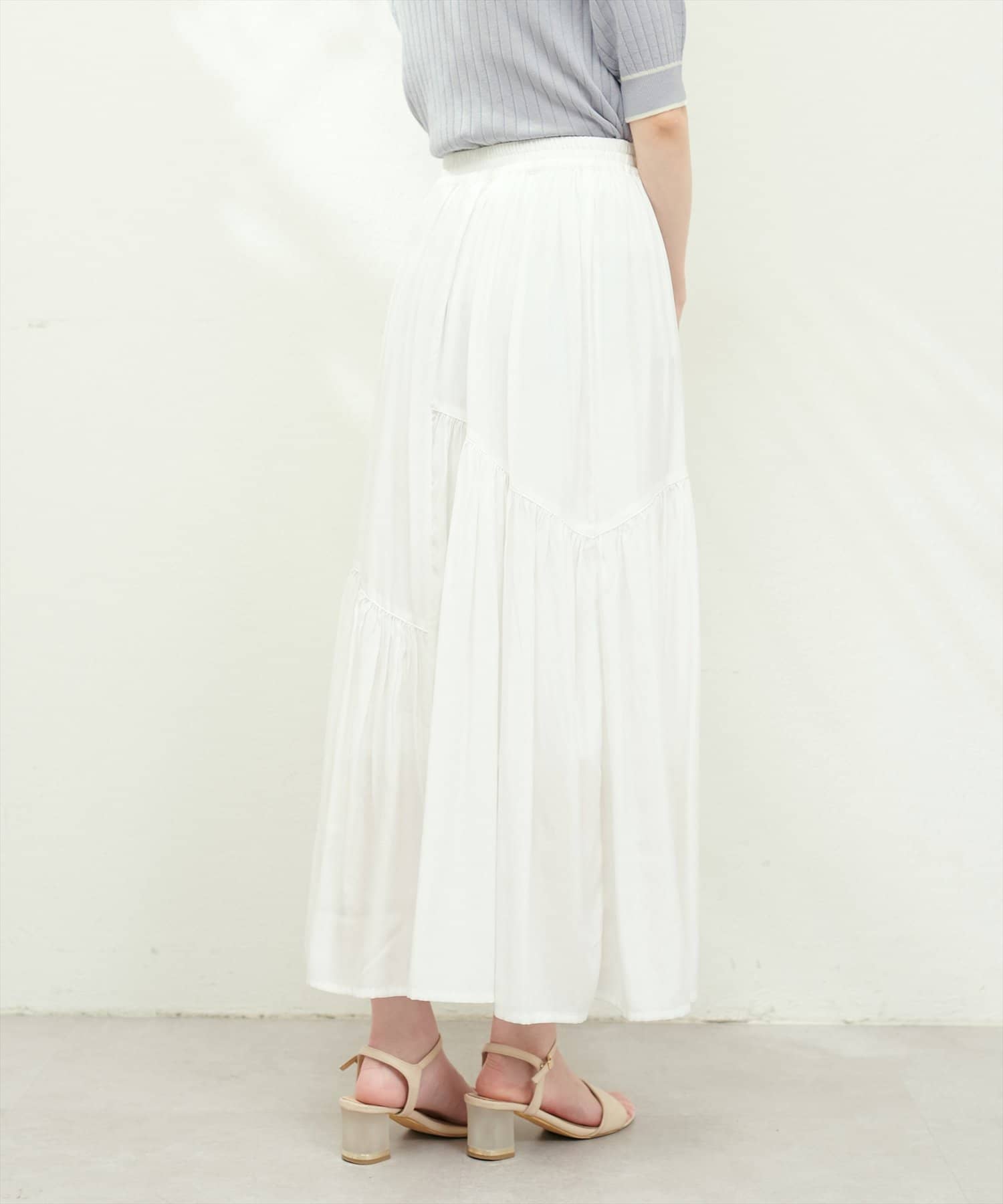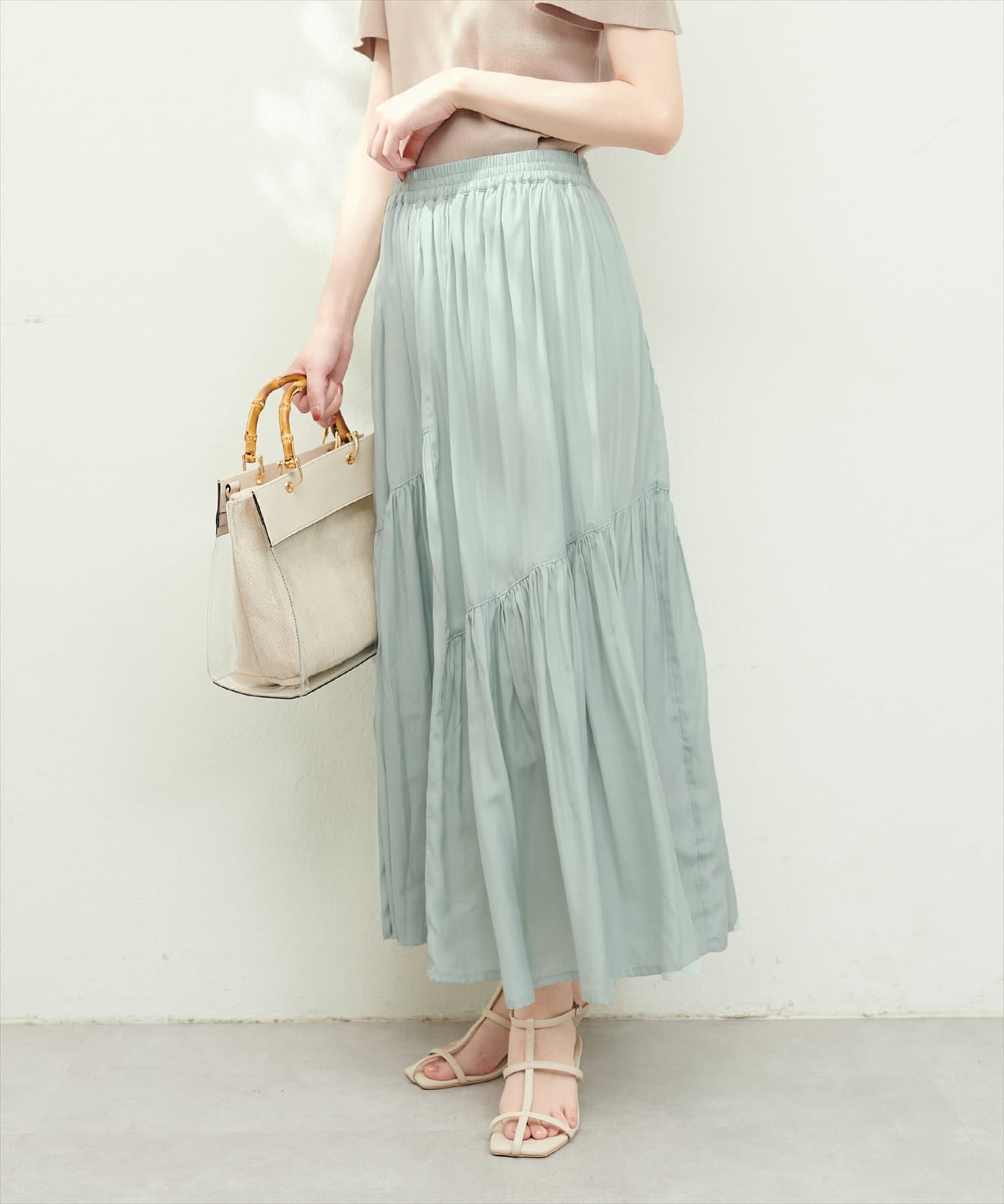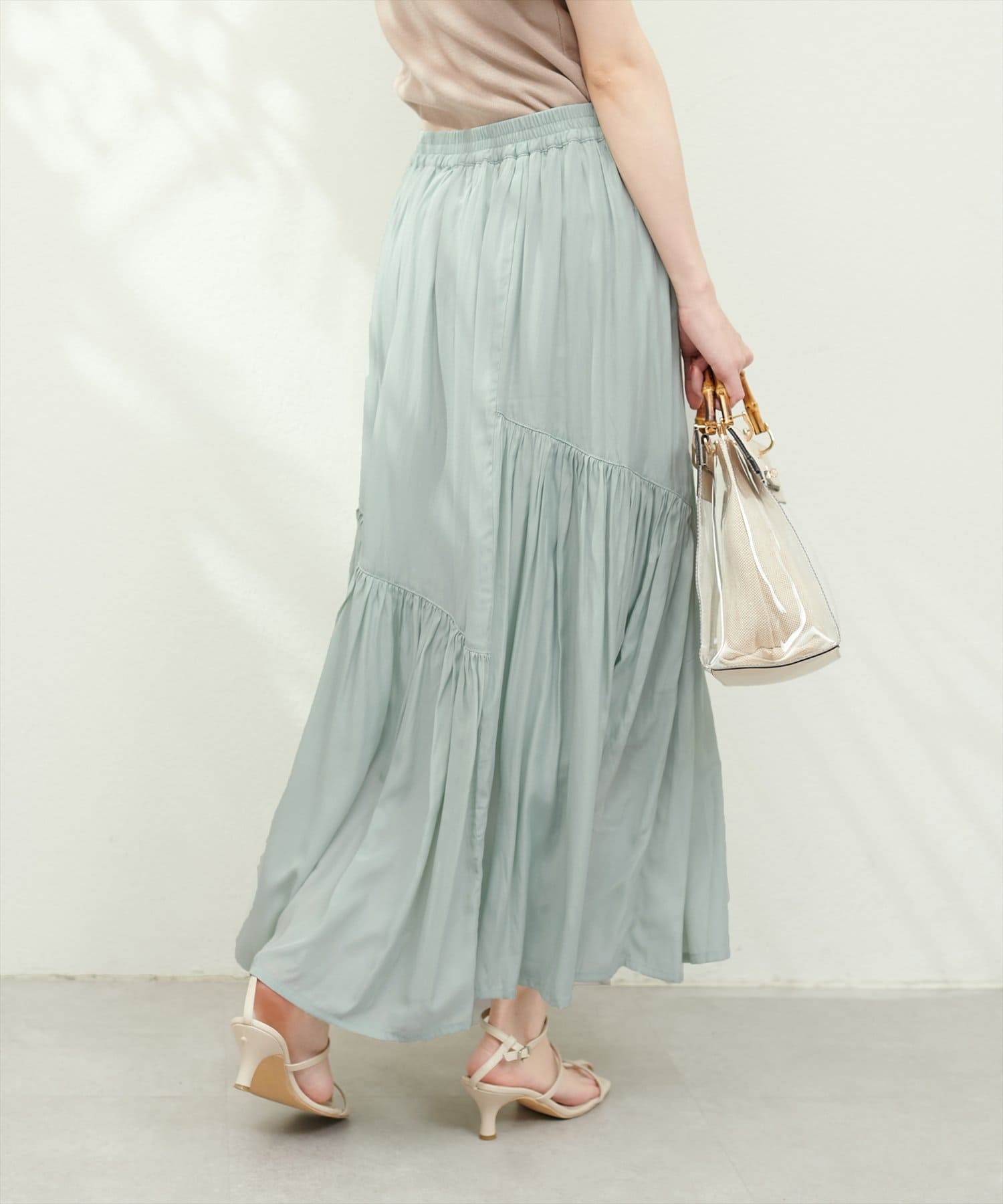 滑らかで柔らかい生地と艶やかな表面感のスカート。